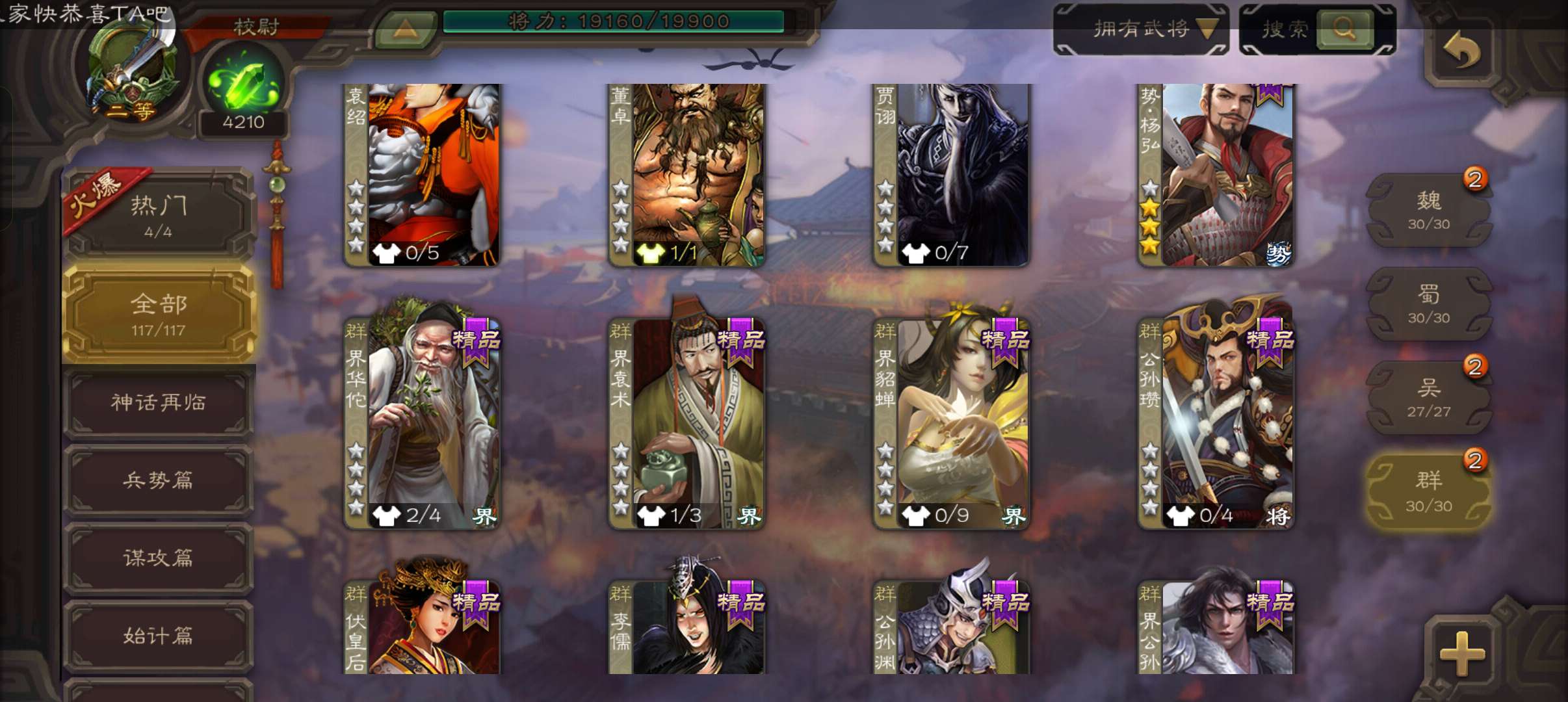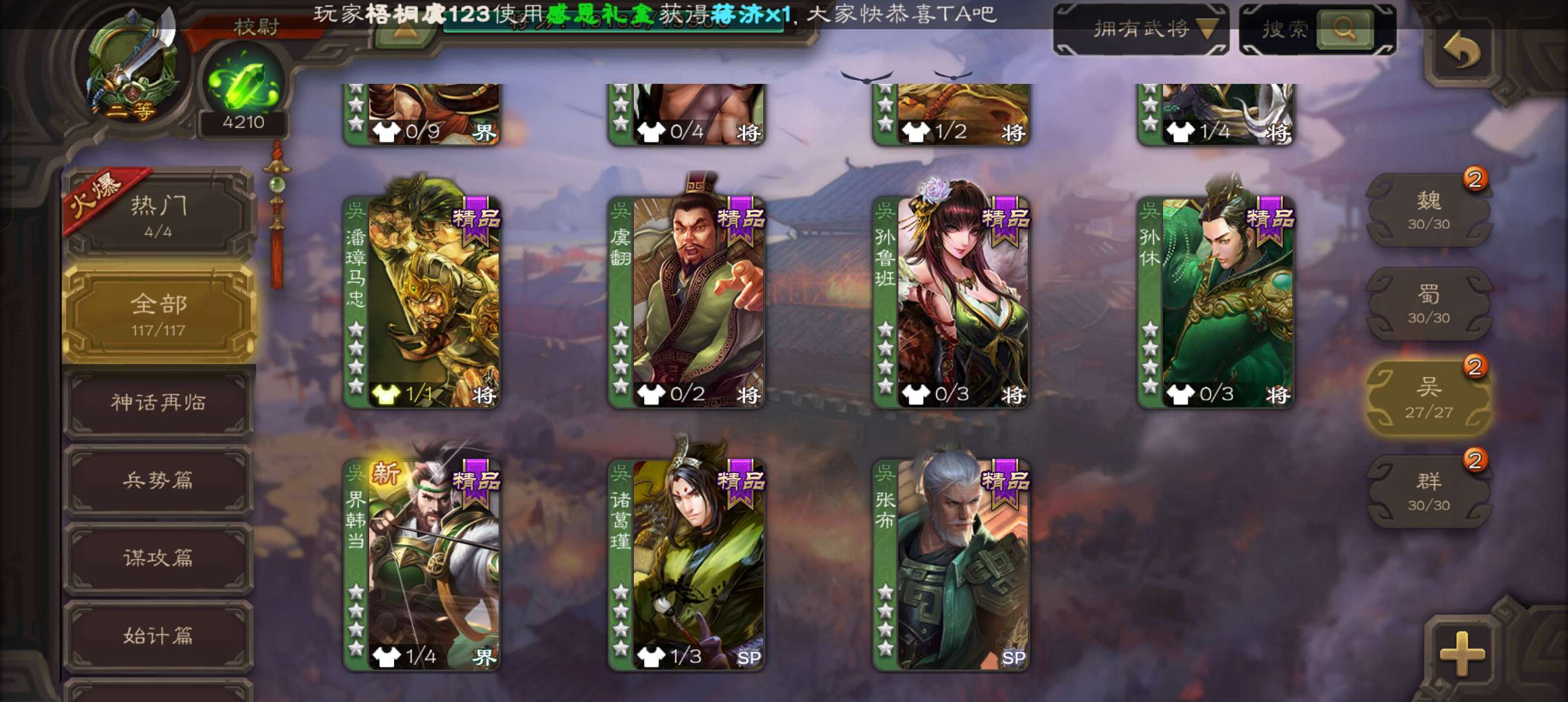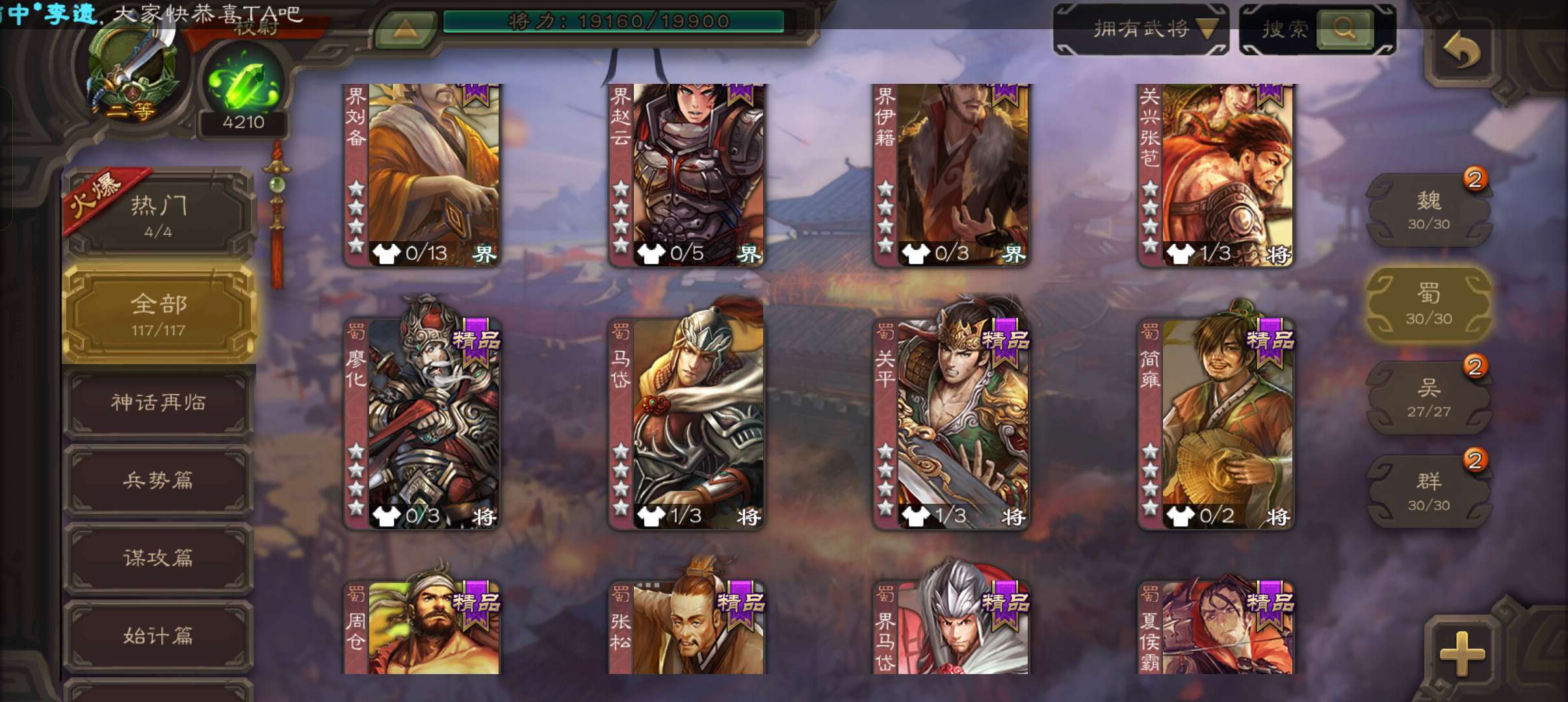 4200魂5万羽毛5万豆,双天工势杨弘孟达,界钟会谯周双史诗一等校尉,动态界大乔关银屏117将