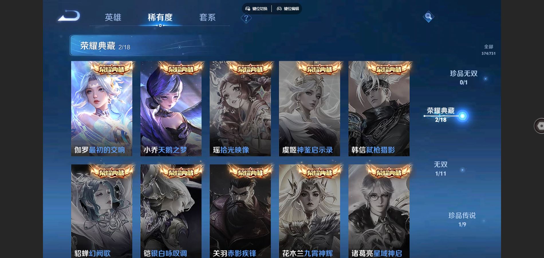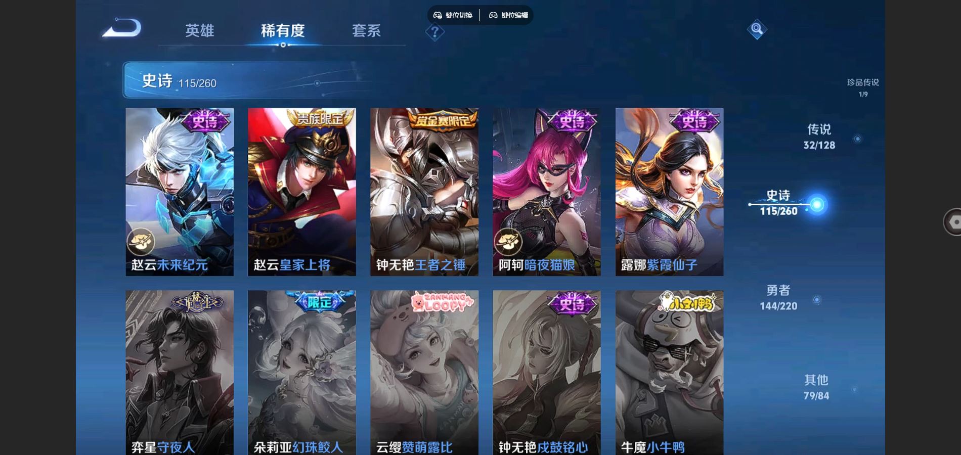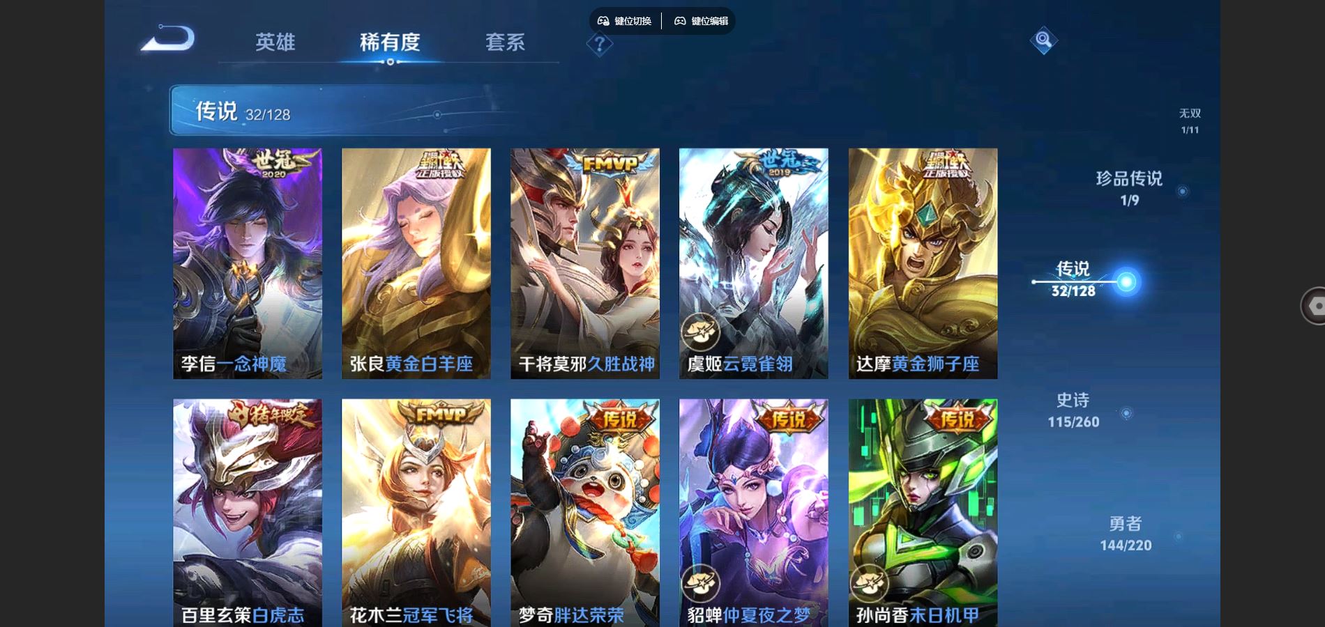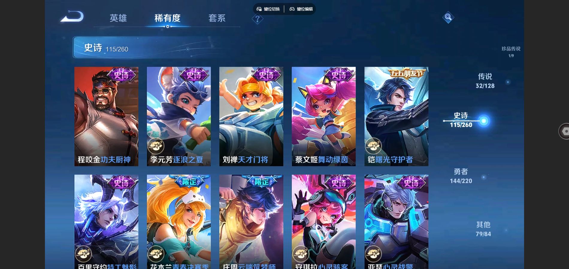 V8-374皮肤2典藏1无双1珍品传说32传说 万战金标阿轲 金标公孙离 2星传说 星际治安官 金色