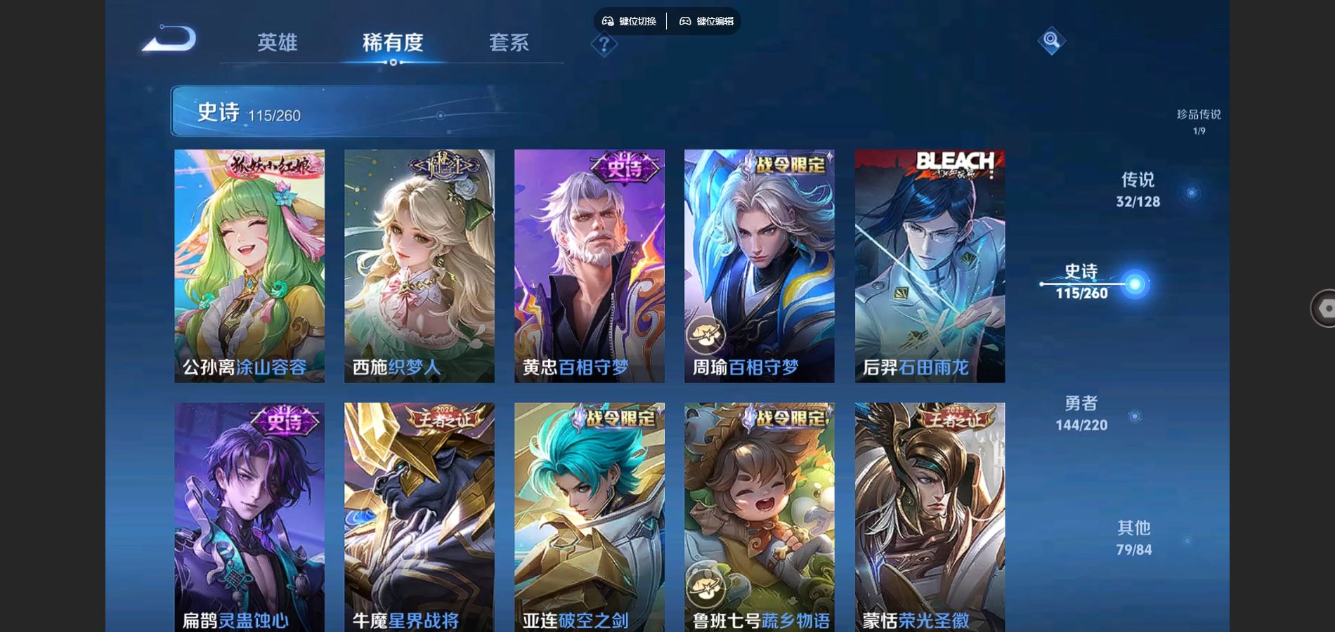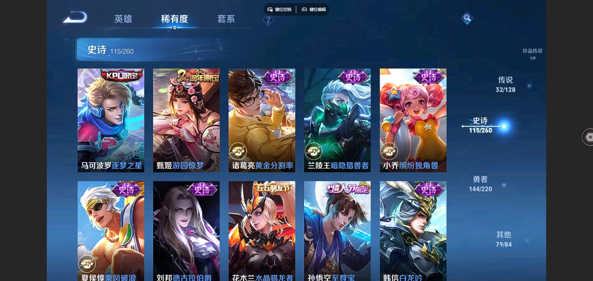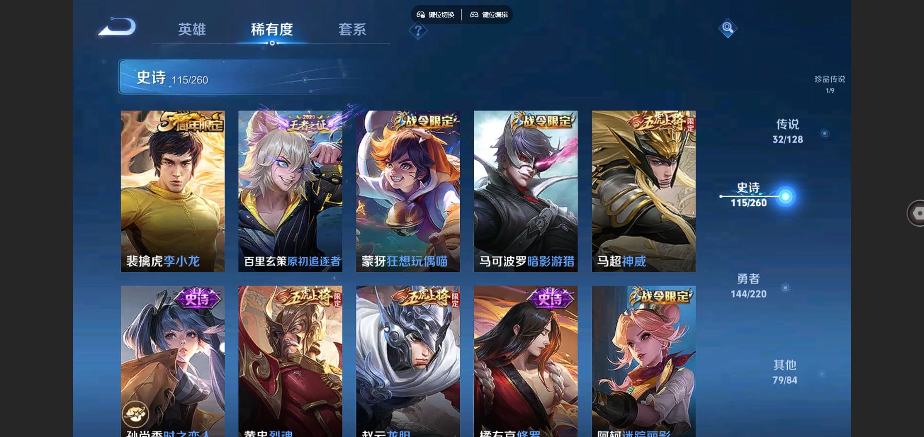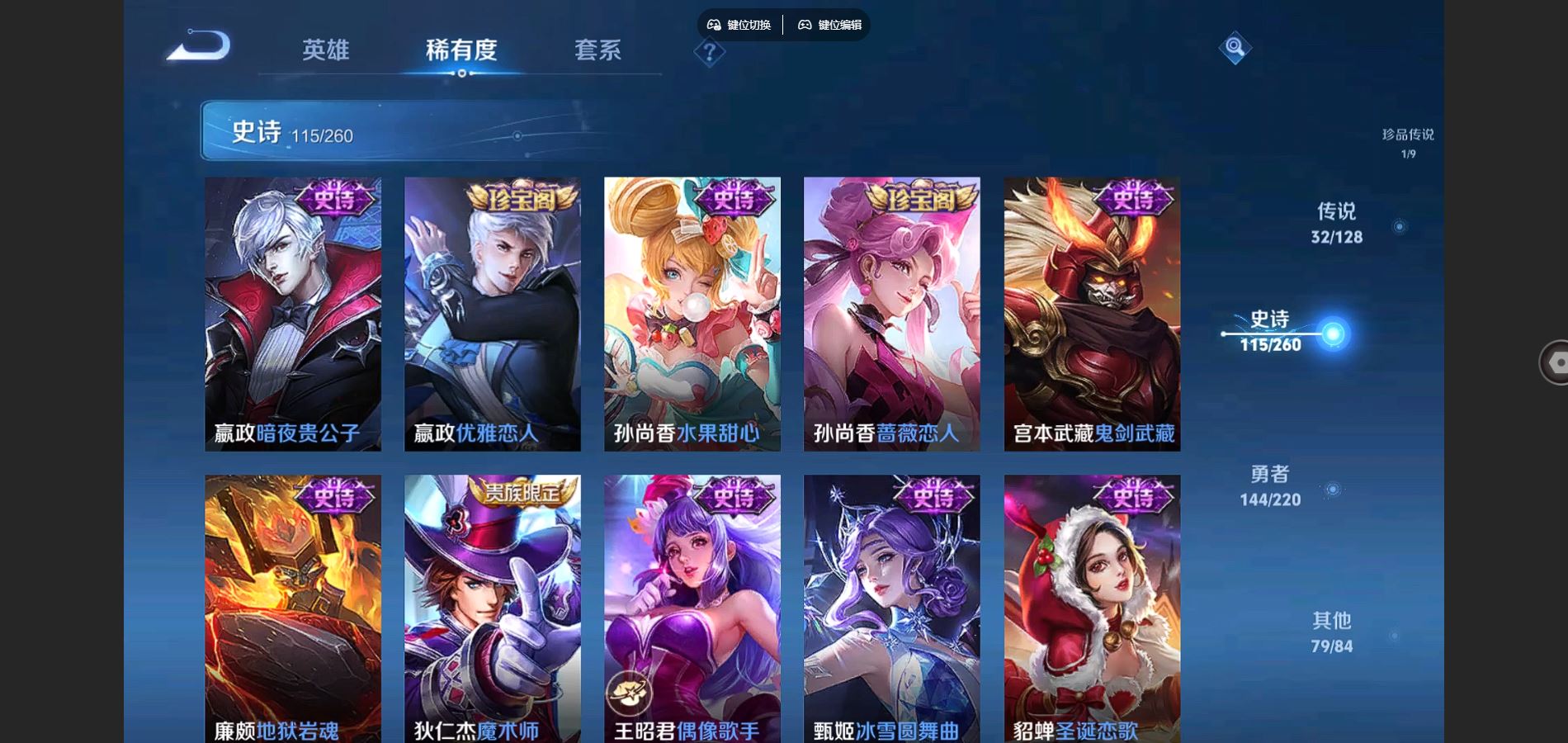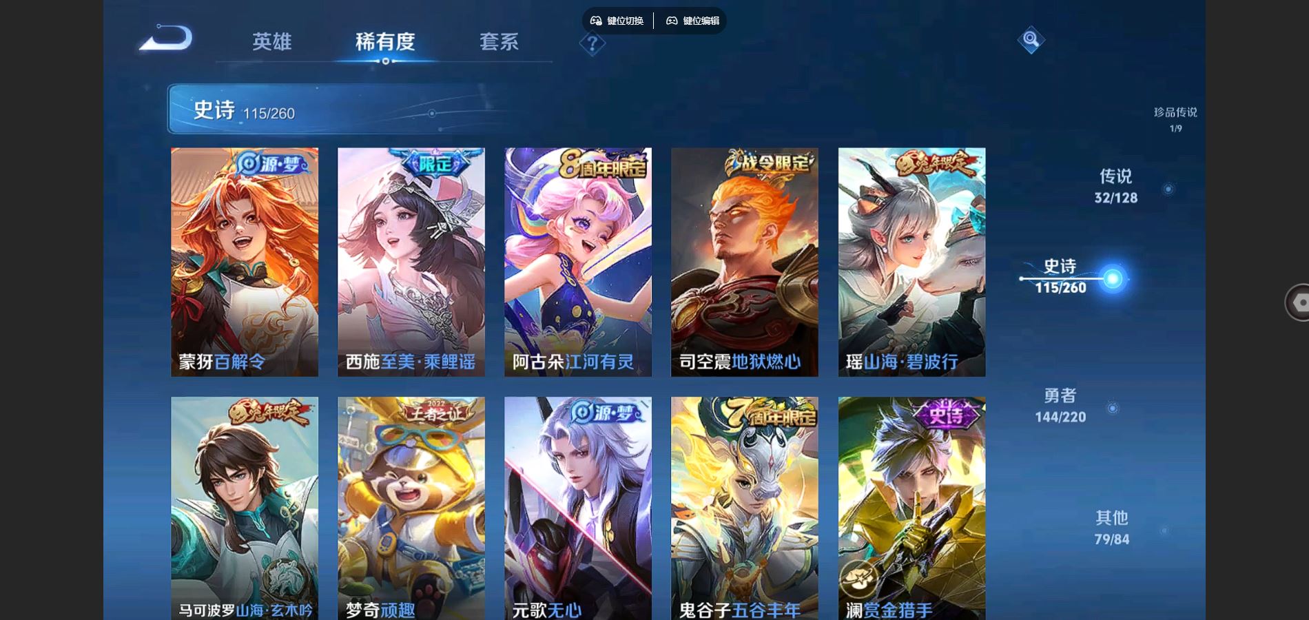 V8-374皮肤2典藏1无双1珍品传说32传说 万战金标阿轲 金标公孙离 2星传说 星际治安官 金色