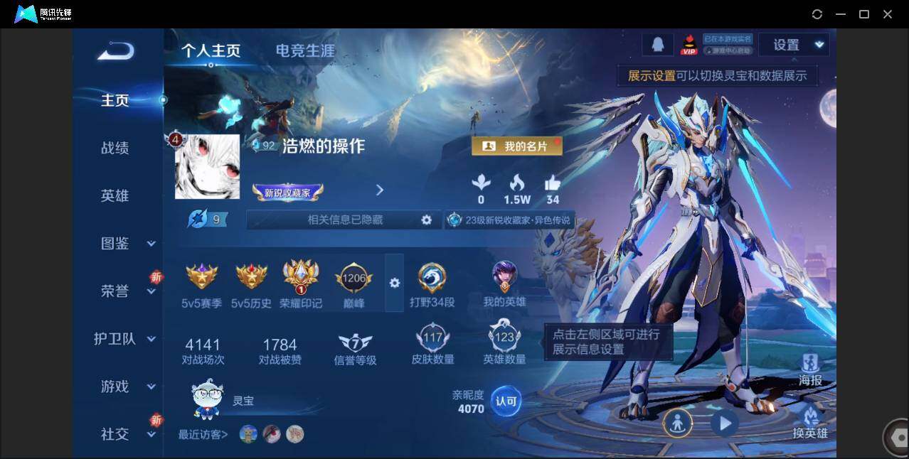 【W4205】安卓Q区-可二次-贵4-123英雄-117皮肤-5传说-25史诗