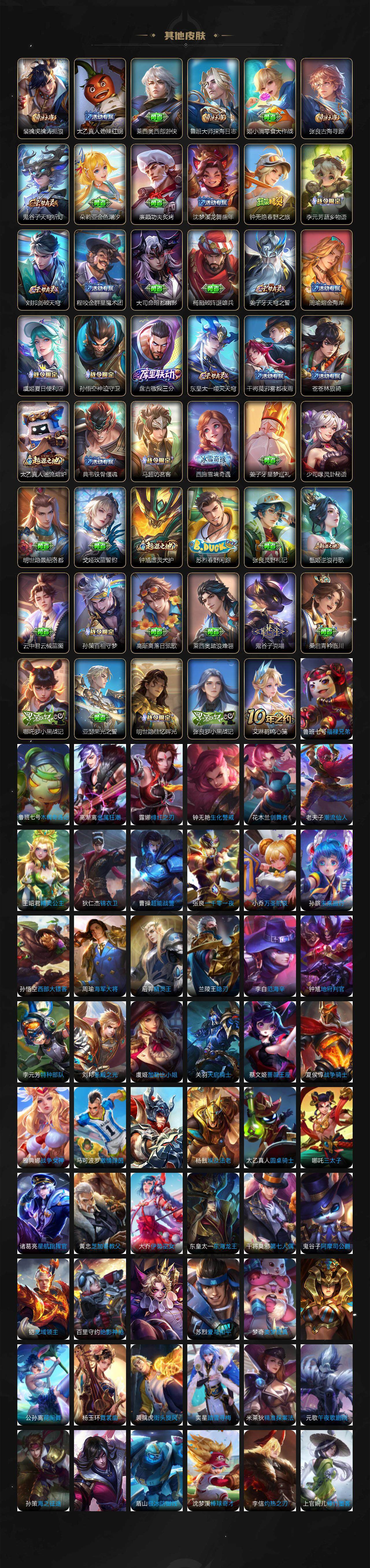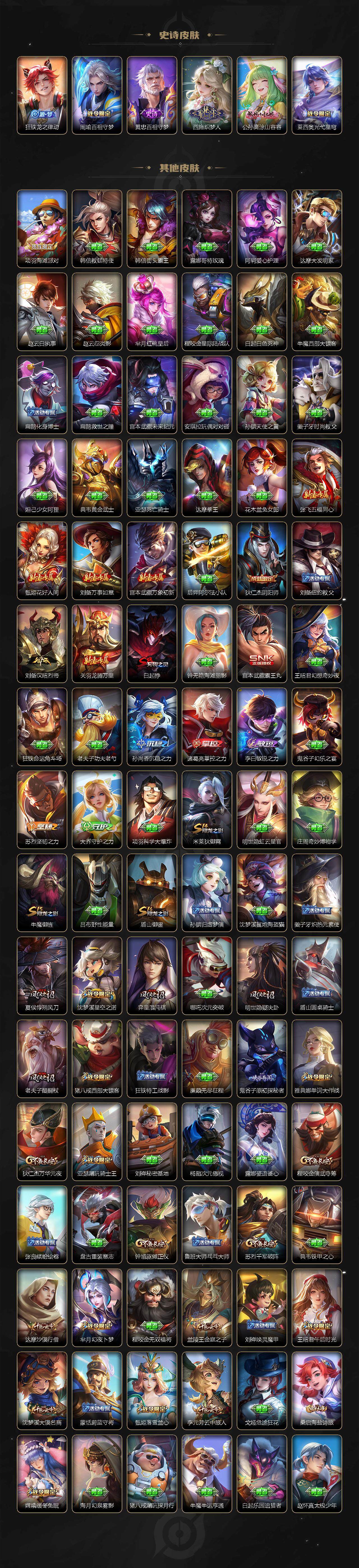 【英雄全皮】:元歌全皮,鬼谷子全皮,苏烈全皮,李信全皮,猪八戒全皮