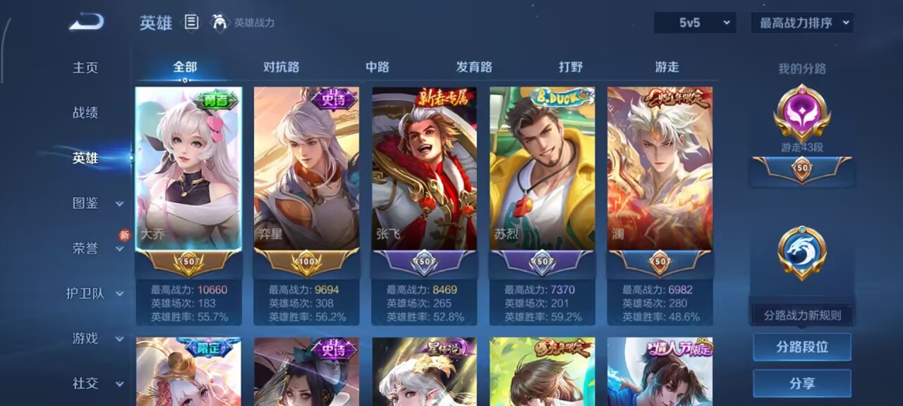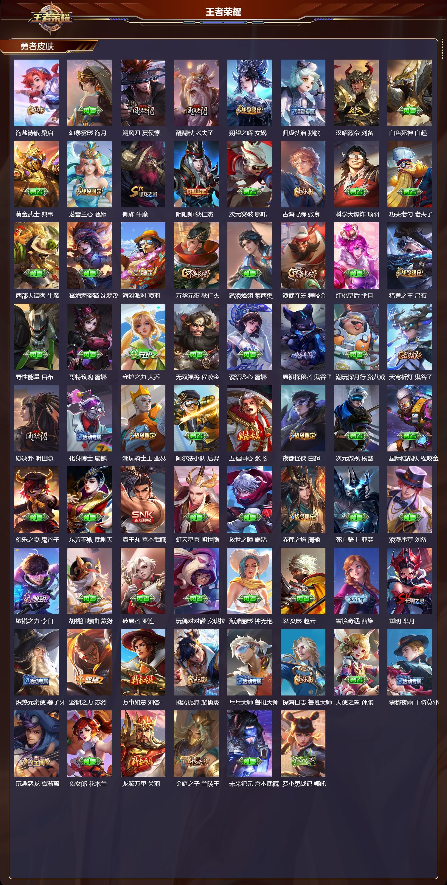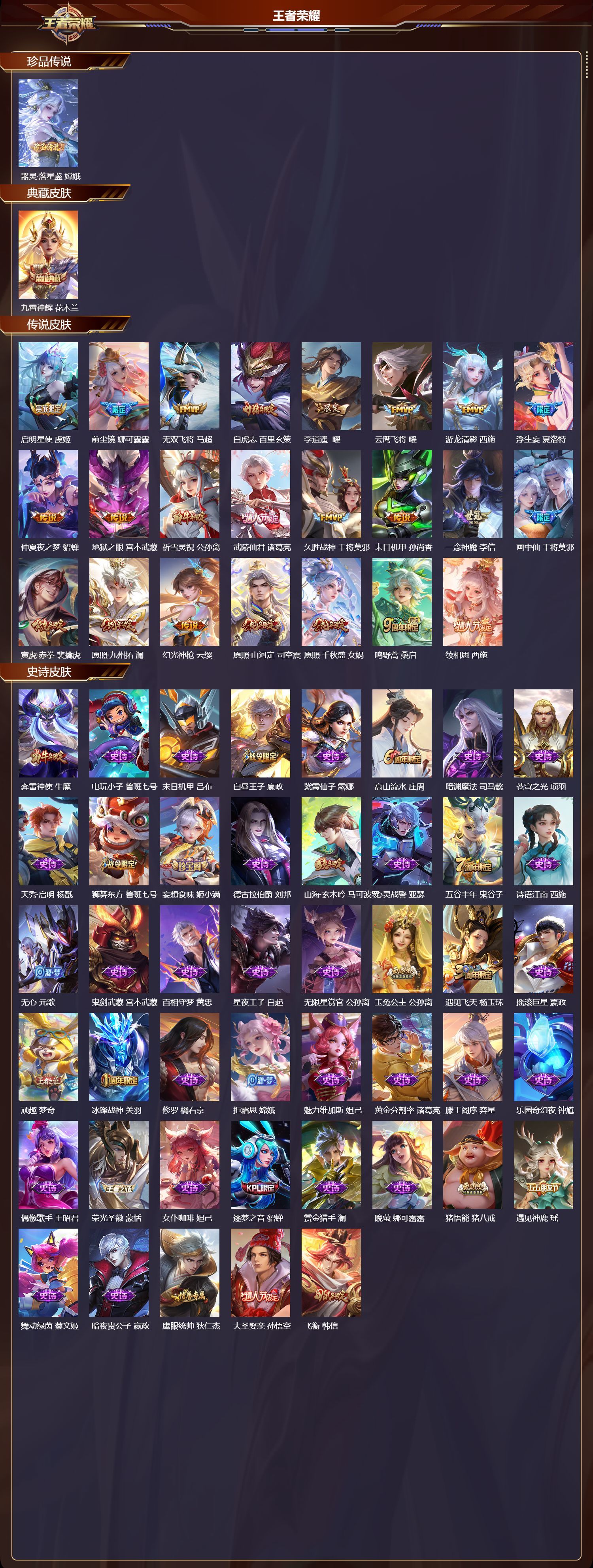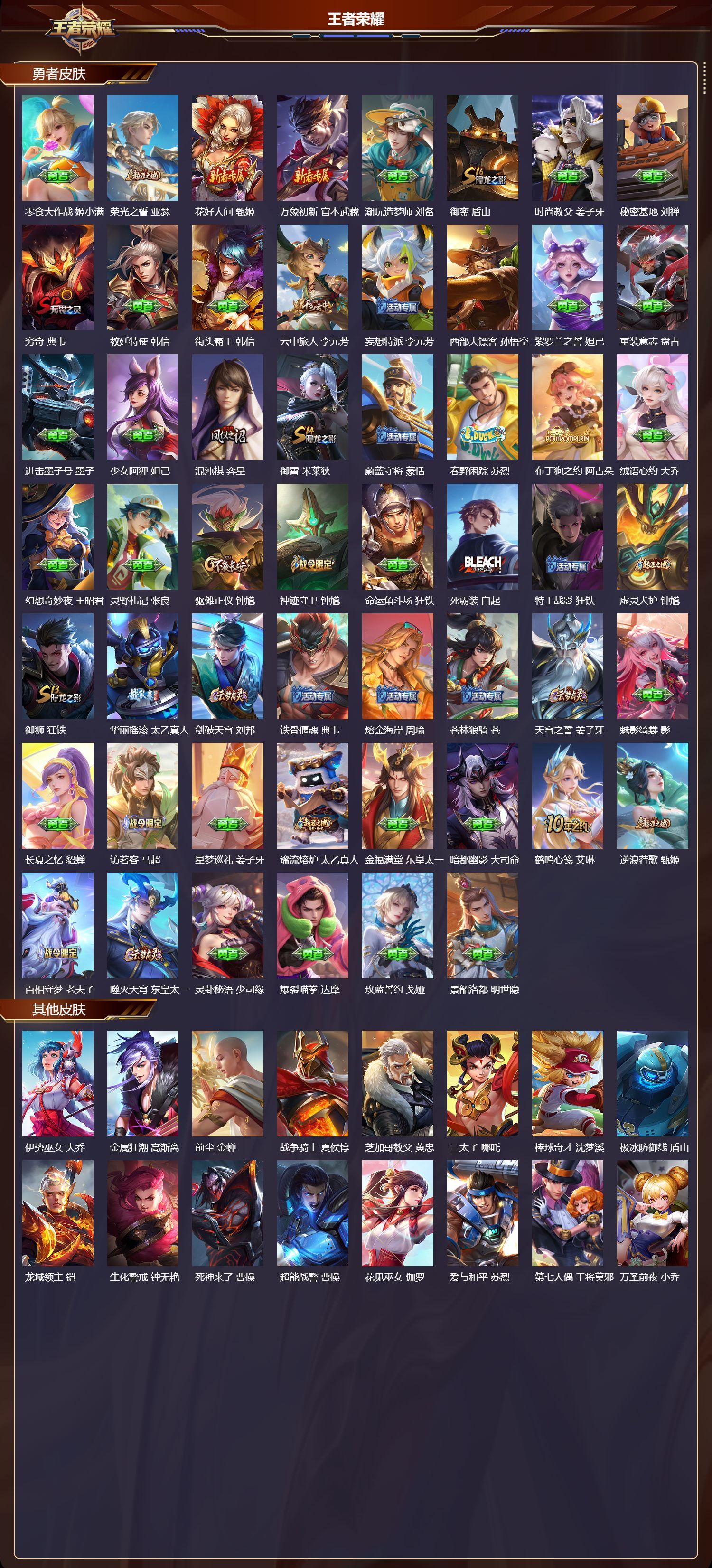 安卓QQ/非凡王者/337皮肤/125英雄/1典藏/0珍品无双/0无双/1珍品传说/23传说/102