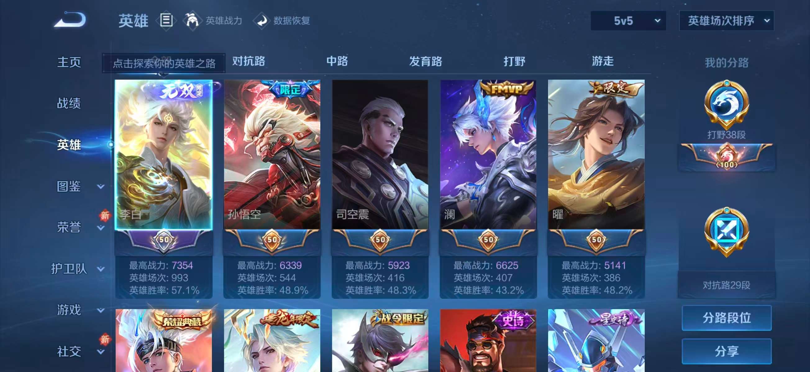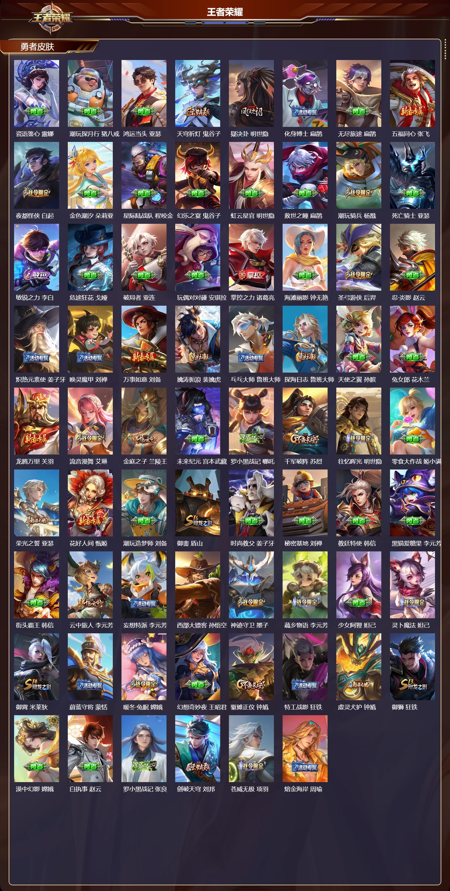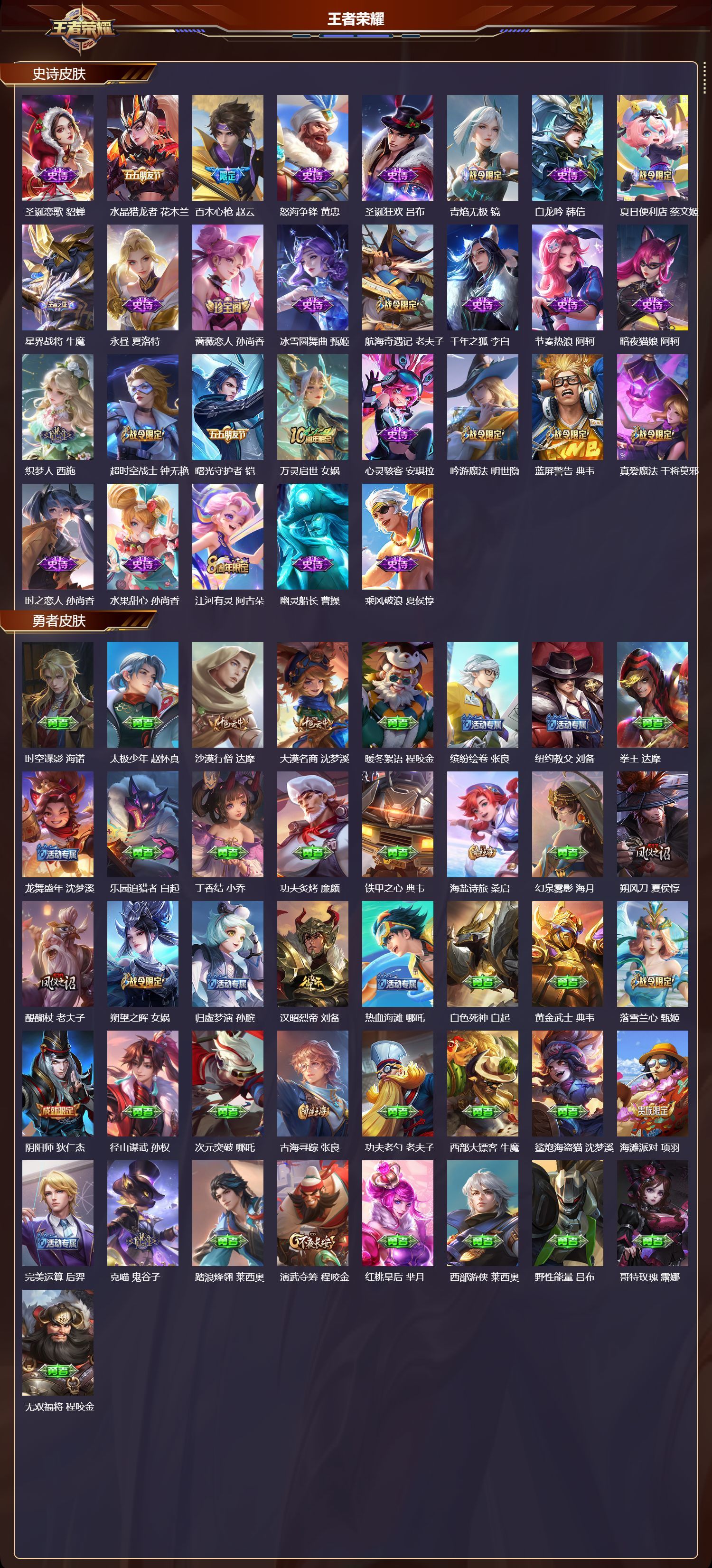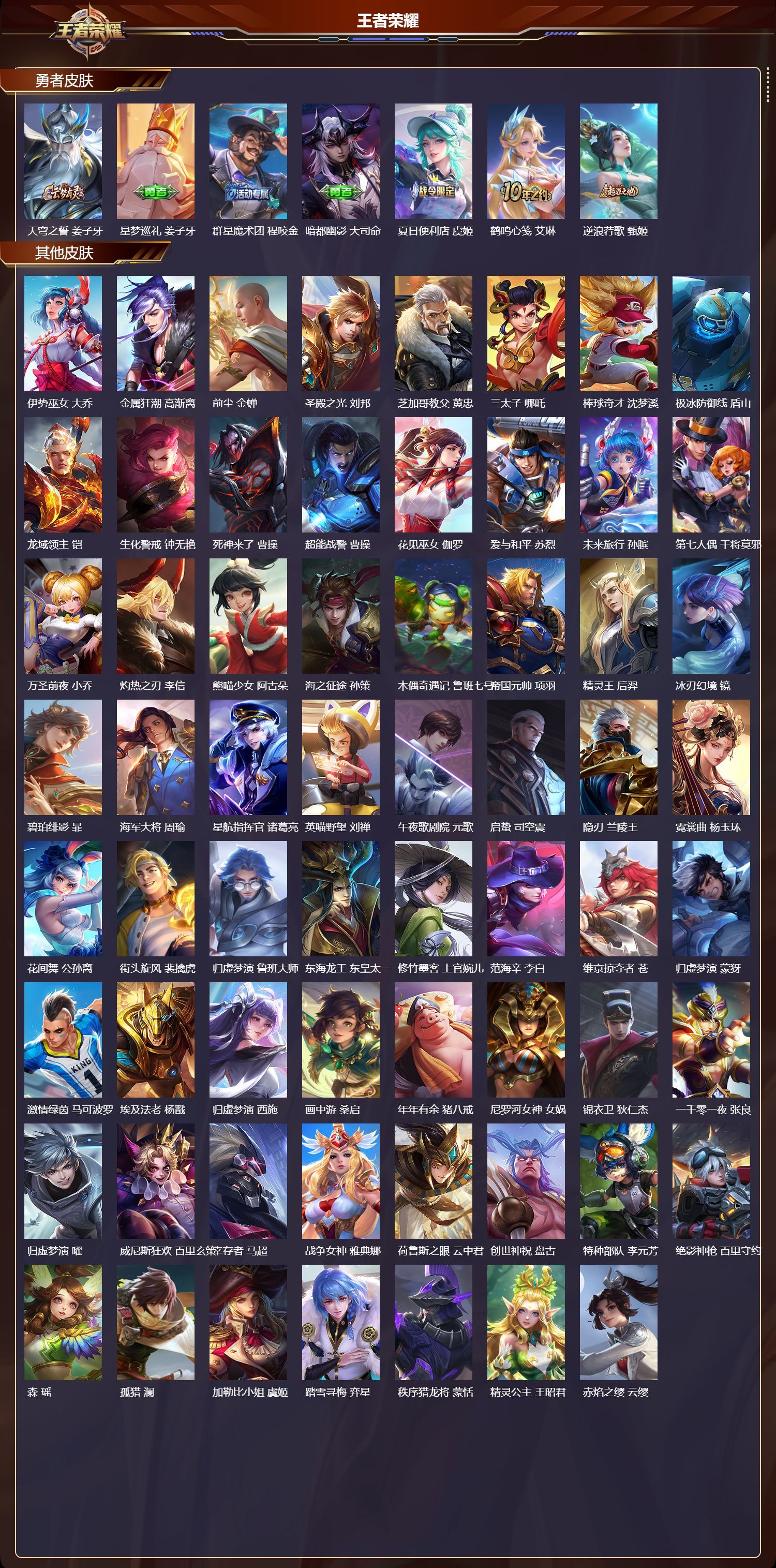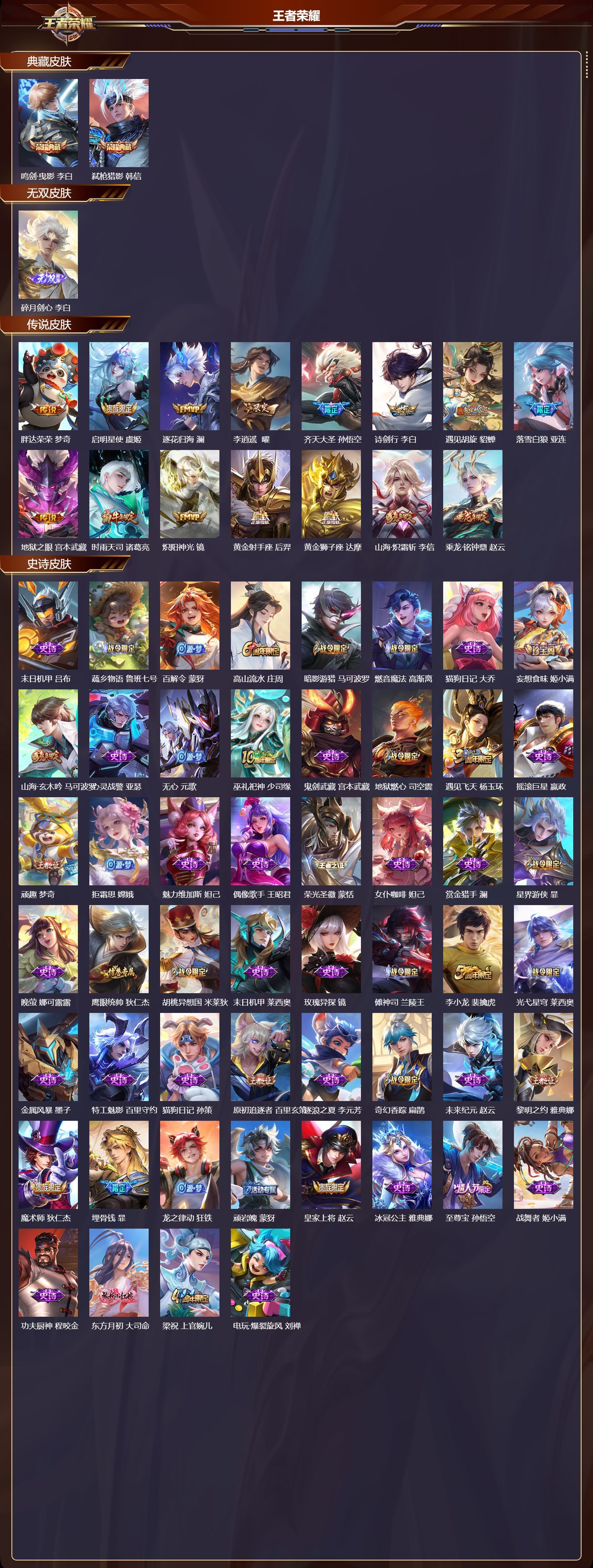 安卓v/传奇王者/285皮肤/127英雄/2典藏/0珍品无双/1无双/0珍品传说/15传说/81史