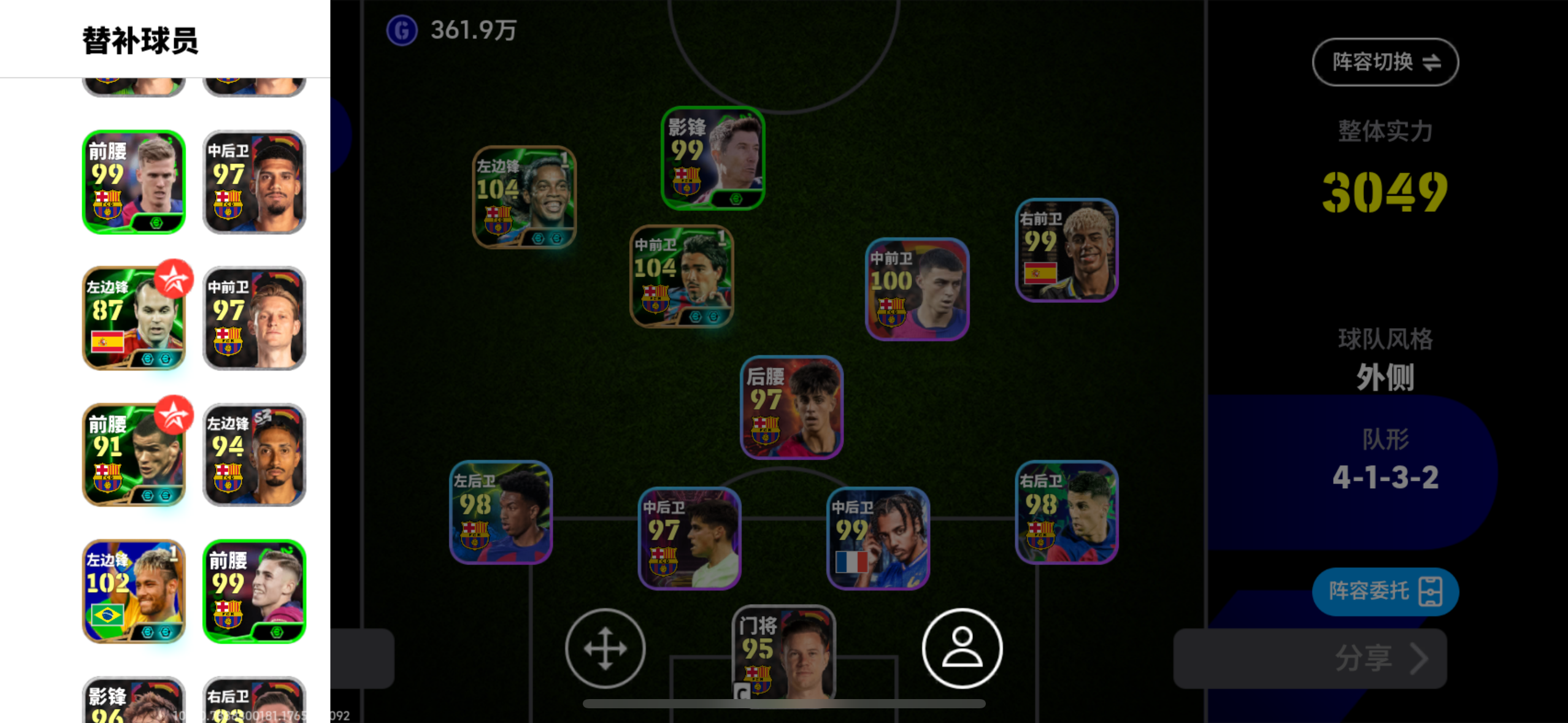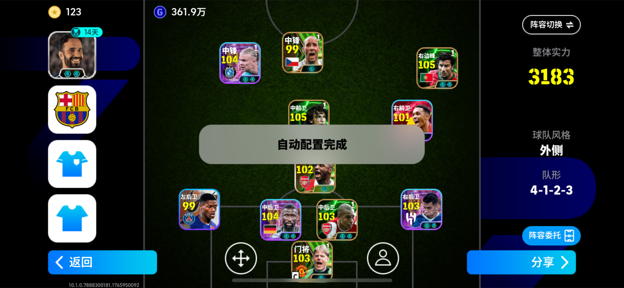 毕业菲戈 双增小罗哈兰德 高光鲁美 以及单增杨科勒 维埃拉 毕业中场线 适应多种阵型(传控流 砸阵 狗叼飞盘) 巴萨套打天梯没问题