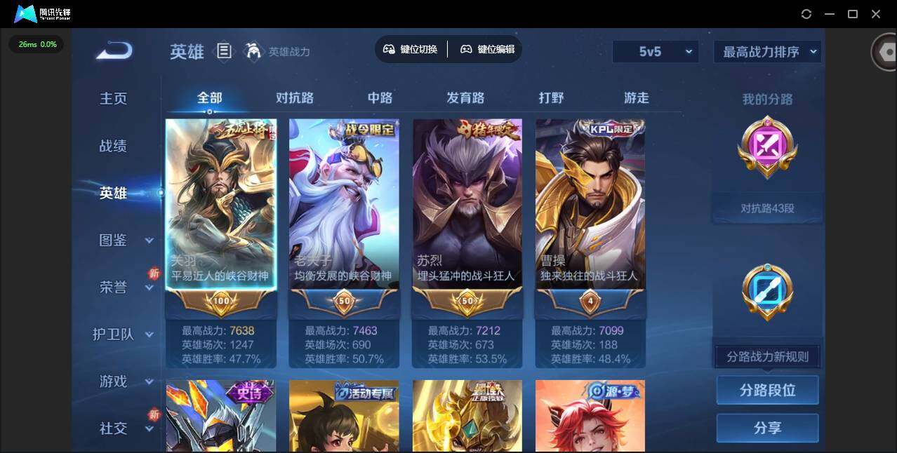 【金标关羽 金标苏烈 金标刘禅 金标高渐离】贵族等级: V7 英雄数: 127