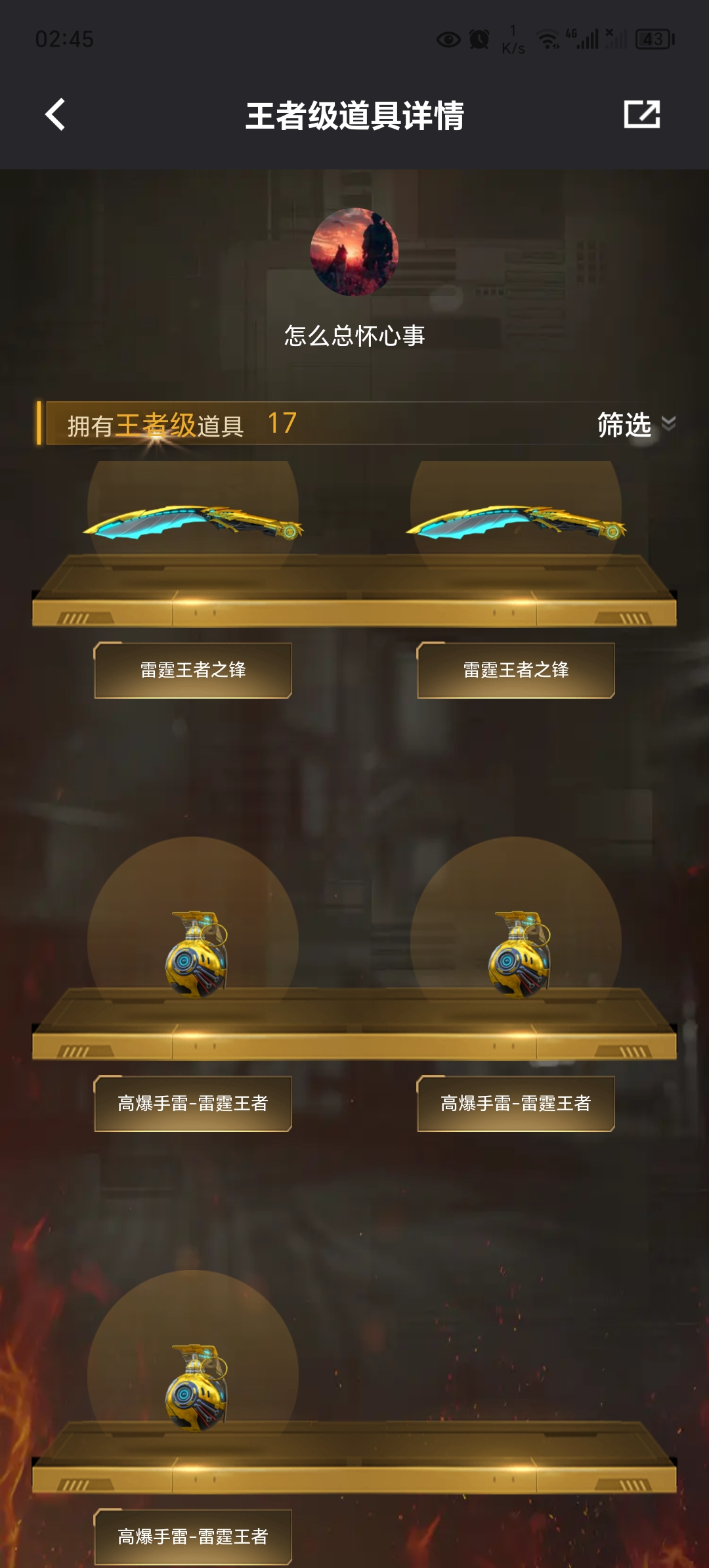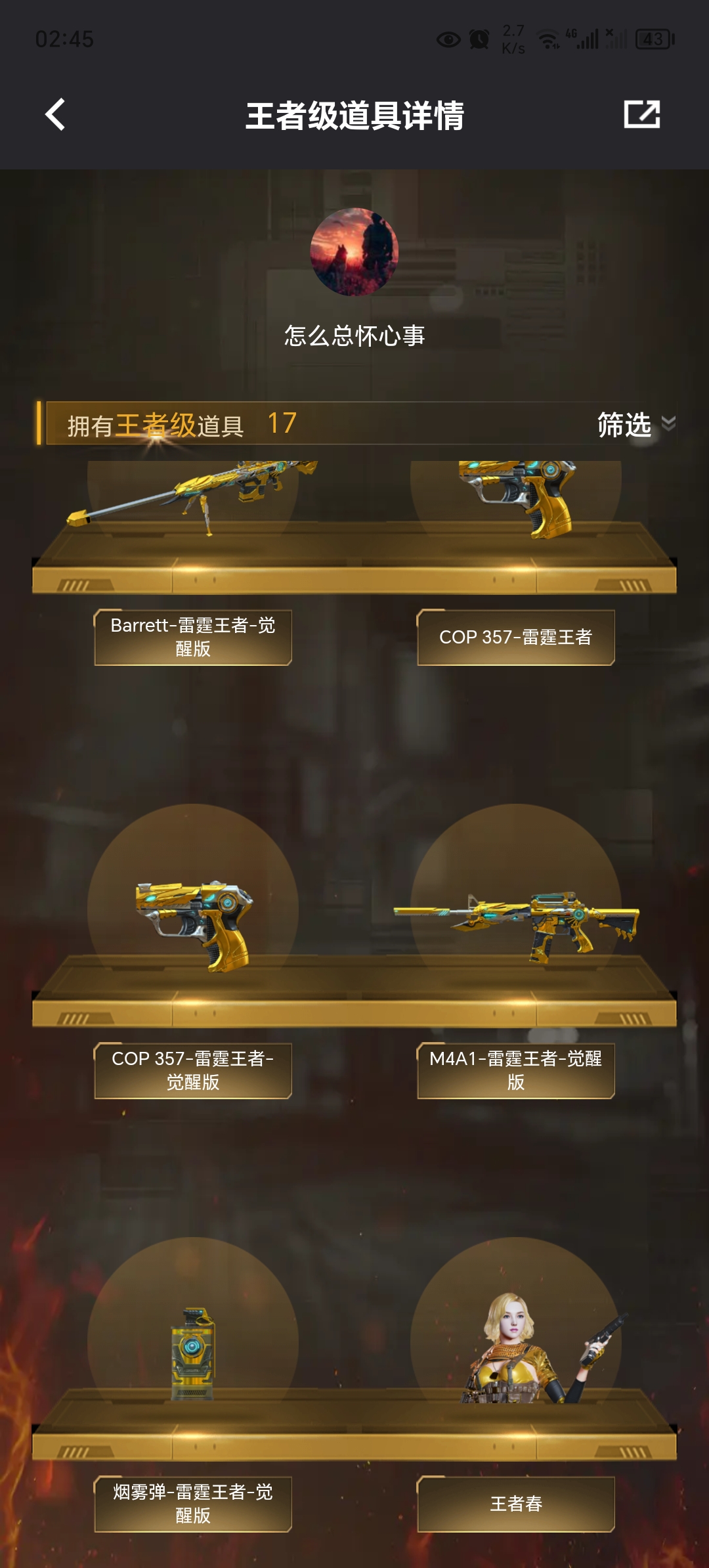 就一个雷霆王者套值点,当初抽这一套花了四k多,还连体一个安卓QQ区的王者荣耀v7的号韩信1.1w战。