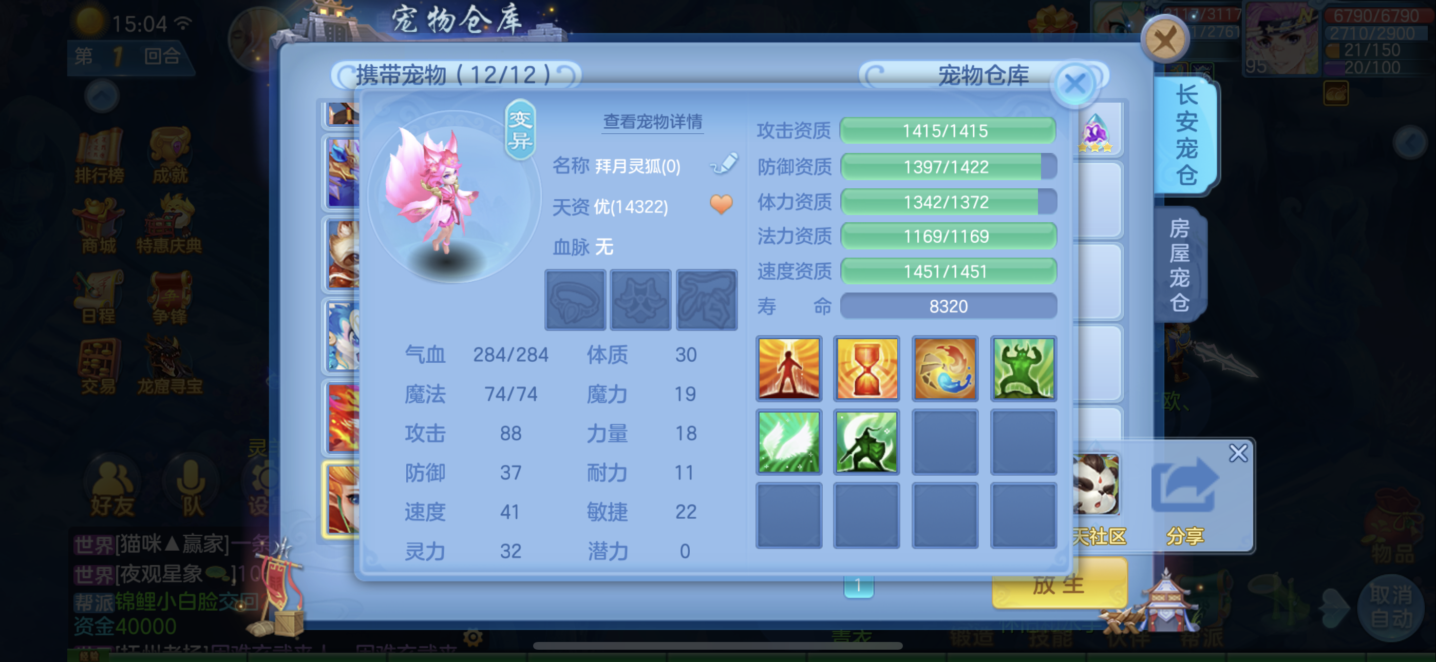 新区刚开卡95。宝宝特别好。一线属性。日常所有困难本无压力。一个神兽。仓库有40个神兽蛋。随便换蛇或者龙马。刚买的月卡和头像