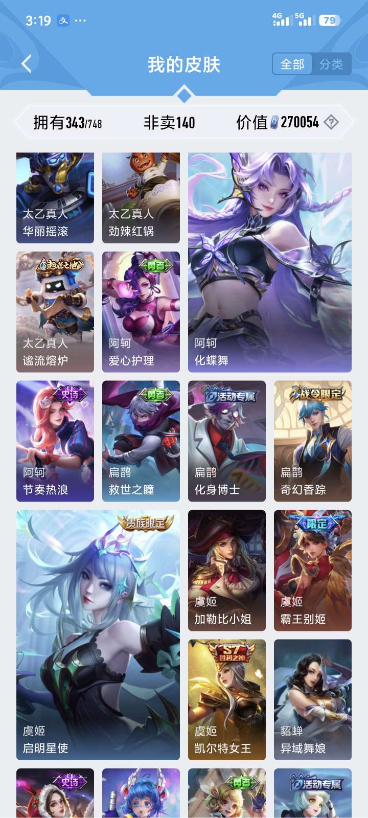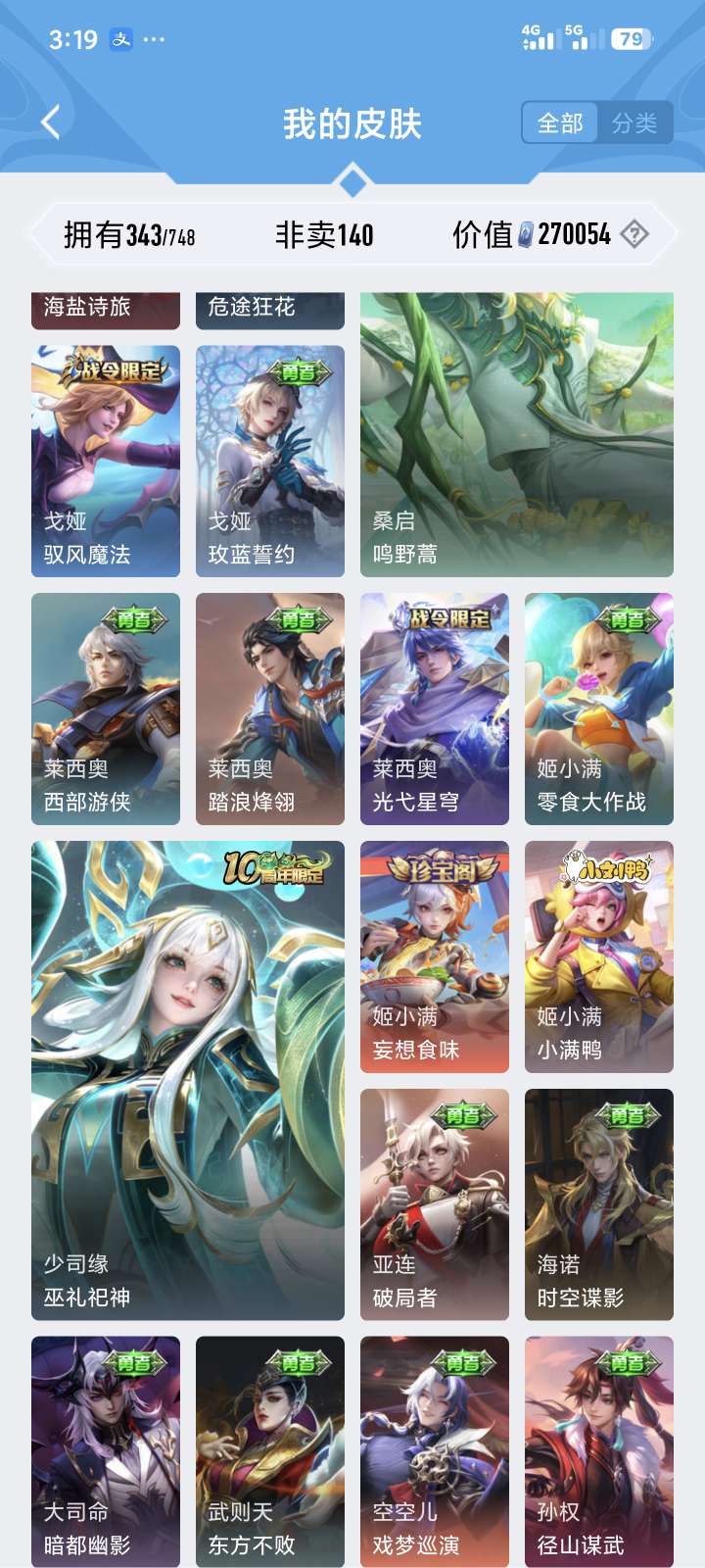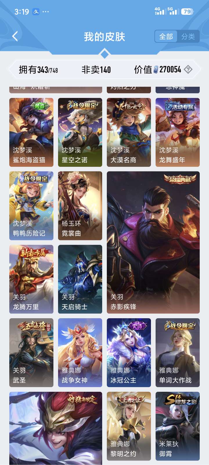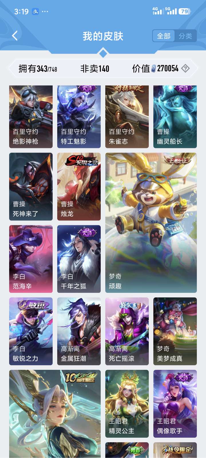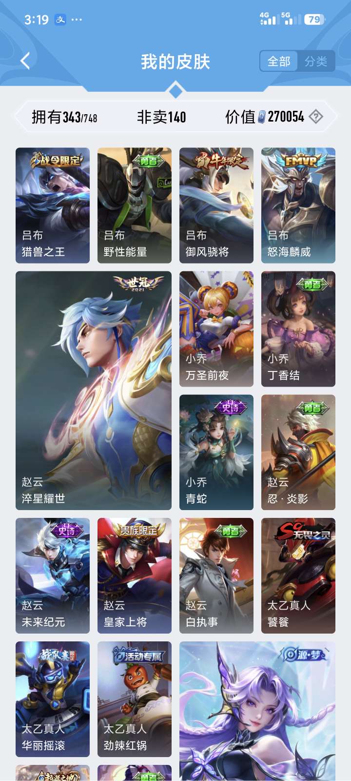 安卓q抢先服,国50司马懿,小国花木兰,三百多个皮肤,猴子关羽荣耀典藏皮肤,,限定皮肤多