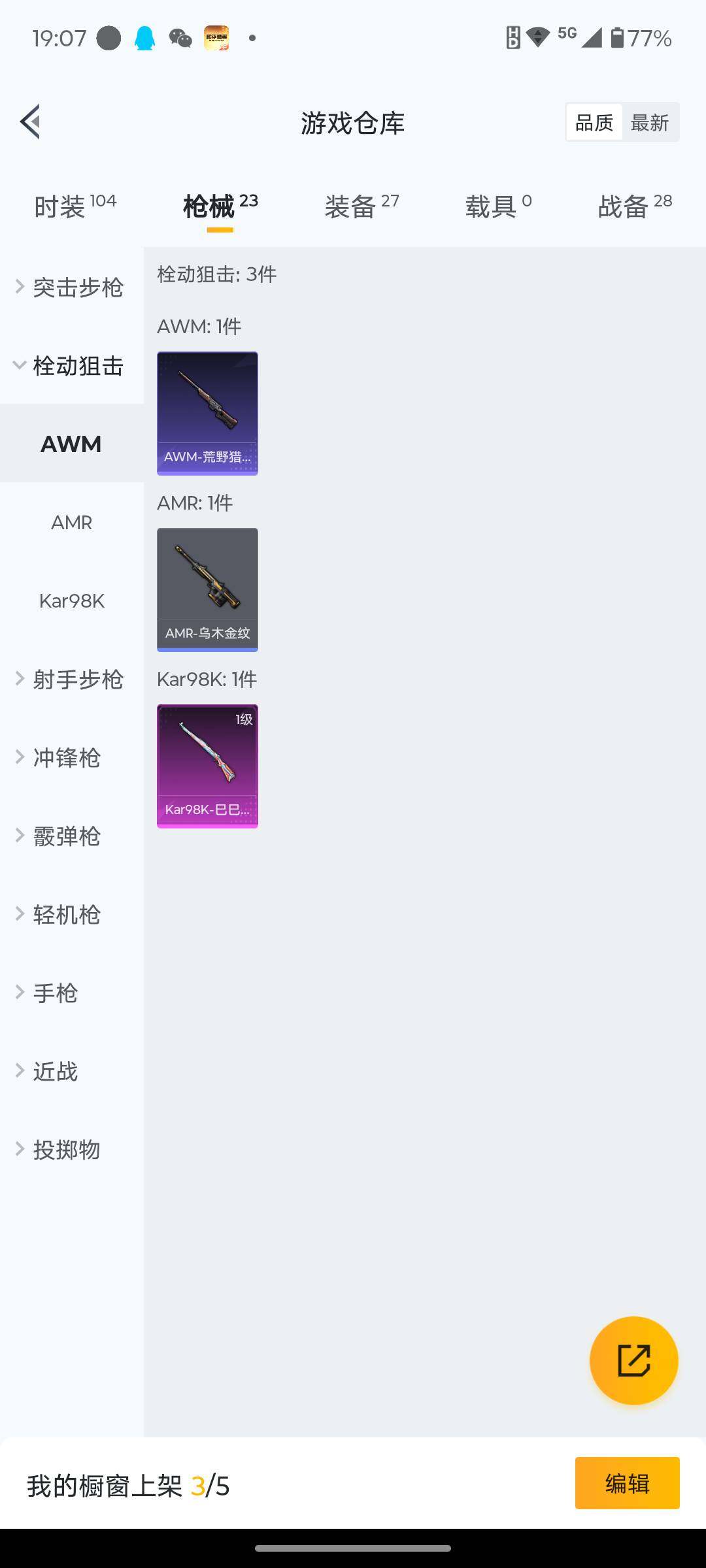 20套装/枪械2/装备27/战备28/热力值6629/一级Kar98K-巳巳如