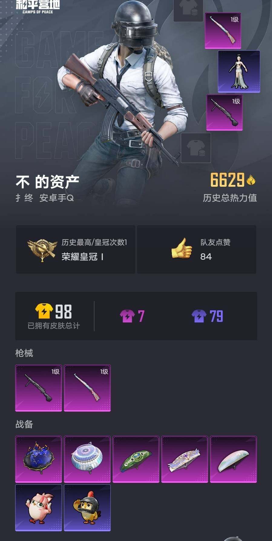 20套装/枪械2/装备27/战备28/热力值6629/一级Kar98K-巳巳如意/一级DP-28-豹影疾电/套装-龟仙人/Kar98K-巳巳如意/DP-28-豹影疾电/莲影清波降落伞/圣堂之誓降落伞/忍者神龟降落伞/时空协奏降落伞/鬼刀降落伞/龟仙人/角色-海琴烟/SCAR-L-炫彩节奏/M416-糯团青竹/M762-天降萌叽/G36C-星穹咏叹调/蜜獾-天降萌叽/P90-巳巳如意/AWM-荒野