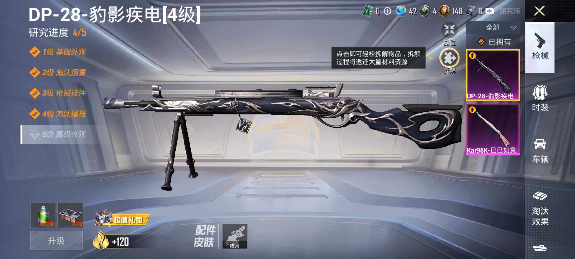 25套装/枪械2/装备42/战备31/热力值8280/二级Kar98K-巳巳如