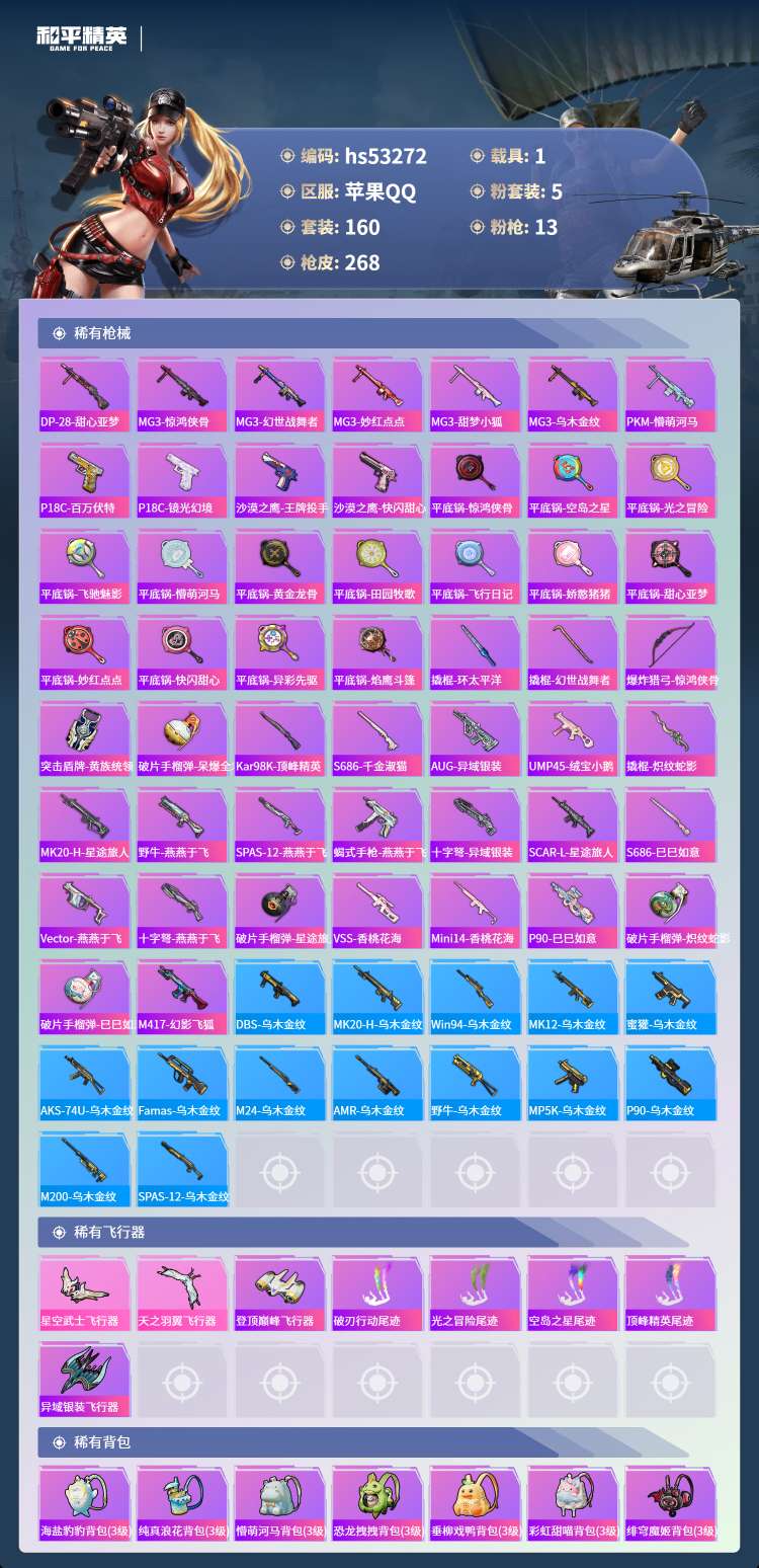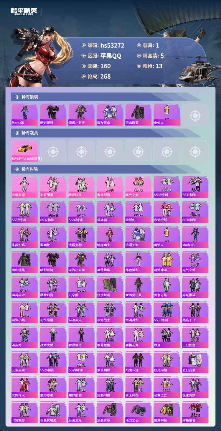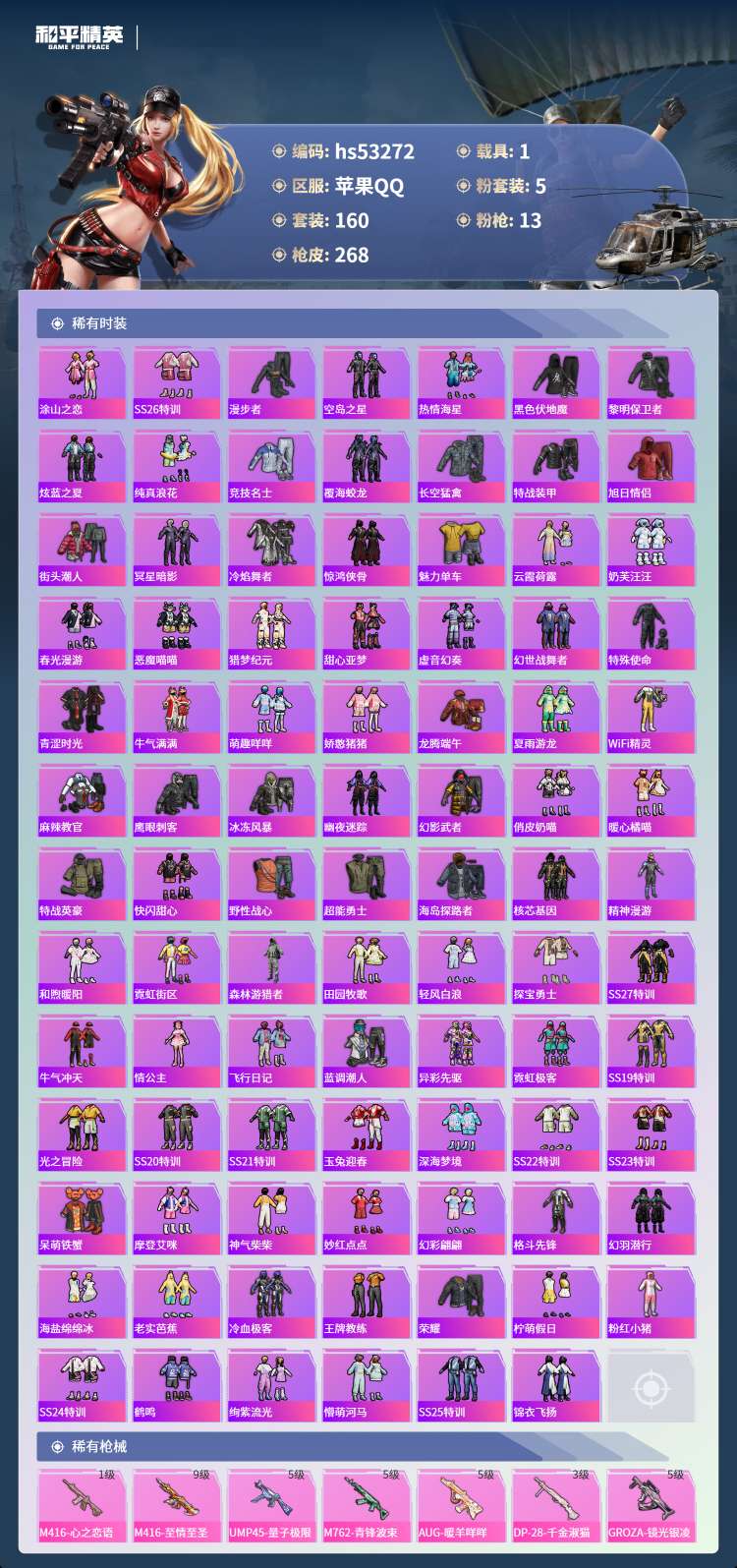 hs53272 苹果手Q-18王牌印记-5粉装-13特效枪-1载具-77789热力值-160套装-2