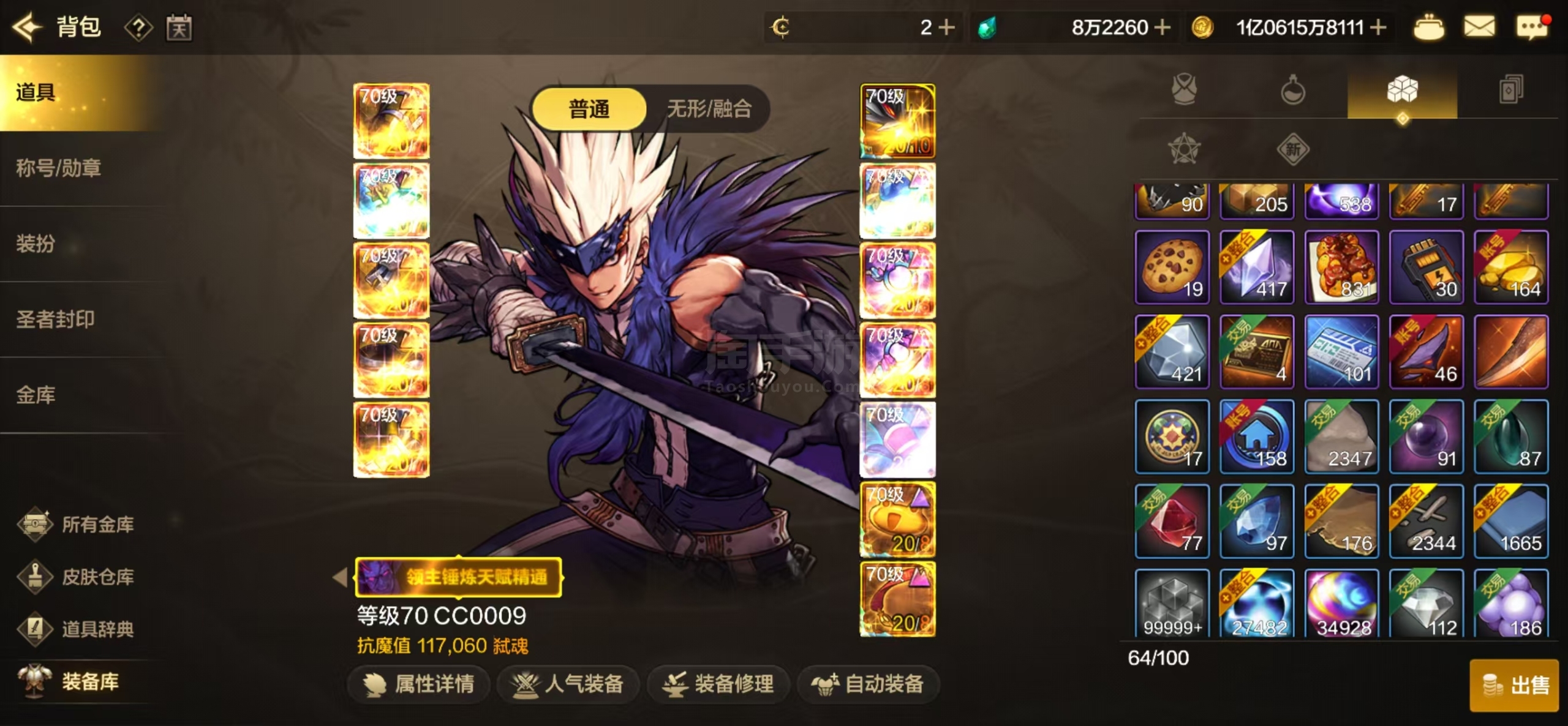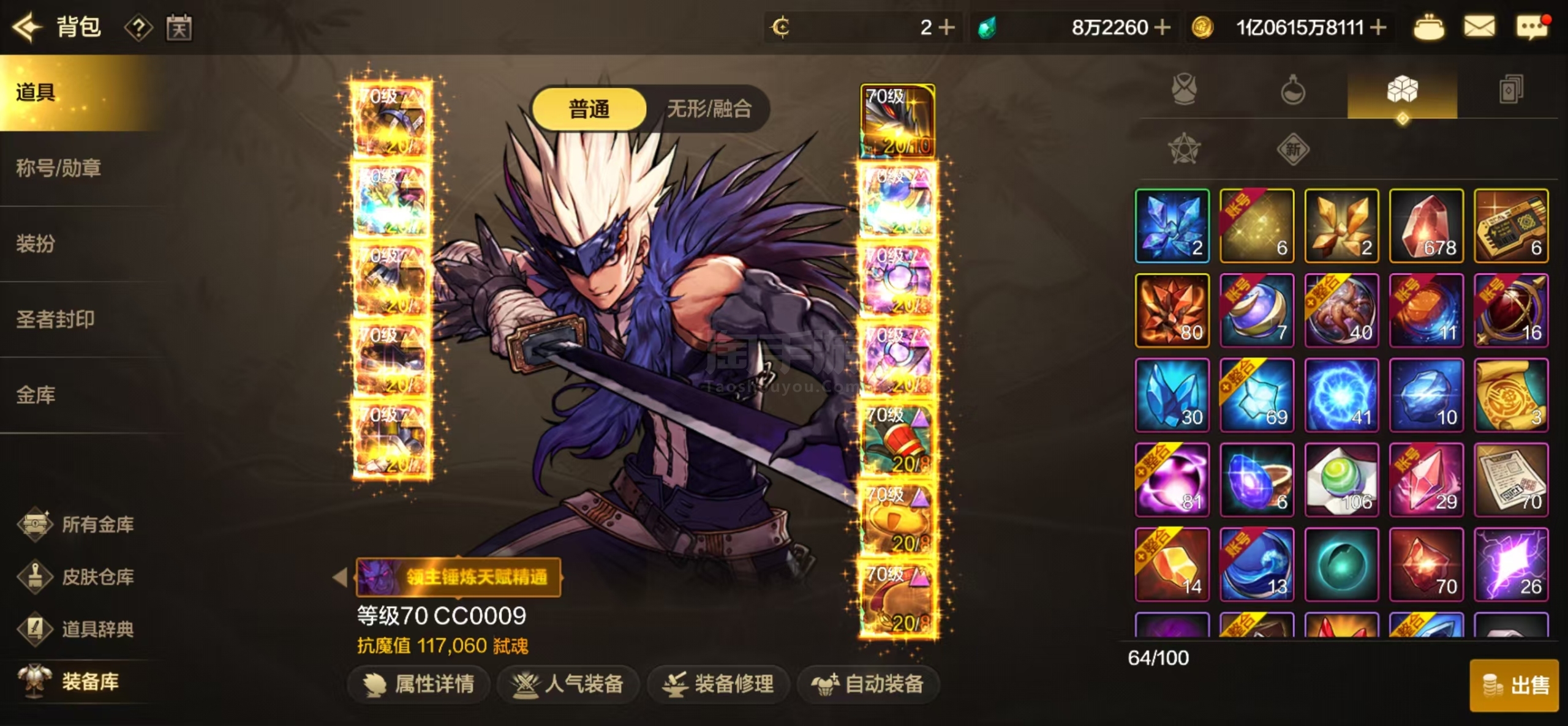该有的至尊道具都有,大号和副C装备都是毕业的套都毕业了,诚心卖号价格还可以谈点