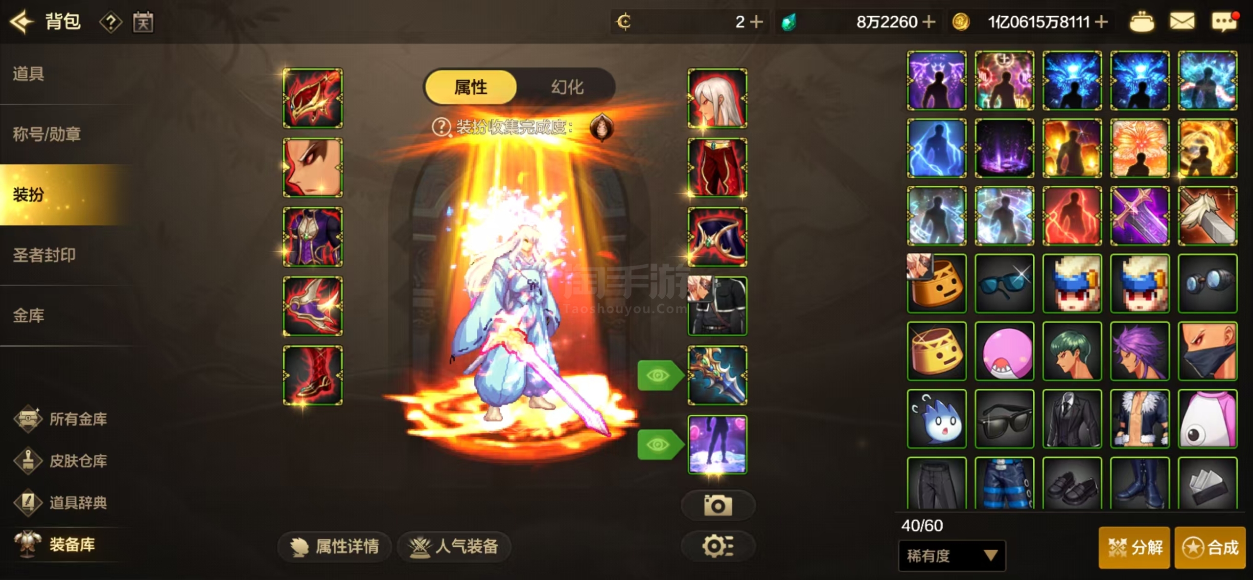 所有至尊道具都有,大号全身增幅10+8+7,小号副c部分氪金道具,两把万氪剑