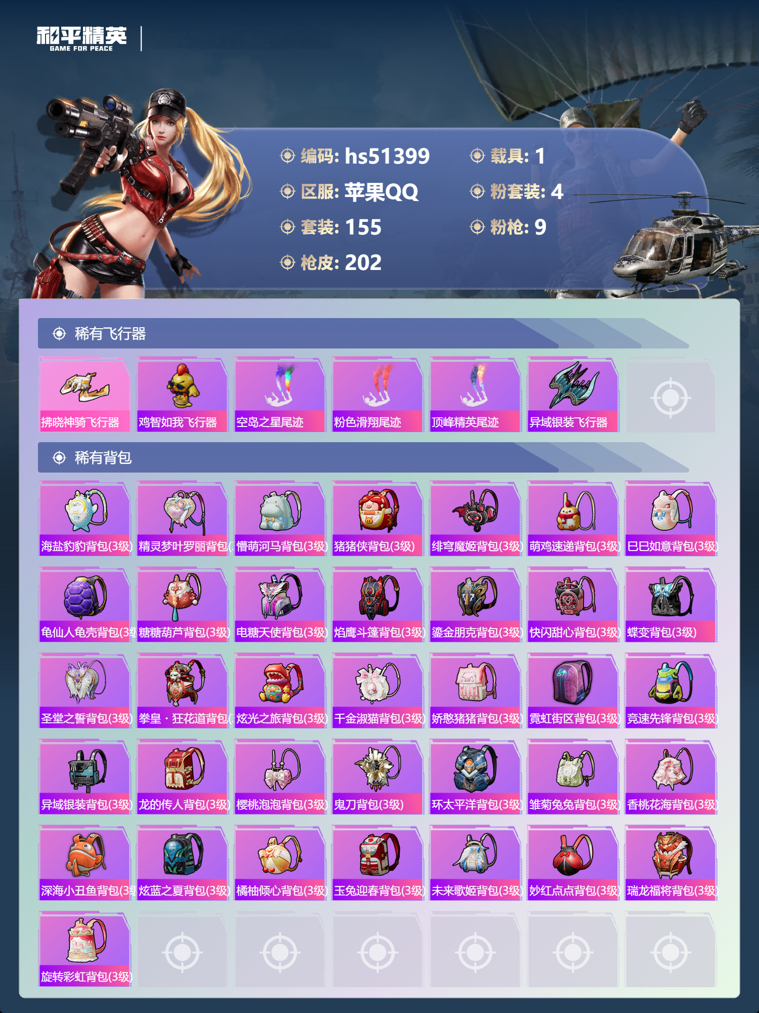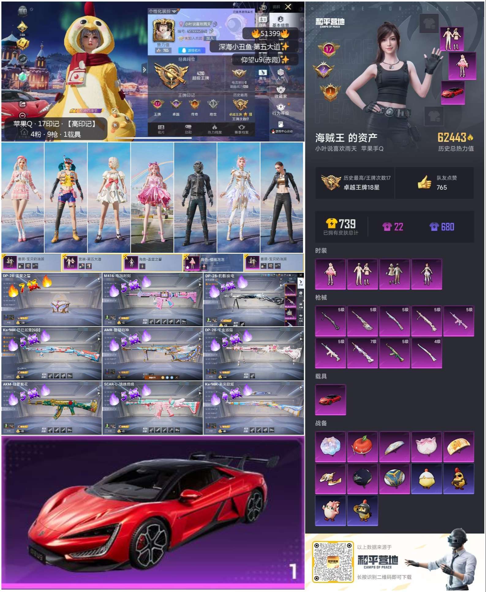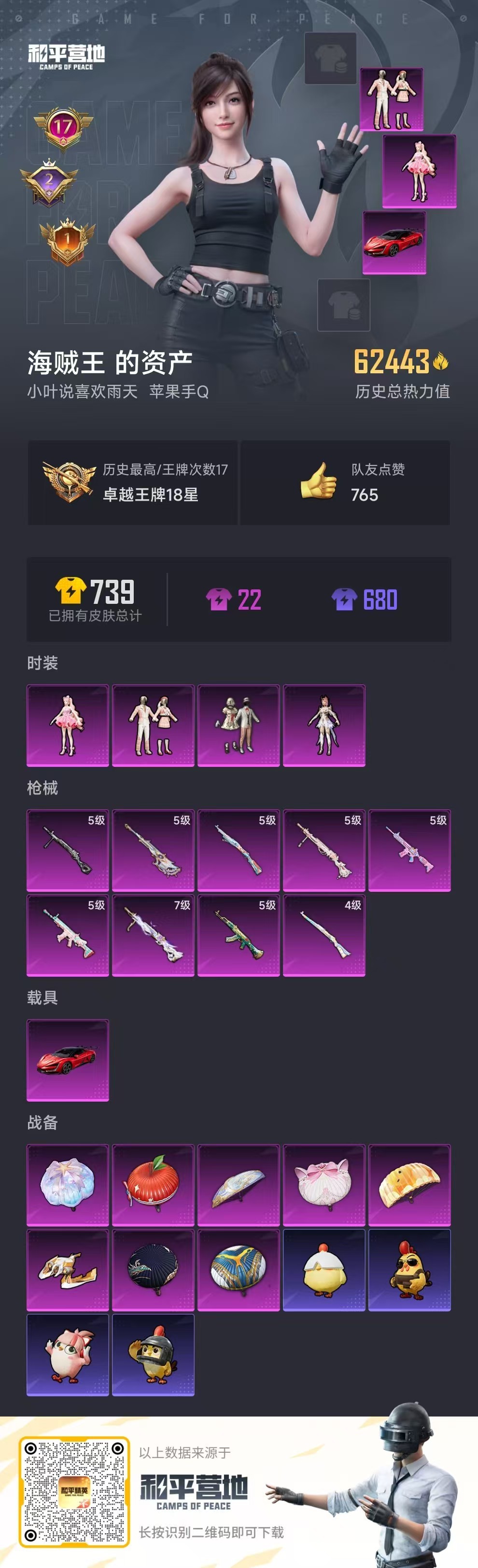 hs51399 苹果手Q-17王牌印记-4粉装-9特效枪-1载具-62443热力值-155套装-20