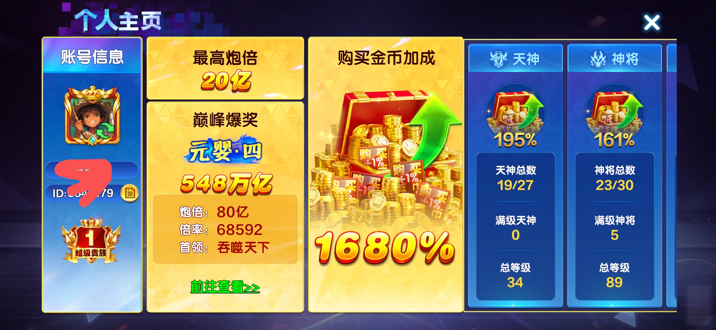捕鱼大咖文字号卖断,贵族1,20亿大炮,限时80亿,超高加成