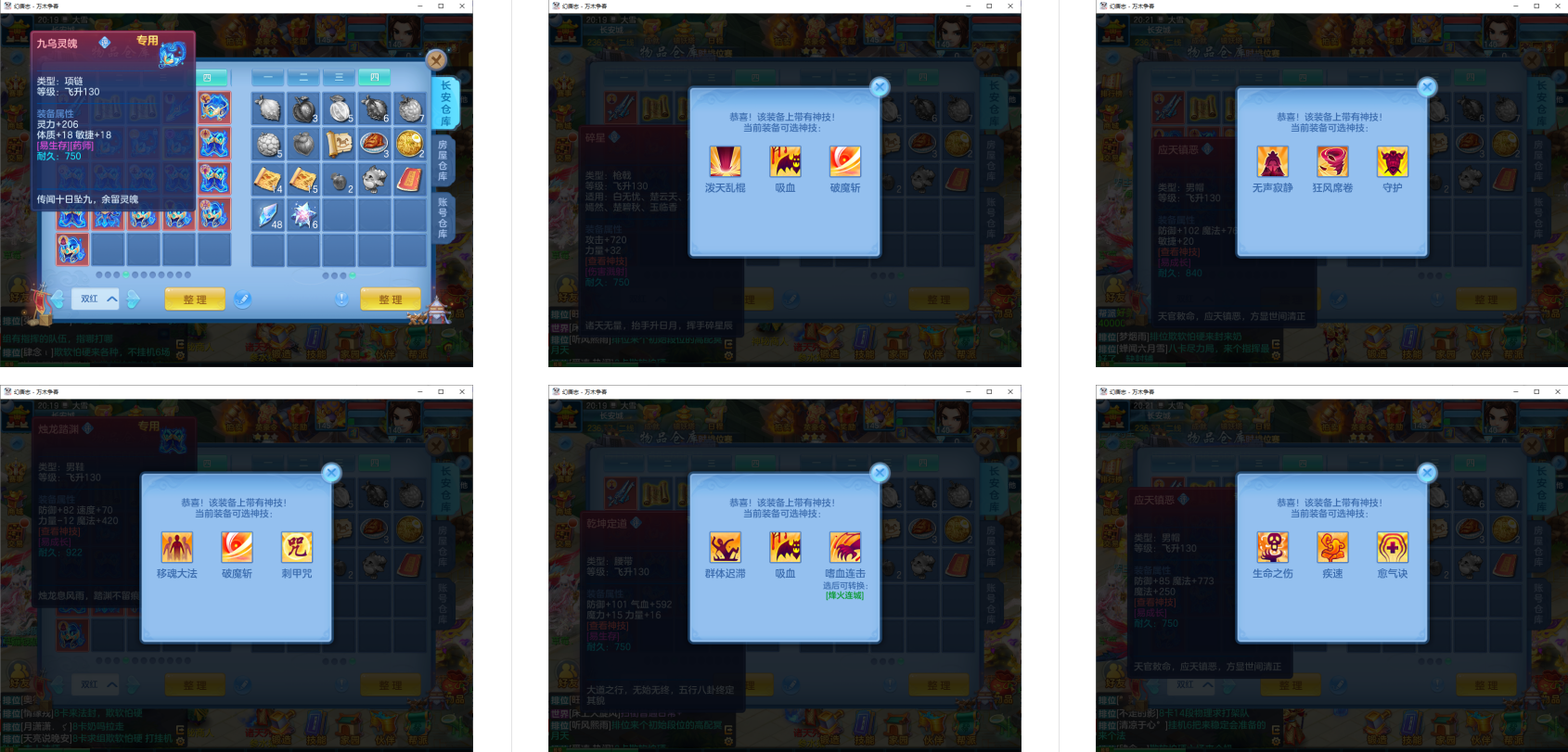 4件14段2件13段,特技装,双满魂强化仙兽+20个6多特殊5(总12满魂),15红14黄12专属,4个宝宝皮肤,高级坐骑+金拍庄园,220万银子,仓库还有90颗神兽灵+45内丹碎片,仓库资源也有,3271成就