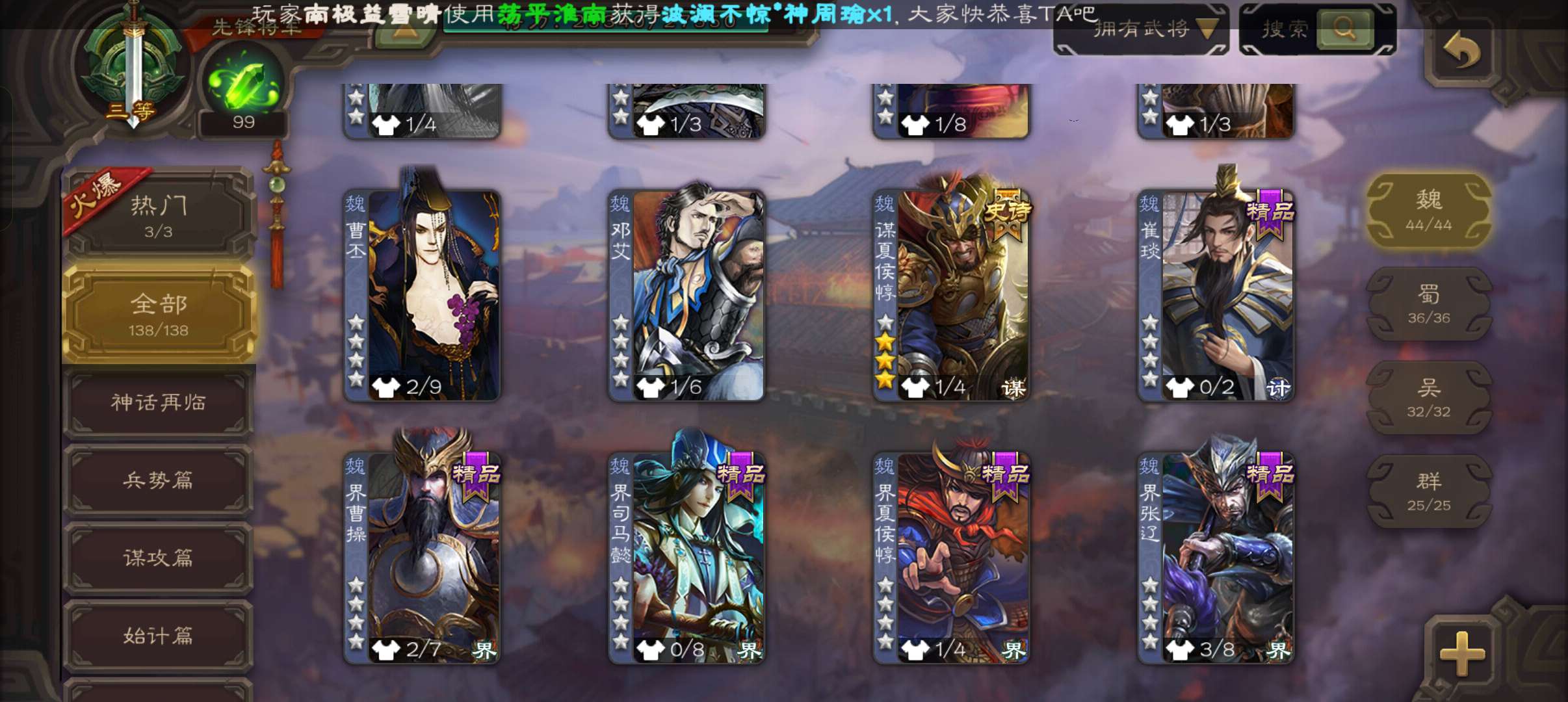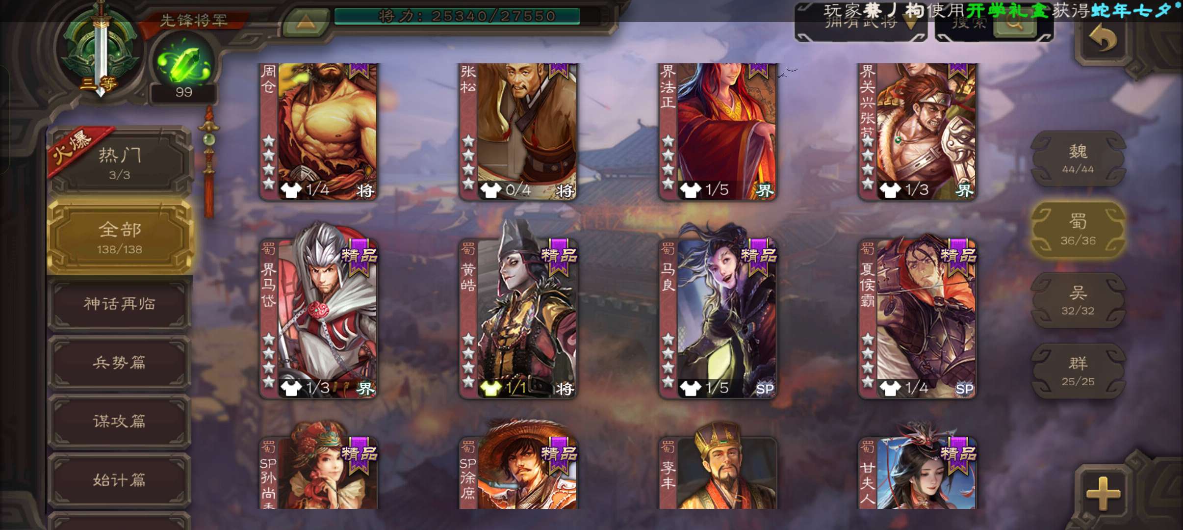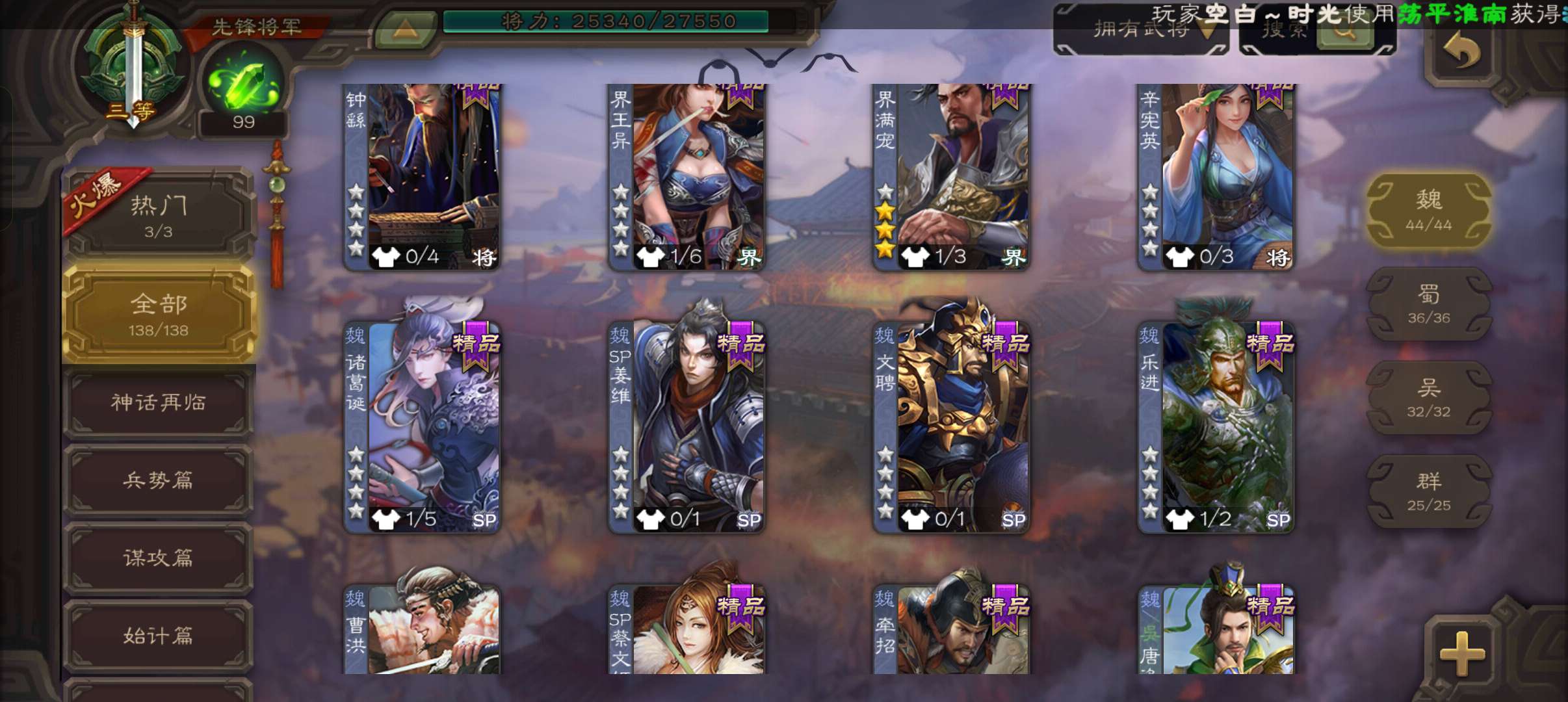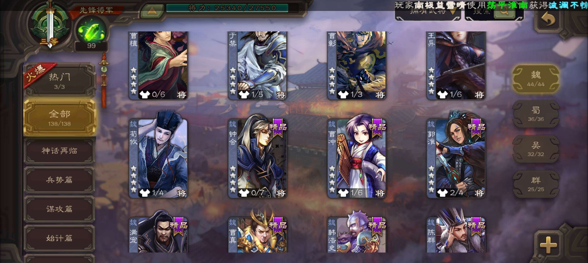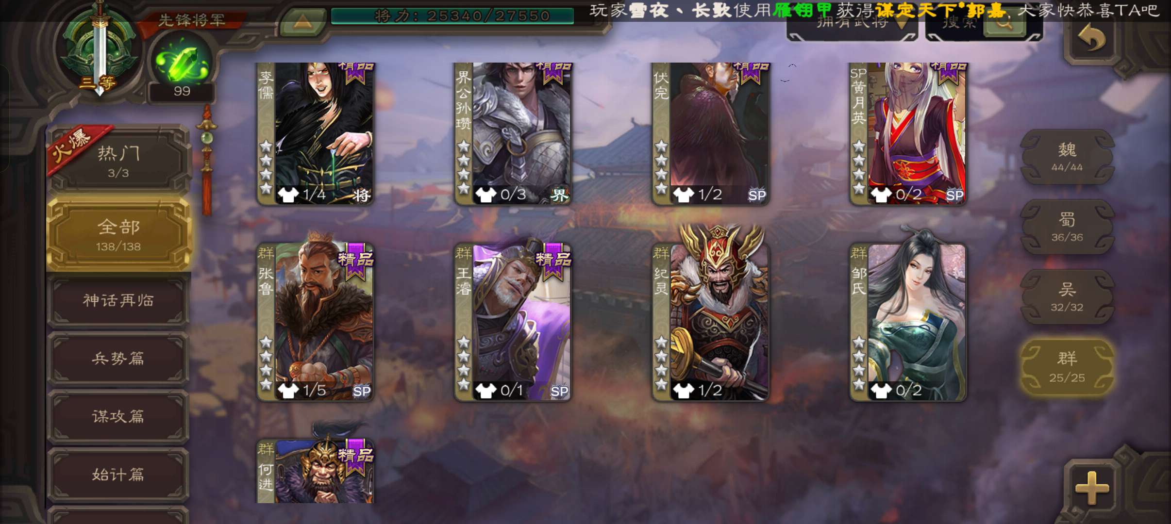 先锋将军,谋夏侯惇神吕布双史诗,神吕蒙界满宠崔琰甘夫人135将