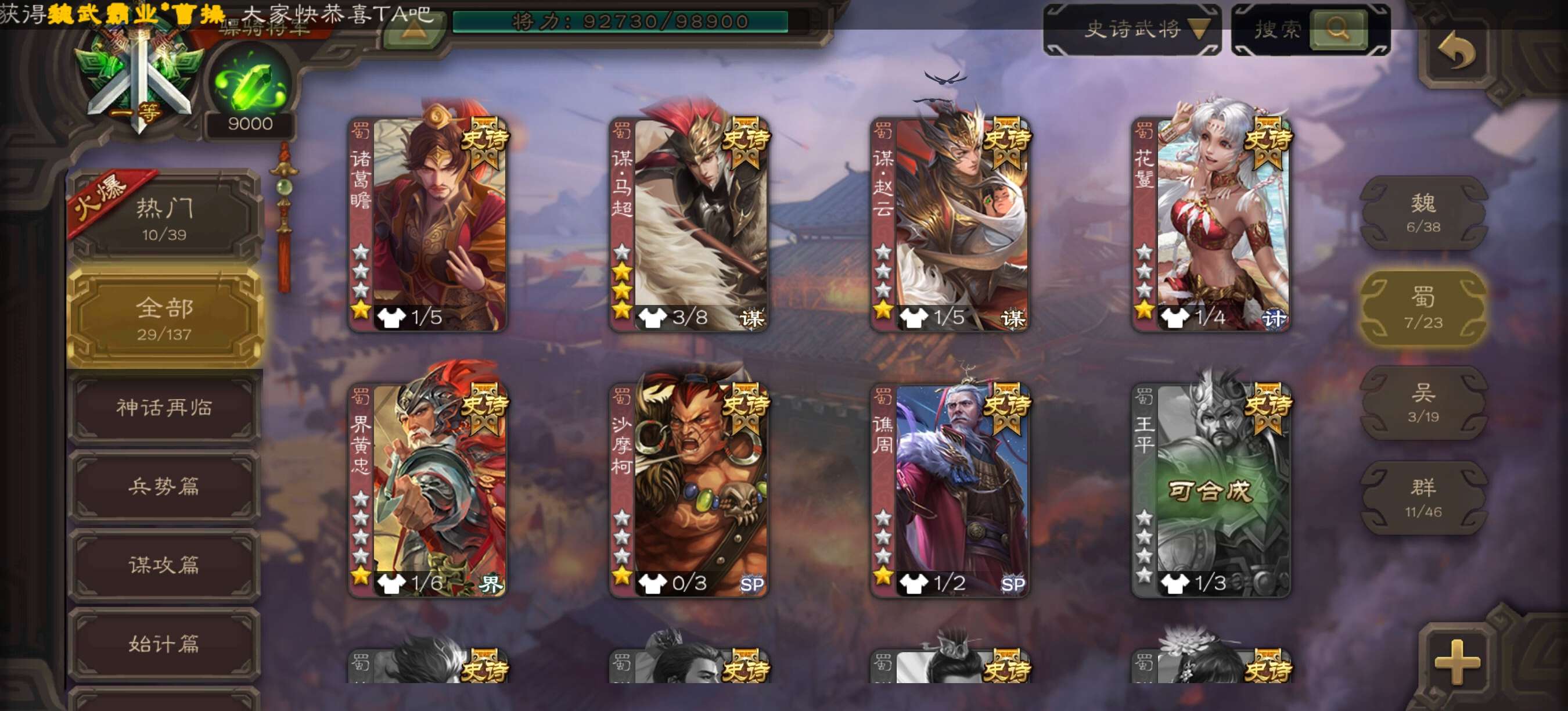 史诗武将数量: