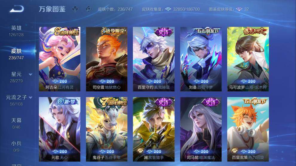 安卓Q-V7-236皮肤-1典藏皮肤-11传说-64史诗-1星传说-13按键