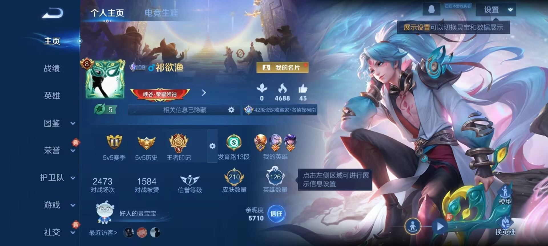 安卓QQ/至尊星耀/210皮肤/126英雄/1典藏/0珍品无双/1无双/3珍品传说/13传说/62史