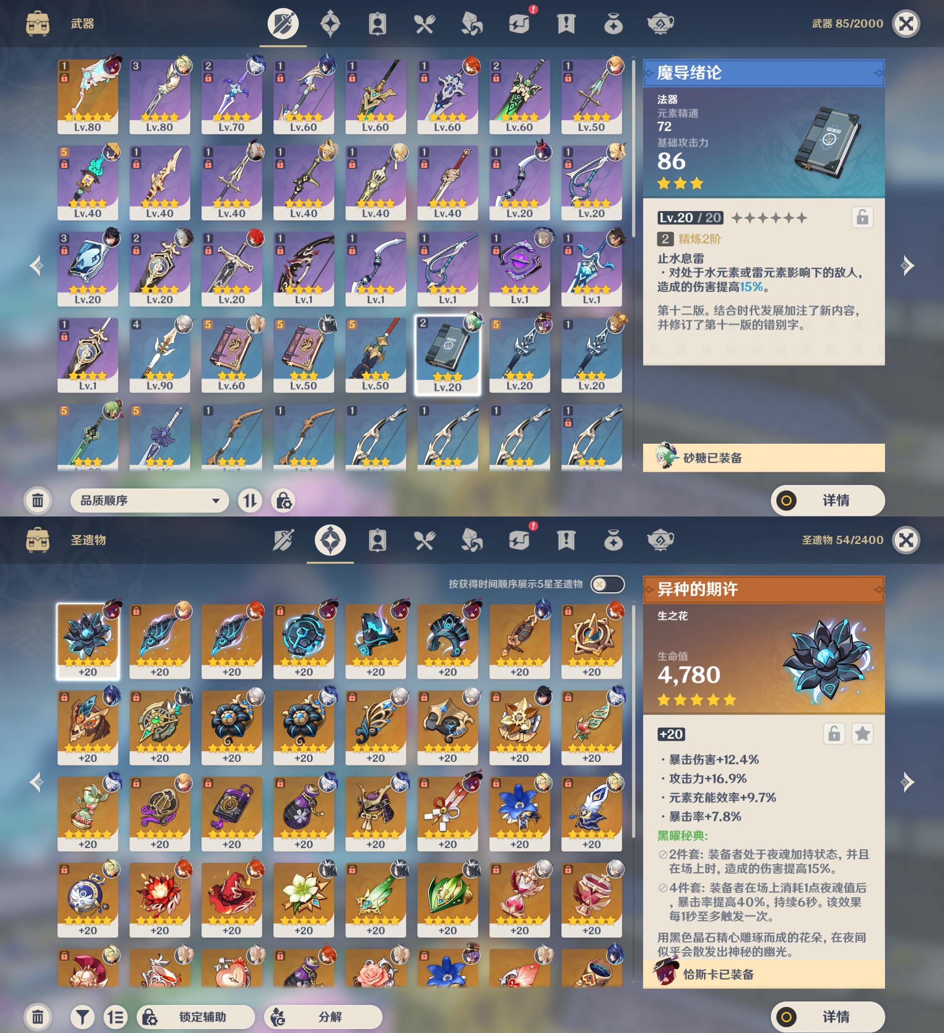 【YSF1445】55级/12黄/女主/10个五星角色/1个五星武器/阿蕾奇诺/玛薇卡/恰斯卡/芙宁娜/迪卢克/莱欧斯利/梦见月瑞希/刻晴/提纳里/1命迪希雅/天空之翼
