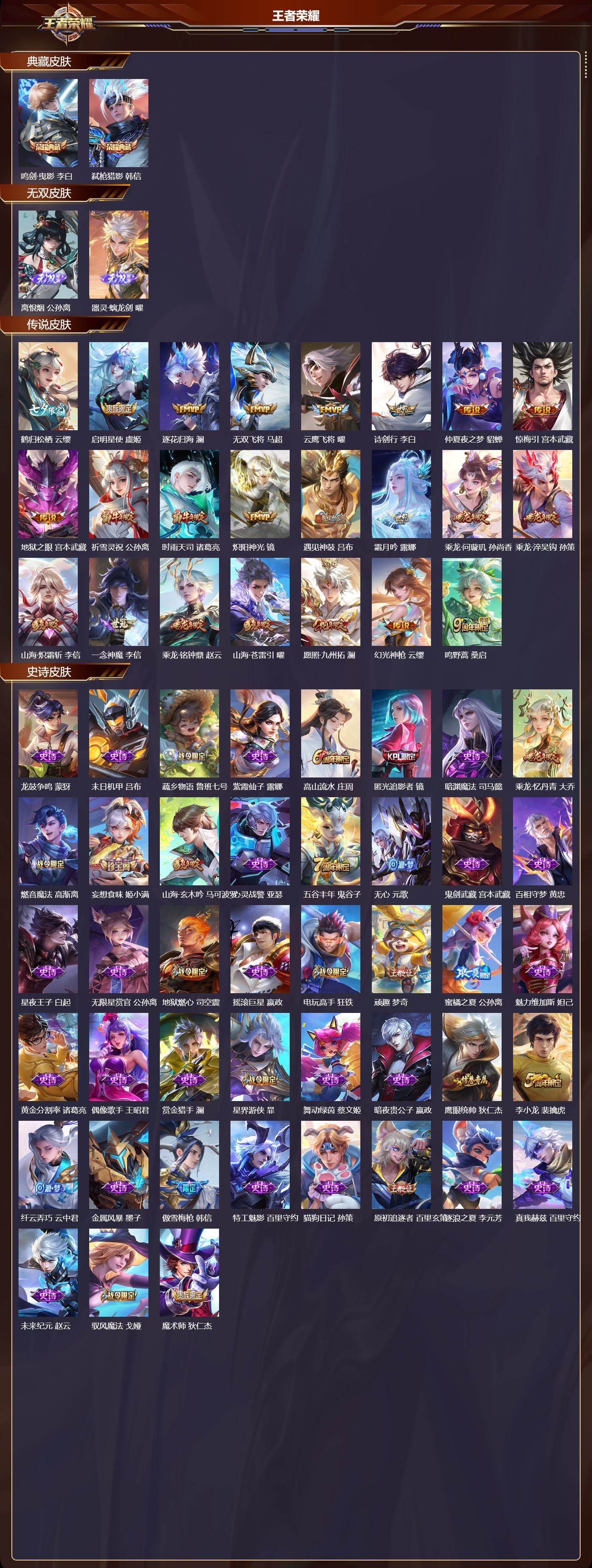 苹果QQ/至圣王者/276皮肤/127英雄/2典藏/0珍品无双/2无双/0珍品传说/23传说/83史