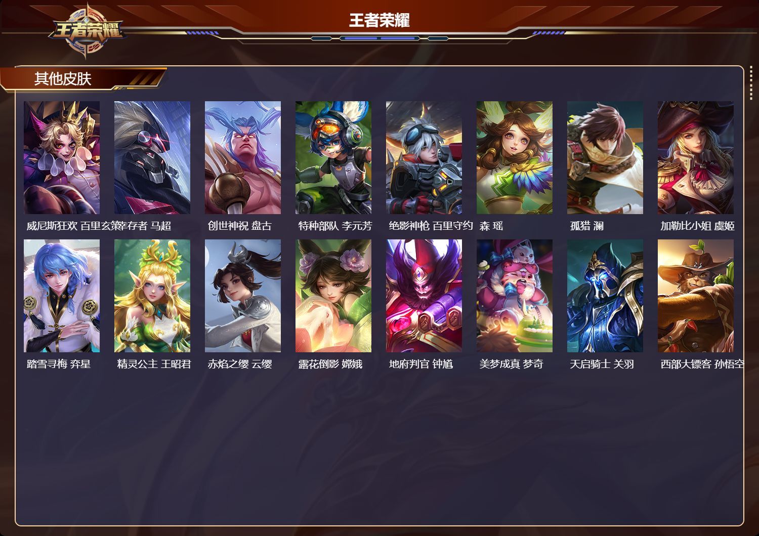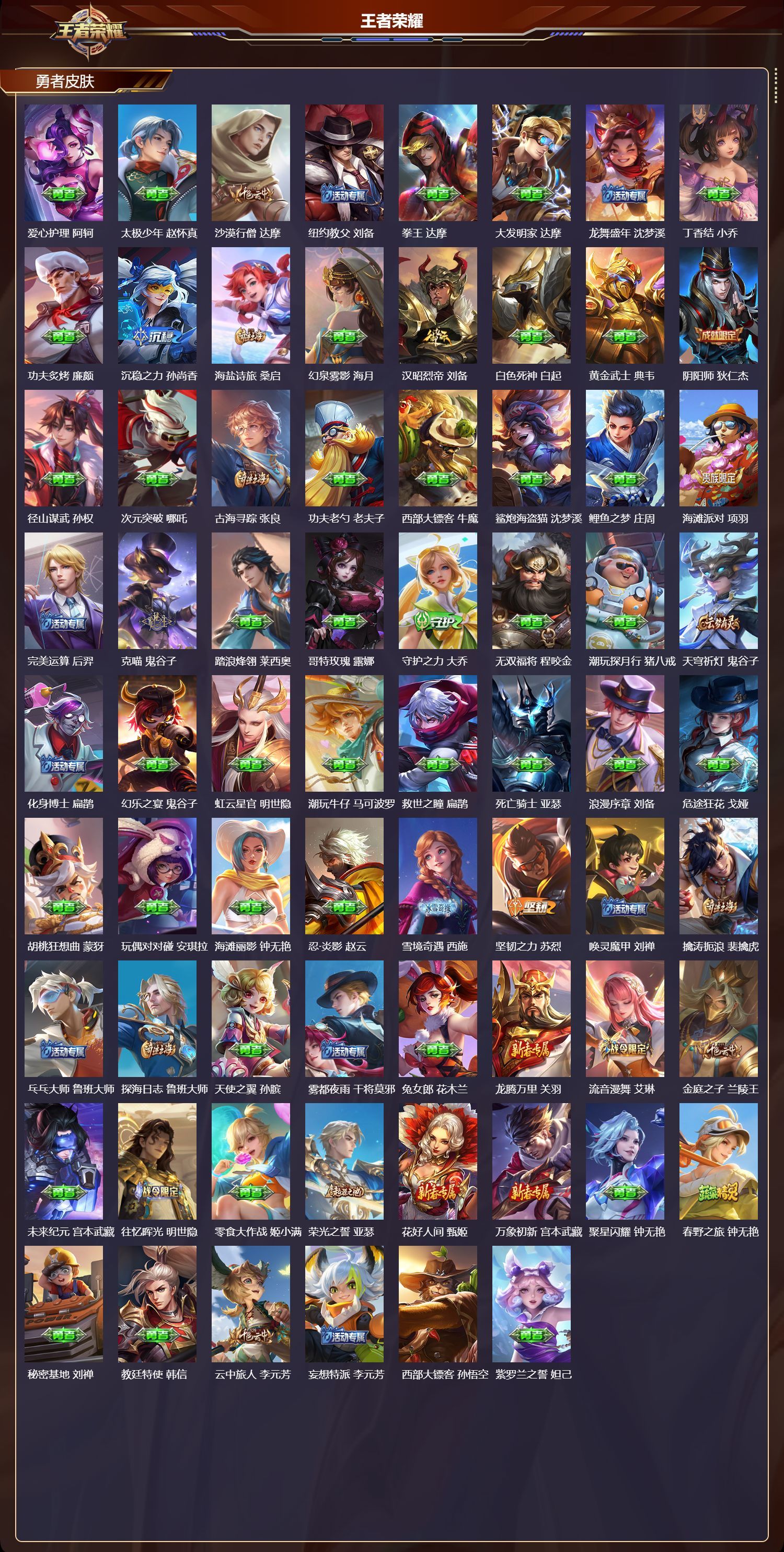 安卓QQ/荣耀王者/227皮肤/126英雄/3典藏/0珍品无双/0无双/0珍品传说/10传说/55史