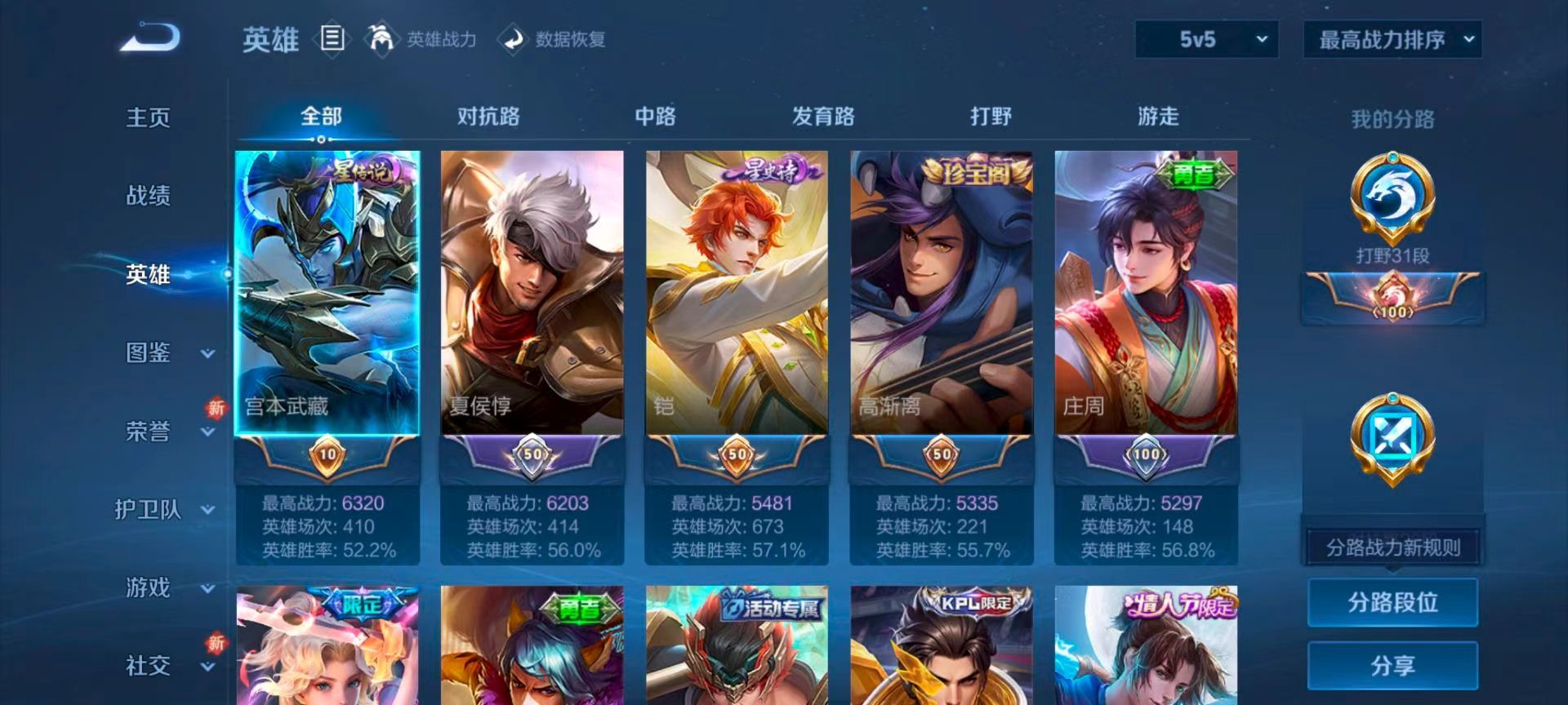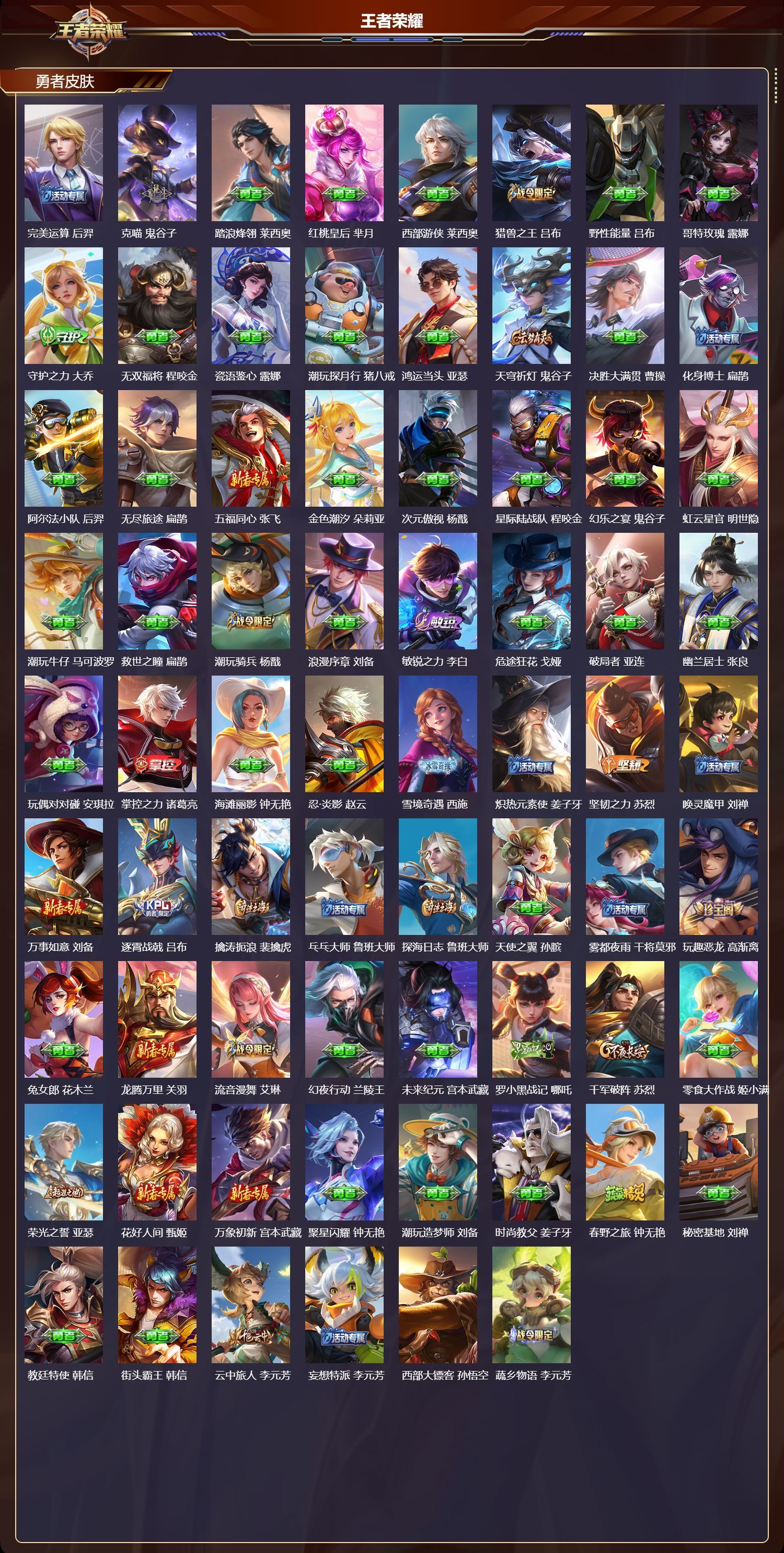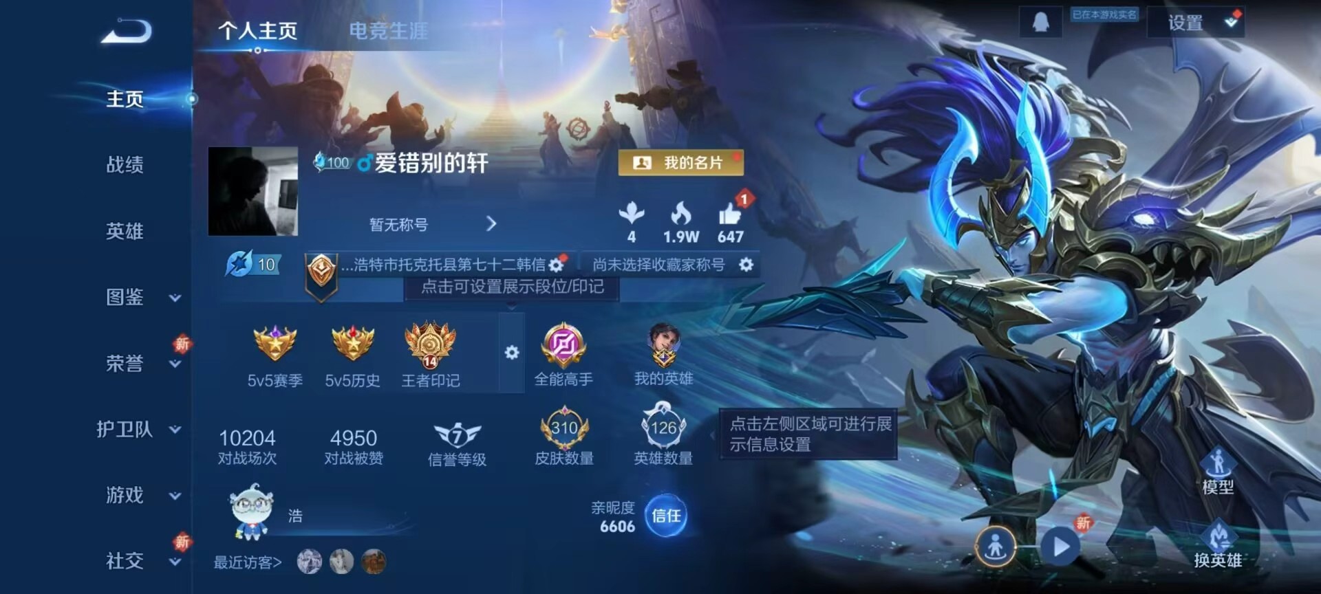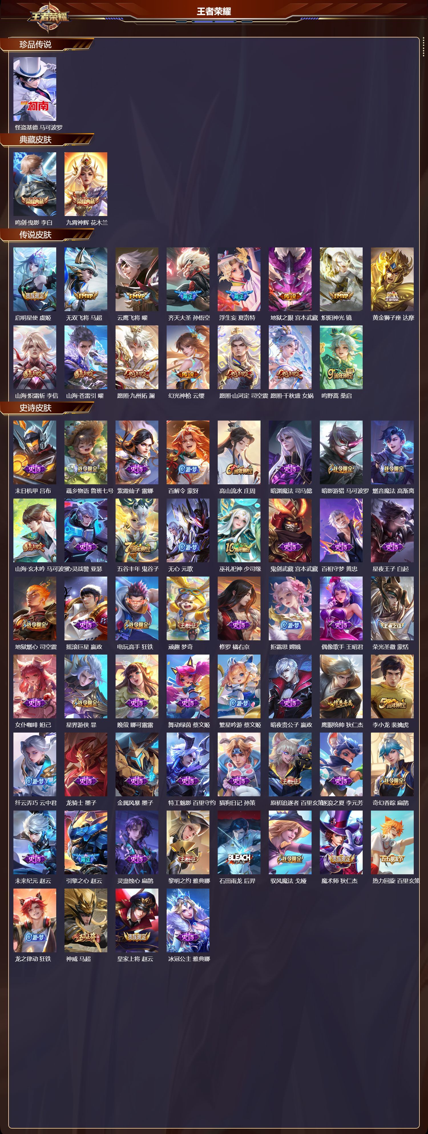 安卓QQ/无双王者/310皮肤/126英雄/2典藏/0珍品无双/0无双/1珍品传说/15传说/86史