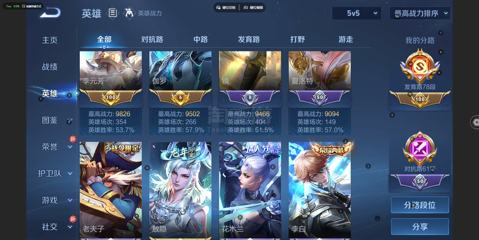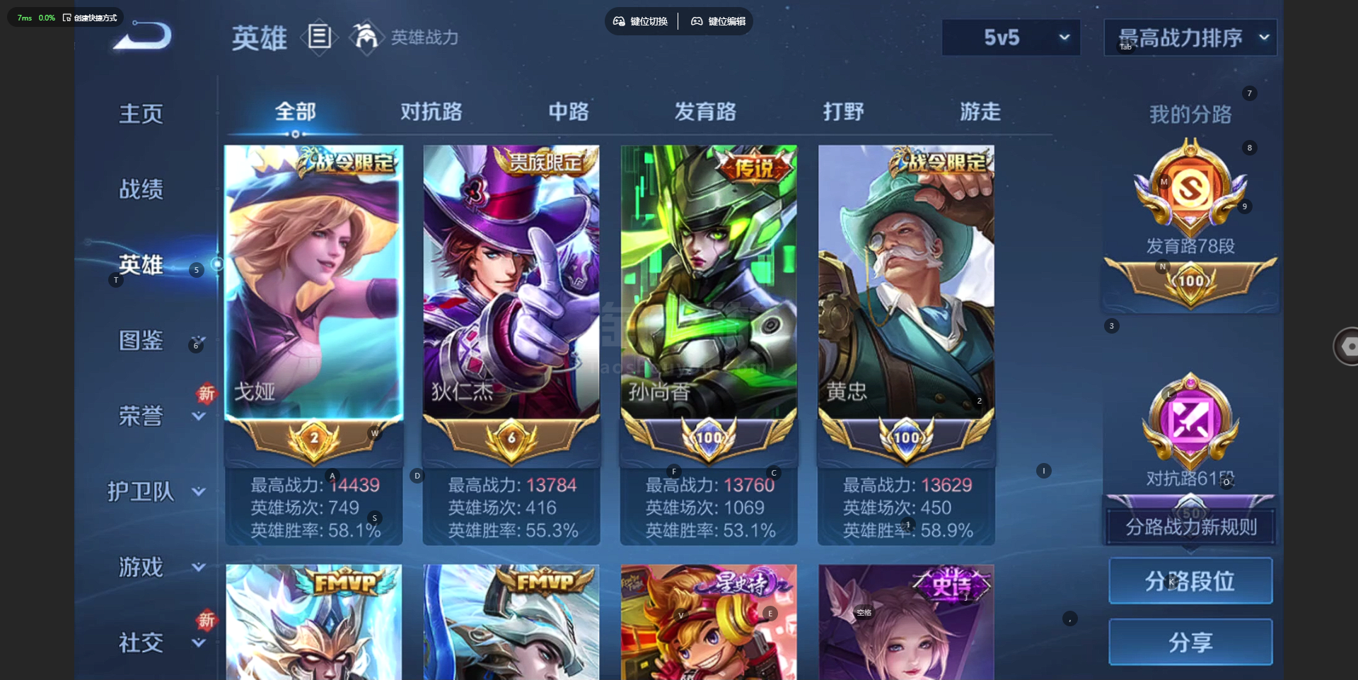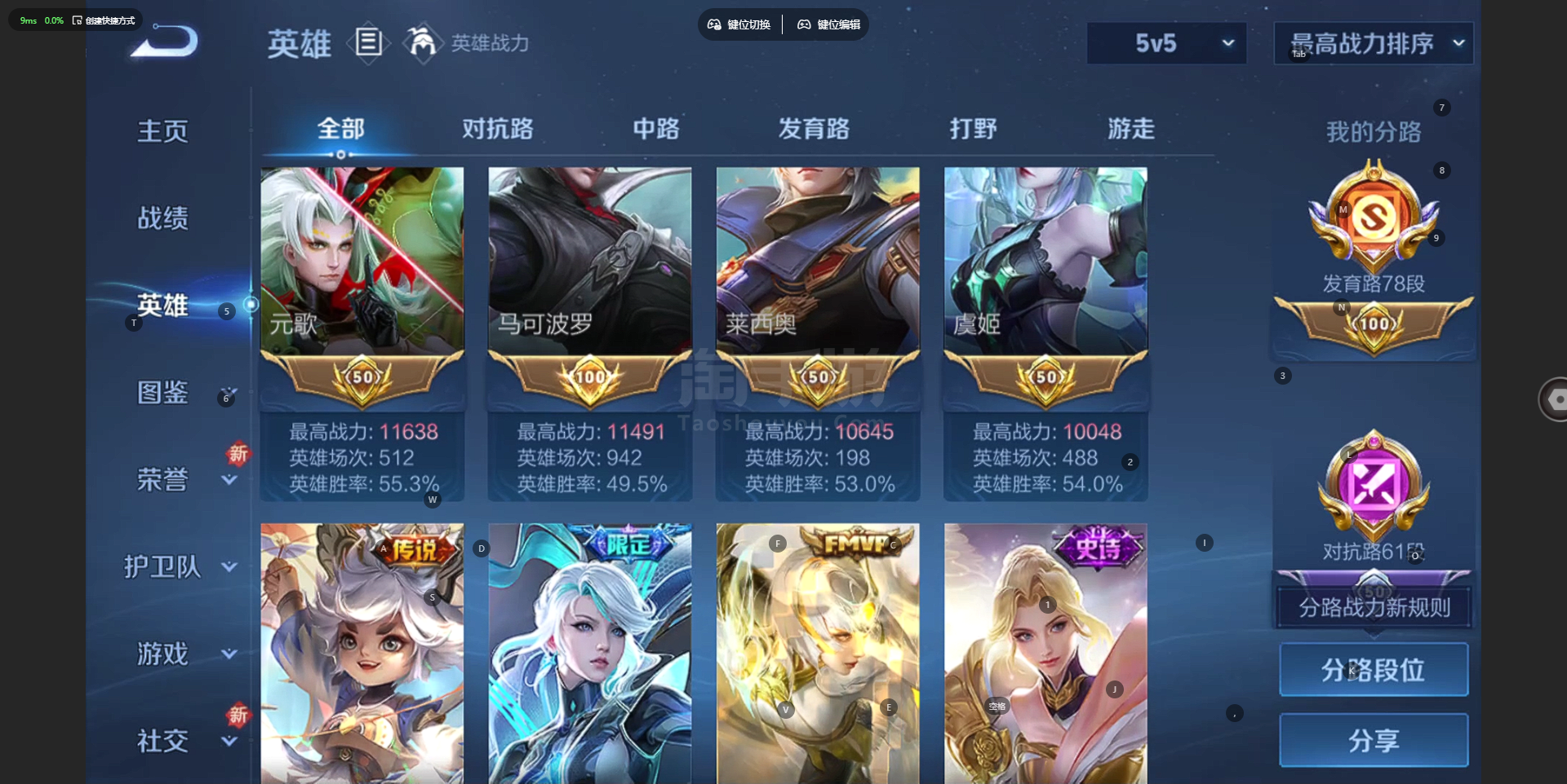 安卓q-可二次-v9-1典藏19传说2小国多万战78段发育路高战力战绩漂亮