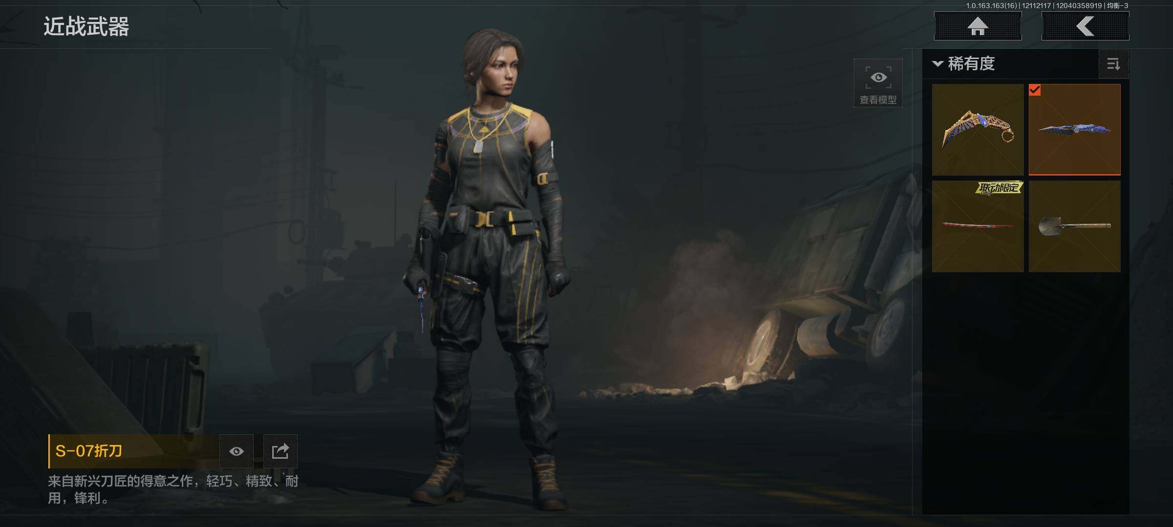 【近战武器】:S-07折刀,苍穹利爪,热能武器补牢,工兵铲