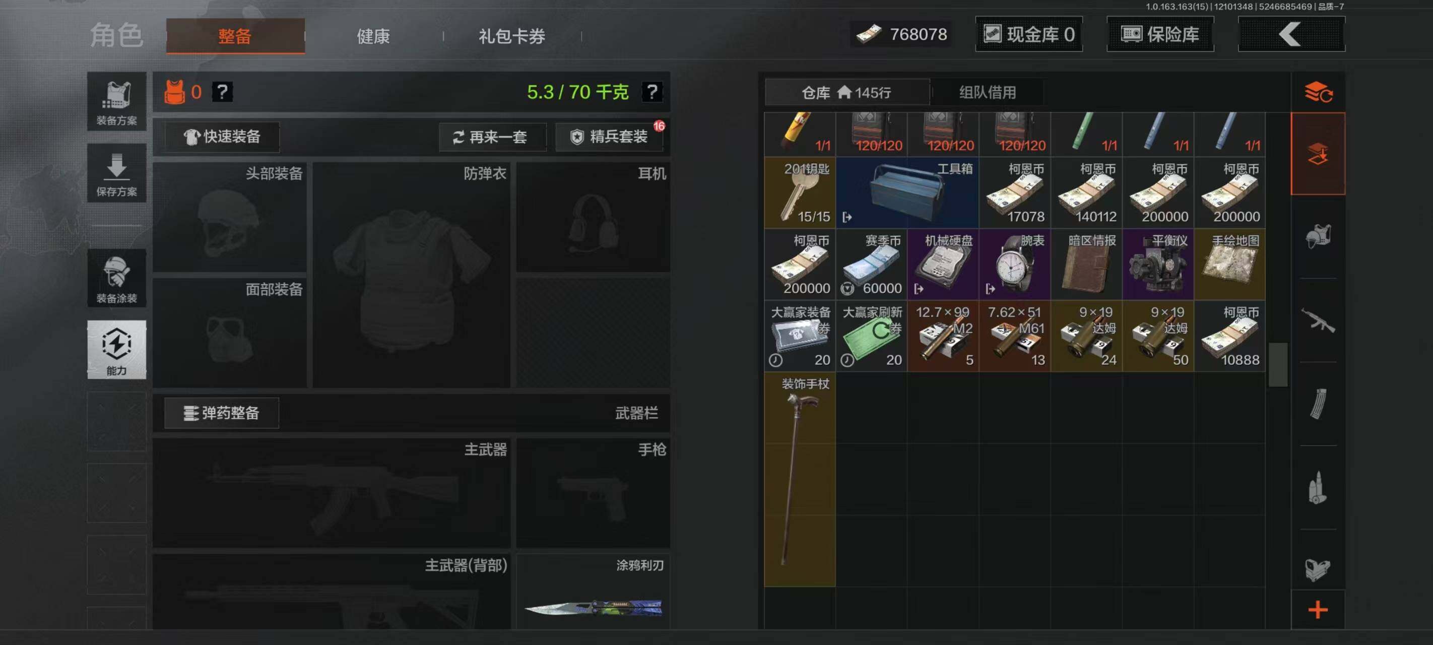 安卓Q区可二次极品号,仓库价值:4M,纯币:768078,仓库还有和多子弹,涂鸦利刃,贝利亚黄昏,开山刀,工兵铲,堕落者·H416,瓷蒺藜·T13手榴弹,【勾选了部分装备-详情看图-】平台安心购店铺/保证金商家/10分钟左右发货完成计出售账号1万+