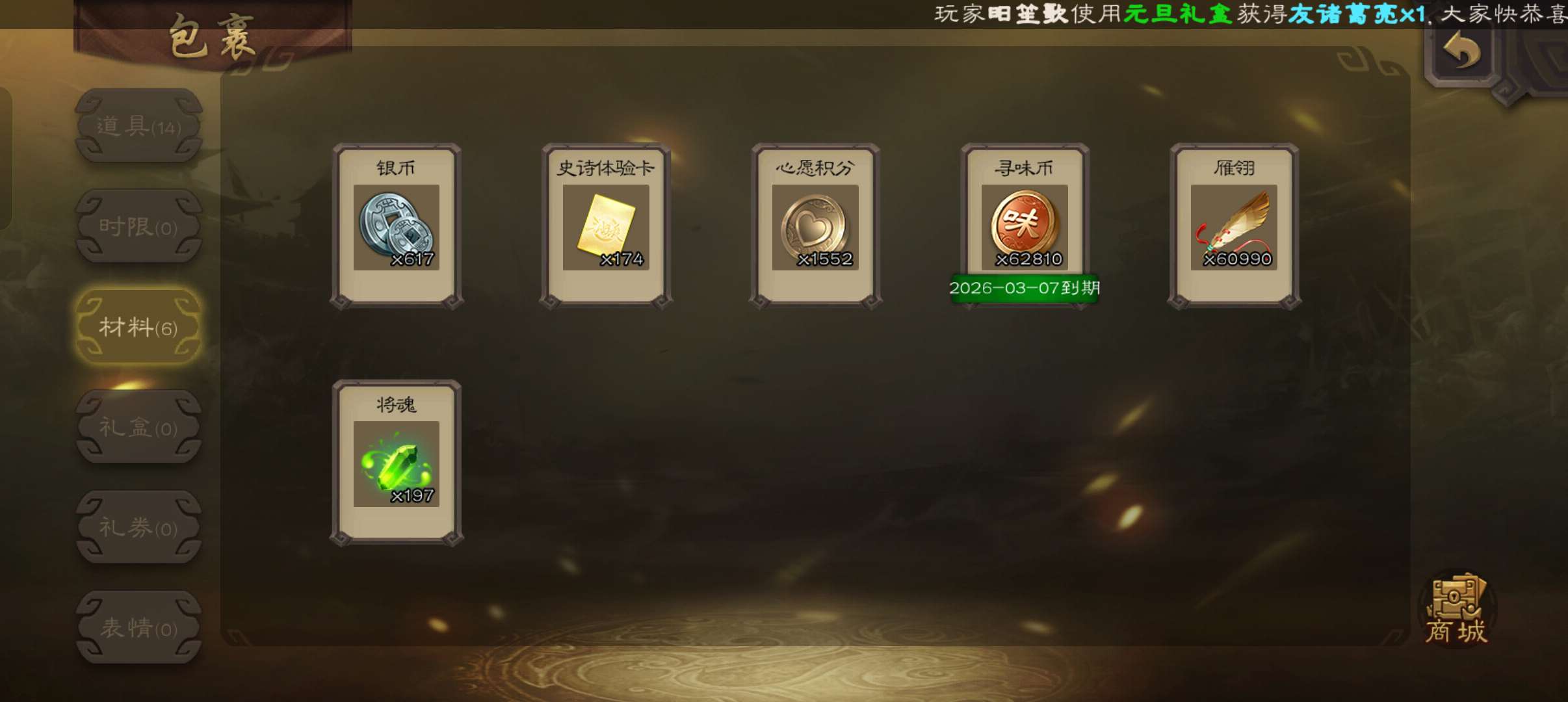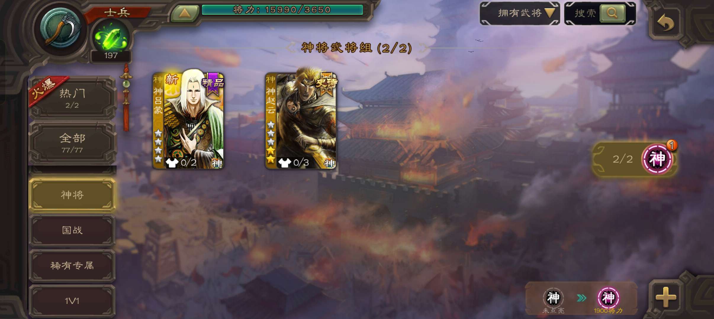 5史诗超级兵,6万羽毛5万豆,神赵云沙摩柯花鬘王粲马云騄,神吕蒙谋高顺张翼77将,90招募令