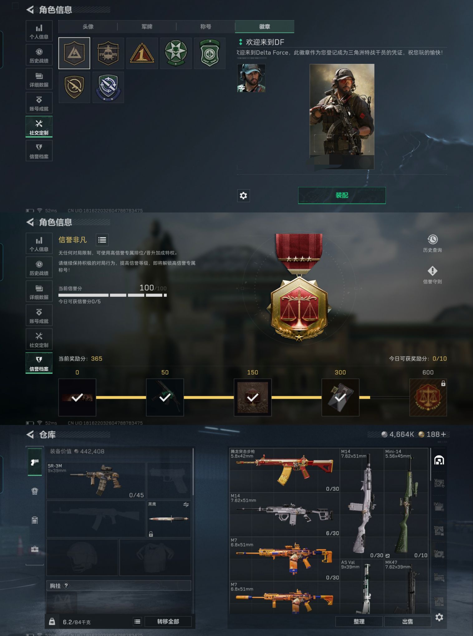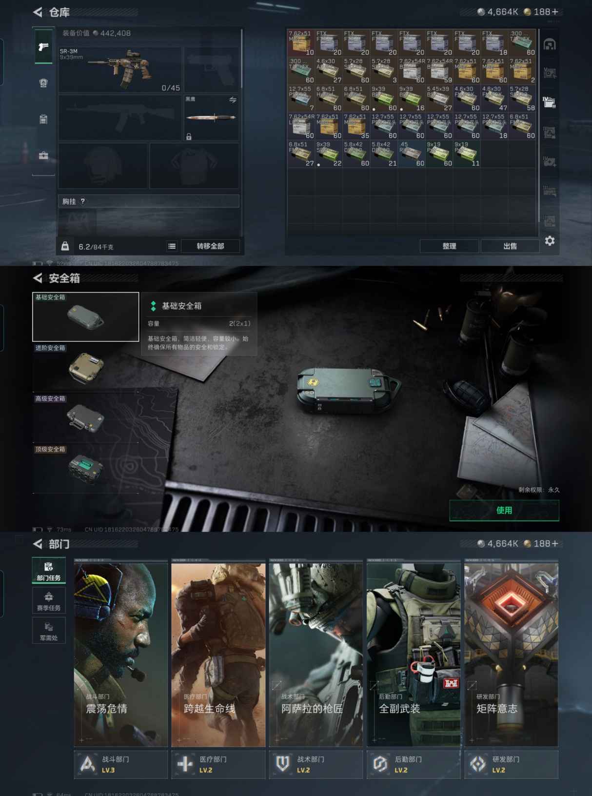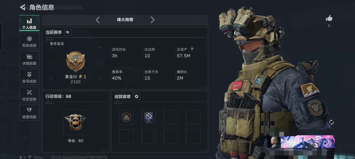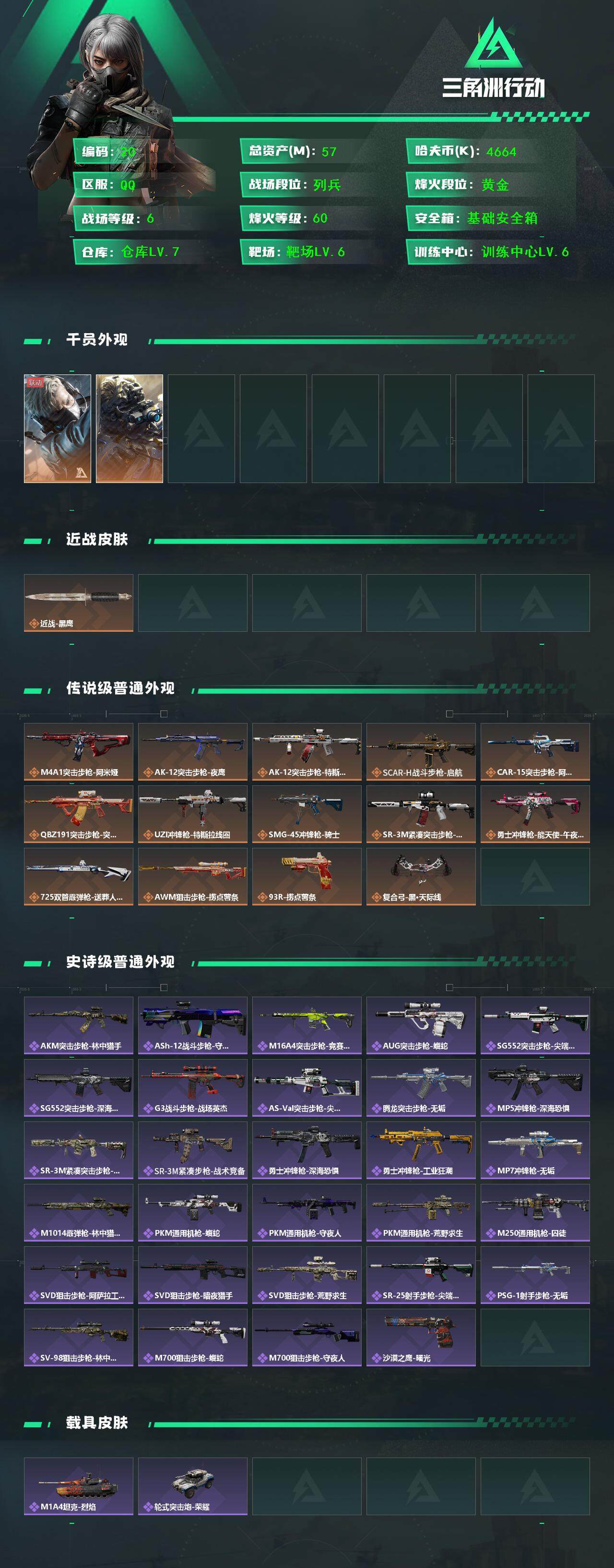 总资产(M) 57m 哈夫币 4664k 行动等级 60