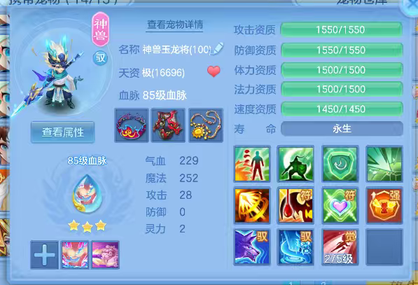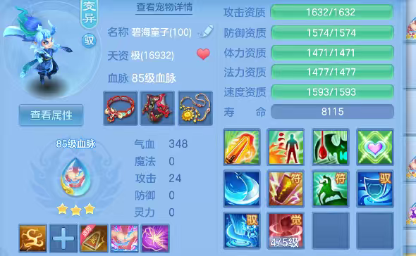 天下无双95神器法,8天赋 19个满兽魂,8套12段宝石,能玩辅,上手就可以打架,资源多多