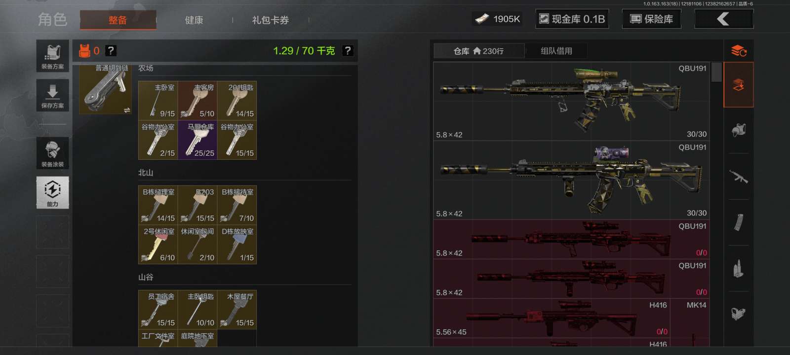 仓库价值156M,纯币110M,仓库基本有各种大金,3个理想国,有涂鸦利刃,冬日冰镐,赢家匕首