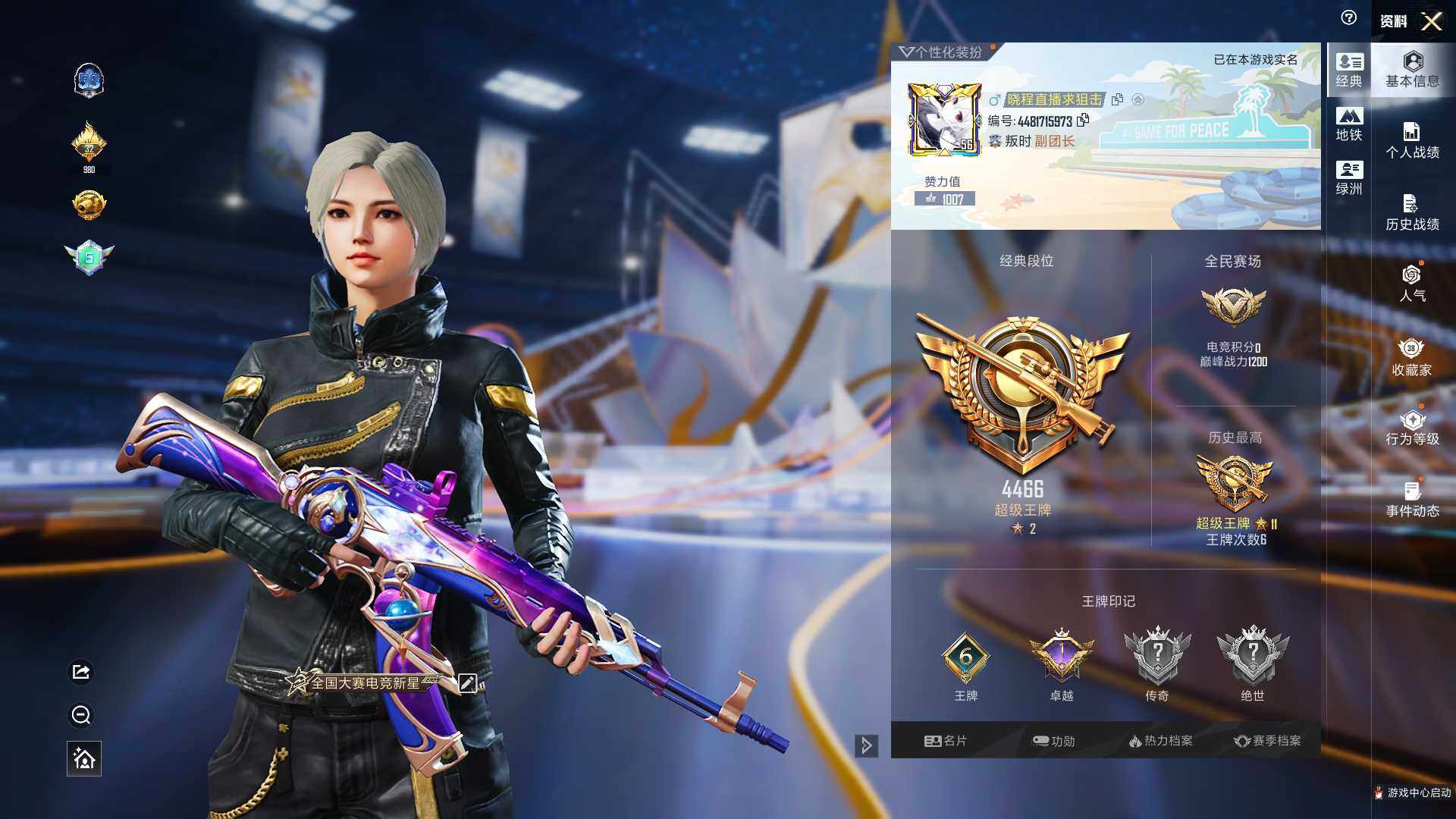 【AZH1852】安卓 手Q【6印记 满级星际浪客AKM】1粉装-2特效枪-0载具-0粉色飞行器-31664热力值-6王牌印记-70套装-109枪皮