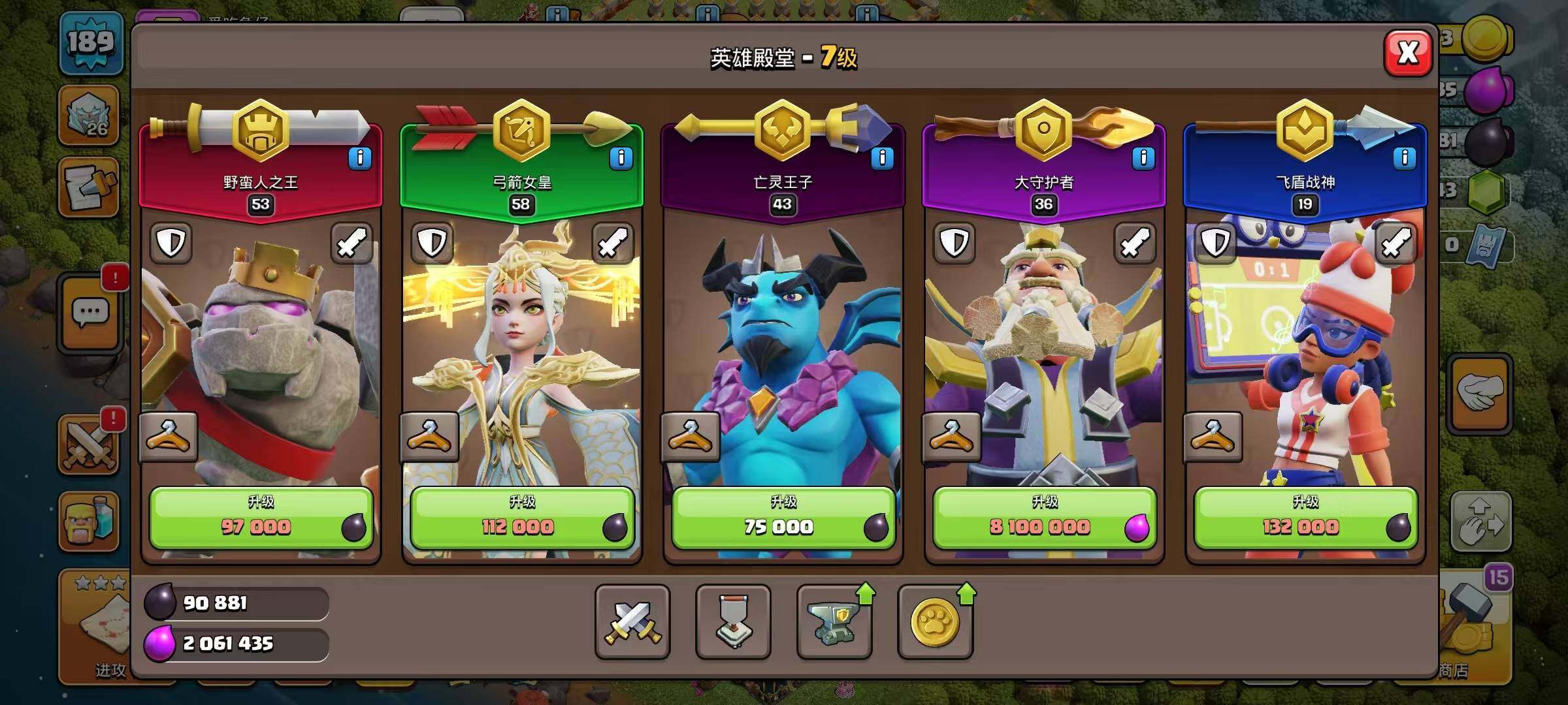 【BLN538】等级189/14王皮/8场景/5农/英雄等级53-58-38-19/部落工坊/冰天雪地/海上基地/幽静丛林/狂野丛林/像素世界/皇家竞技场/魔法世界/挥舞热情·蛮王/金蛇蛮王/爆裂小队蛮王/像素蛮王/审判者蛮王/部落运动会蛮王/戈仑蛮王/凰鸣千秋·女皇/水蛇女皇/暗黑亡灵女皇/矮人守护者/宗师守护者/热烈心跳·战神/动漫战神