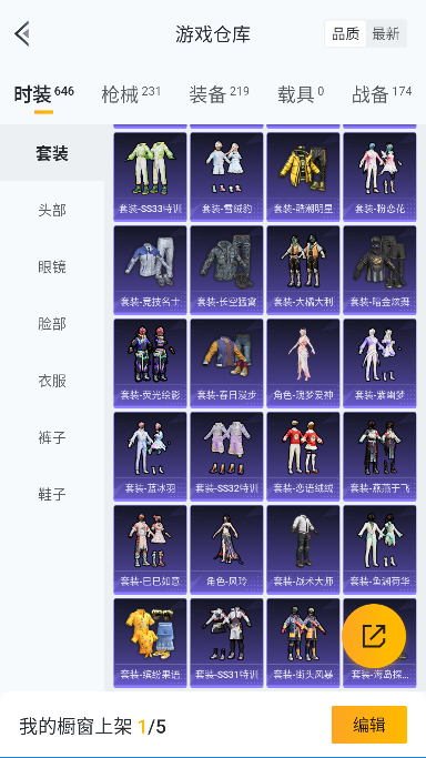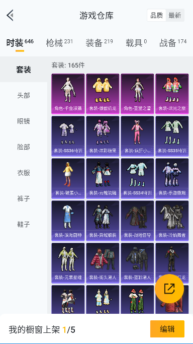 实名: 可修改 时装数: 165 枪械数: 231 战备数: 174 热门装扮