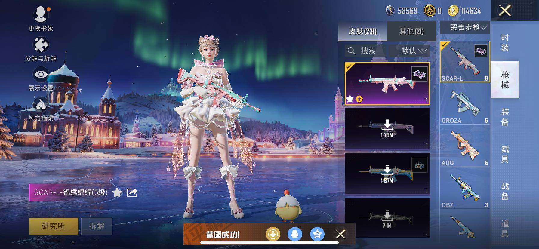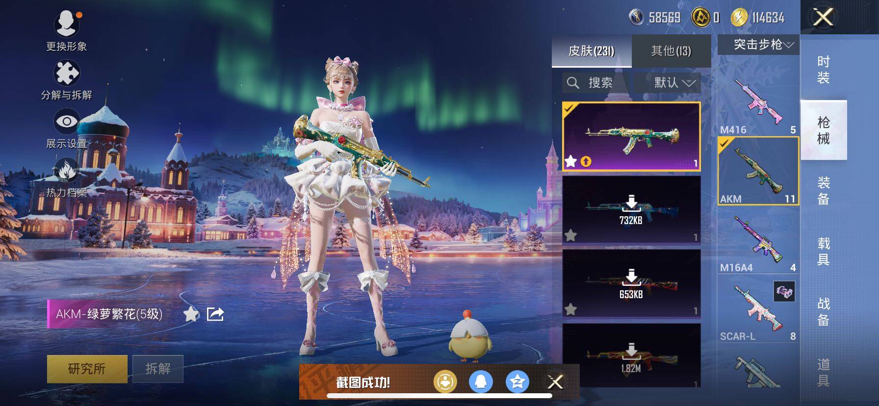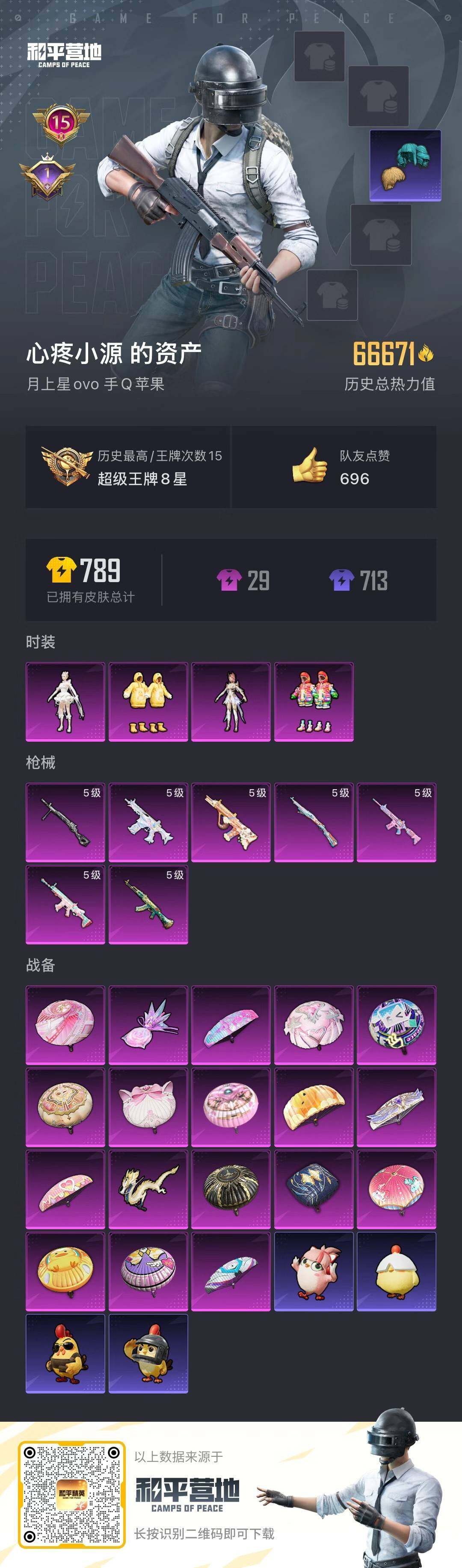 实名: 可修改 时装数: 165 枪械数: 231 战备数: 174 热门装扮: 呆萌铁蟹,深海小丑鱼,炫光之旅,傲傲奶龙,圣堂之誓,千金淑猫 稀有枪皮: AKM绿萝繁花,SCAR-L-锦绣绵绵,M416电玩时刻,Kar98K-巳巳如意,AUG-暖羊咩咩,蜜獾-荧海星豚,DP-28-豹影疾电