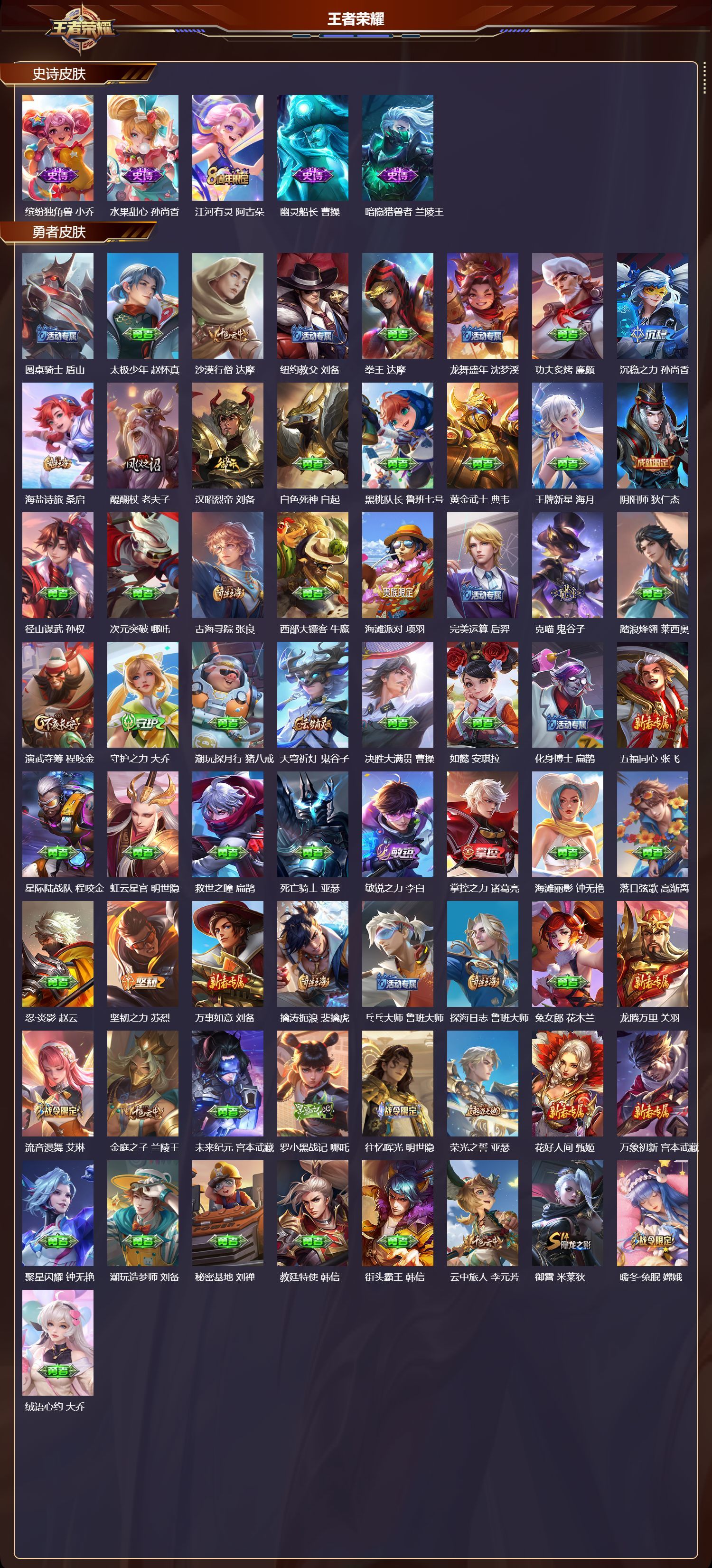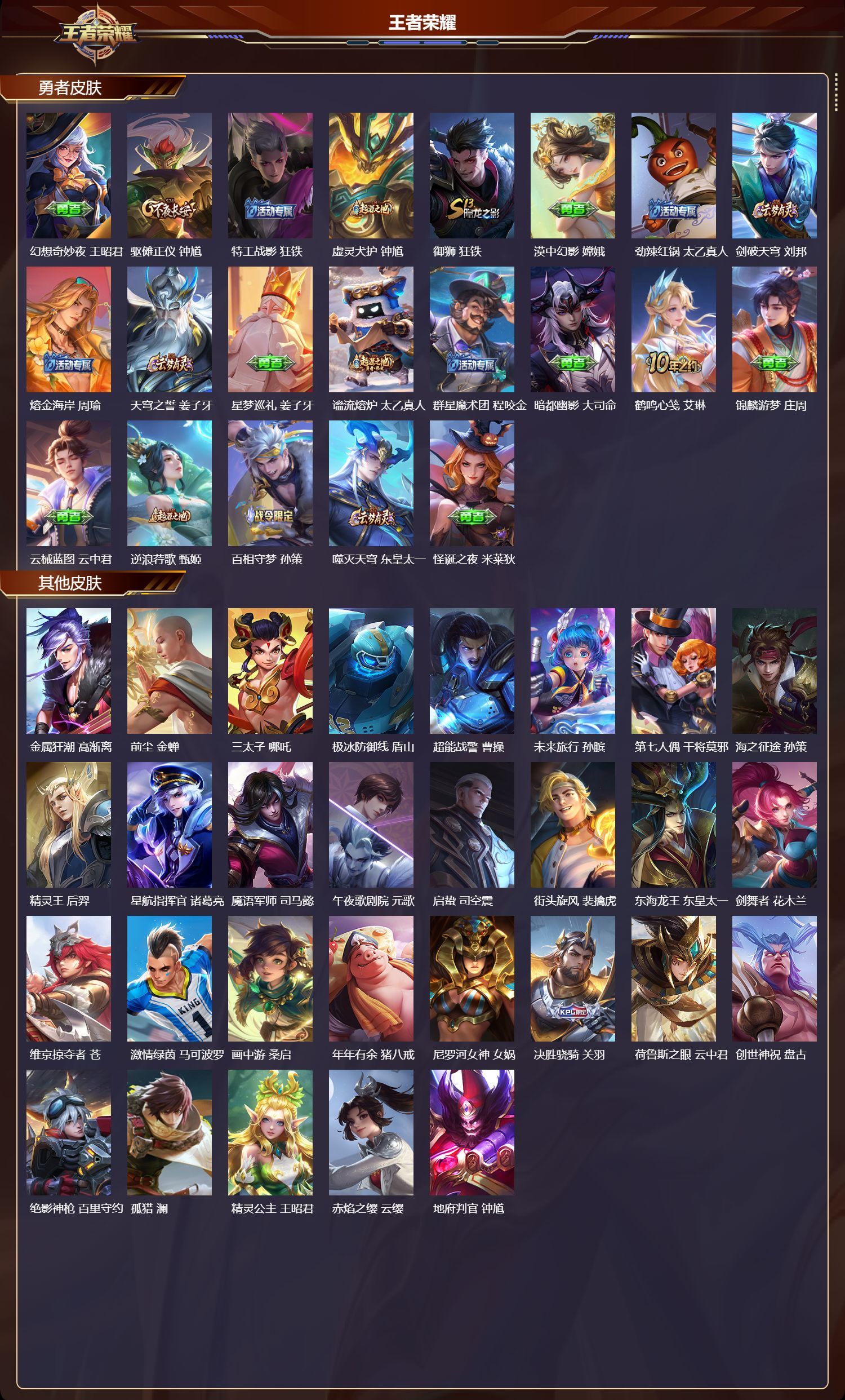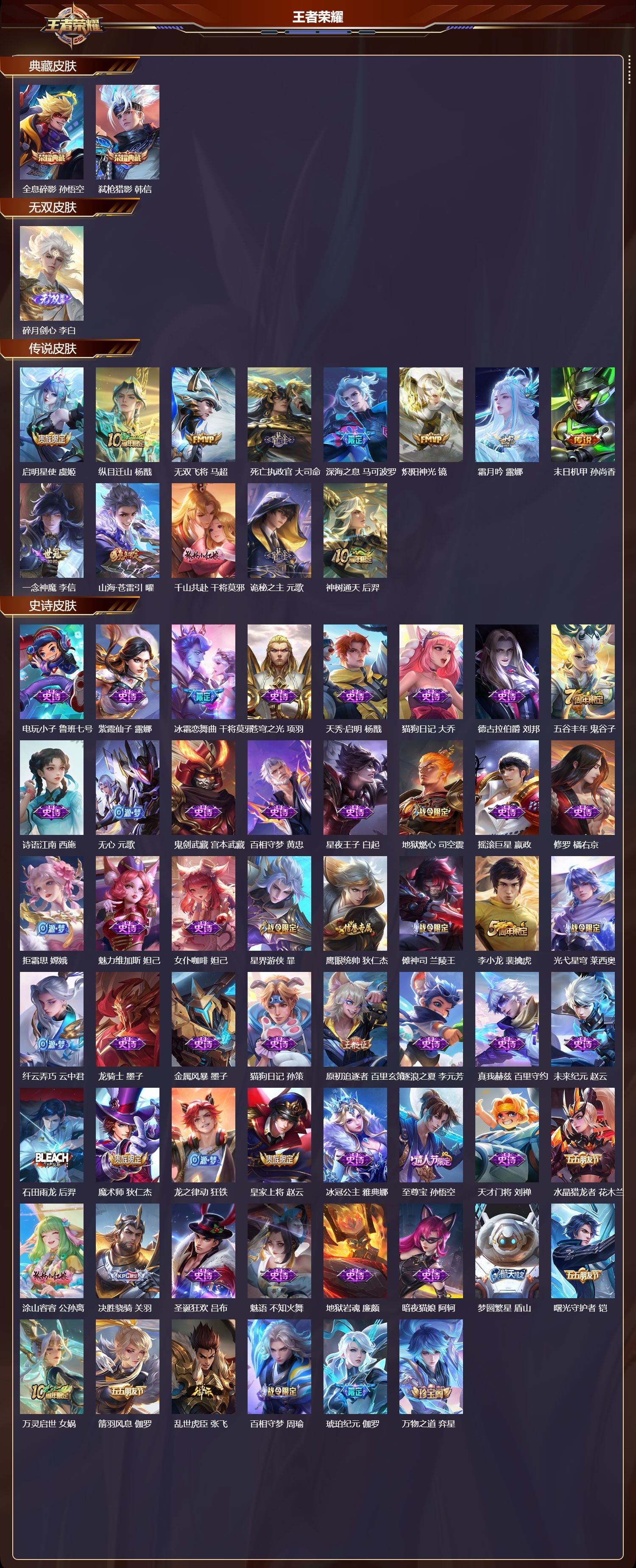 苹果QQ/荣耀王者/191皮肤/126英雄/2典藏/0珍品无双/1无双/0珍品传说/13传说/59史