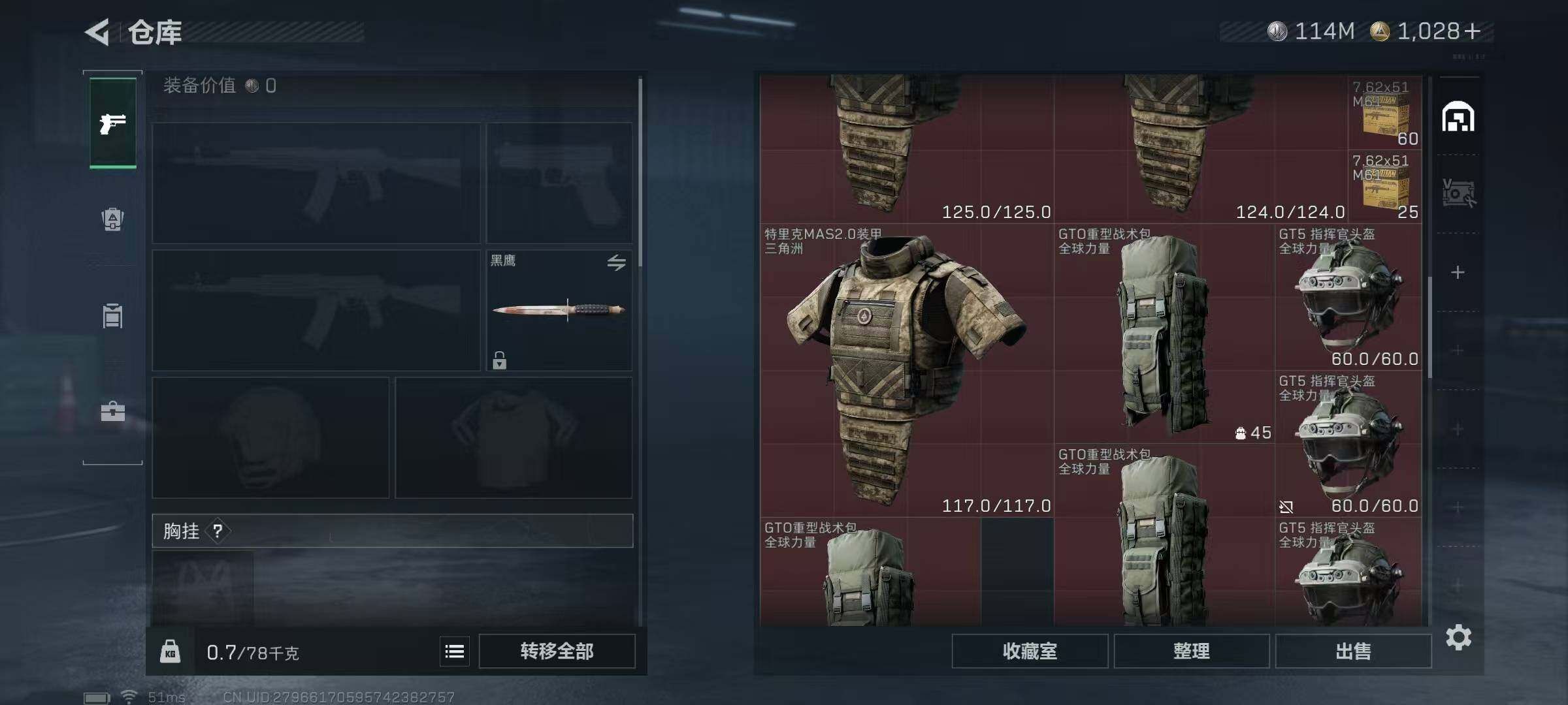 60级/总资205M/流资175M/红狼<电锯惊魂>骇爪<维什戴尔>8级仓库7级体力4级负重+113发AW子弹+85发其他红弹