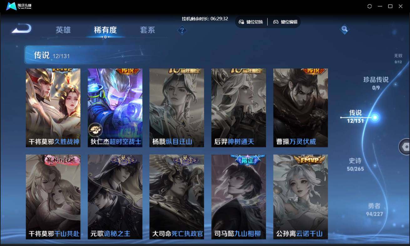 安卓QQ-1典藏-12传说-184皮肤-124英雄-最强王者