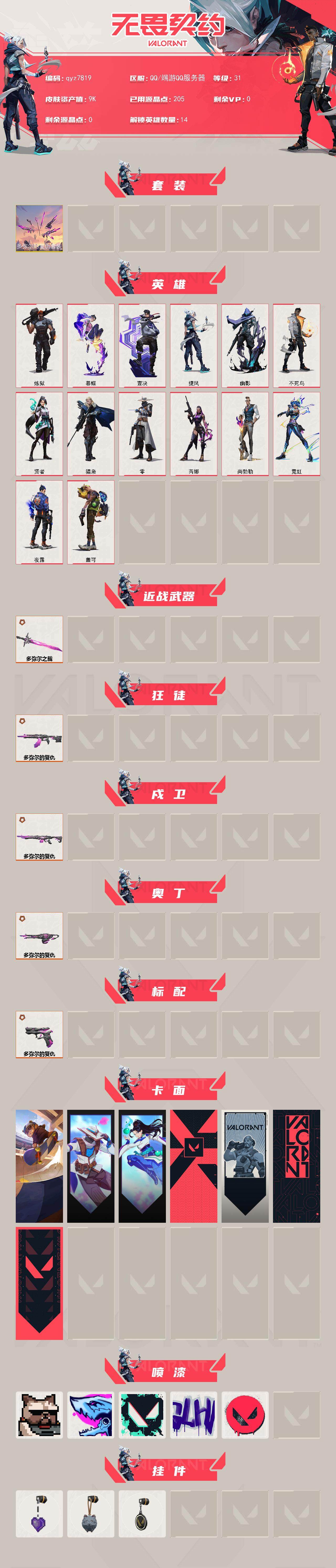 【qyz7819】多弥尔的复仇套+2228点卷 qyz7819 套装: 多弥尔的复仇 近战武器皮肤: 多弥尔之裁 步枪皮肤: 多弥尔的复仇 狂徒,多弥尔的复仇 戍卫 佩枪皮肤: 多弥尔的复仇 标配 机枪皮肤: 多弥尔的复仇 奥丁 亮点: 【qyz7819】【套装】:多弥尔的复仇套装【英雄】:炼狱,暮蝶,壹决,捷风,幽影,不死鸟,贤者,猎枭,零,芮娜,尚勃勒,霓虹,夜露,盖可【近战 武器】:近战武器-多弥尔之裁【狂徒】:狂徒-多弥尔的复仇【戍卫】:戍卫-多弥尔的复仇【奥丁】:奥丁-多弥尔的复仇【标