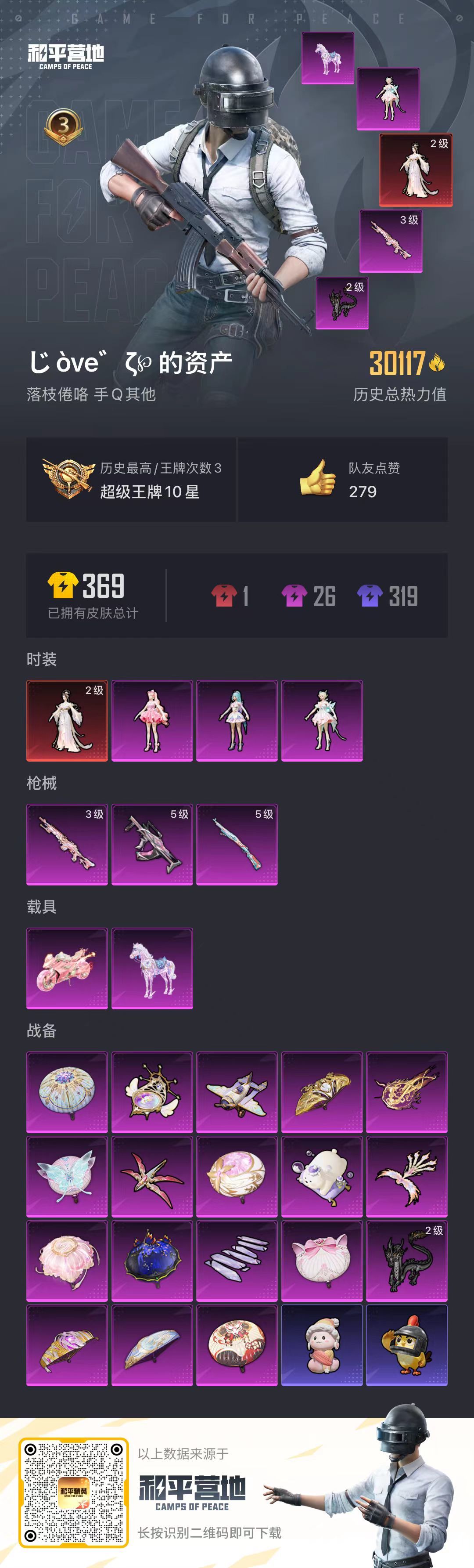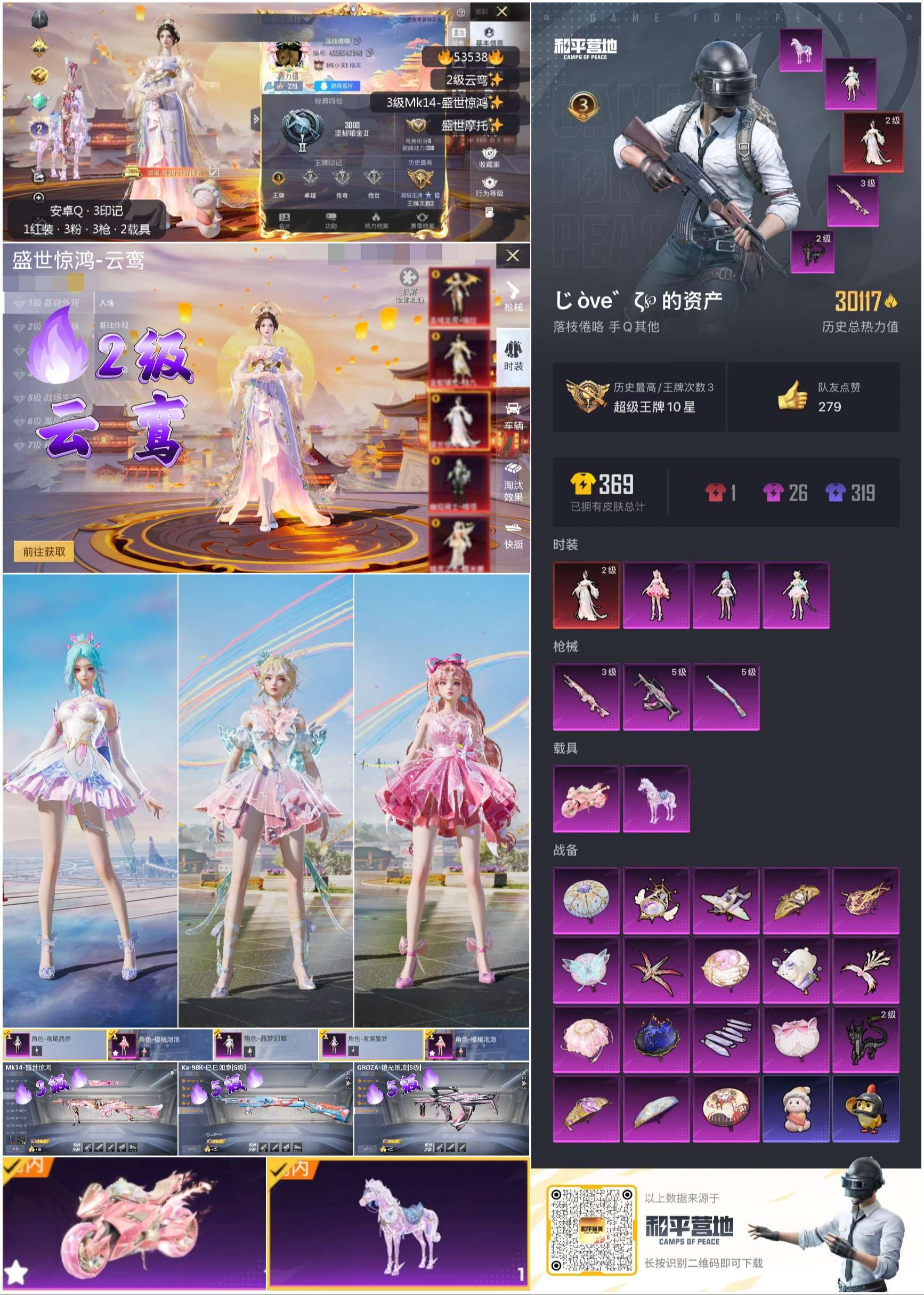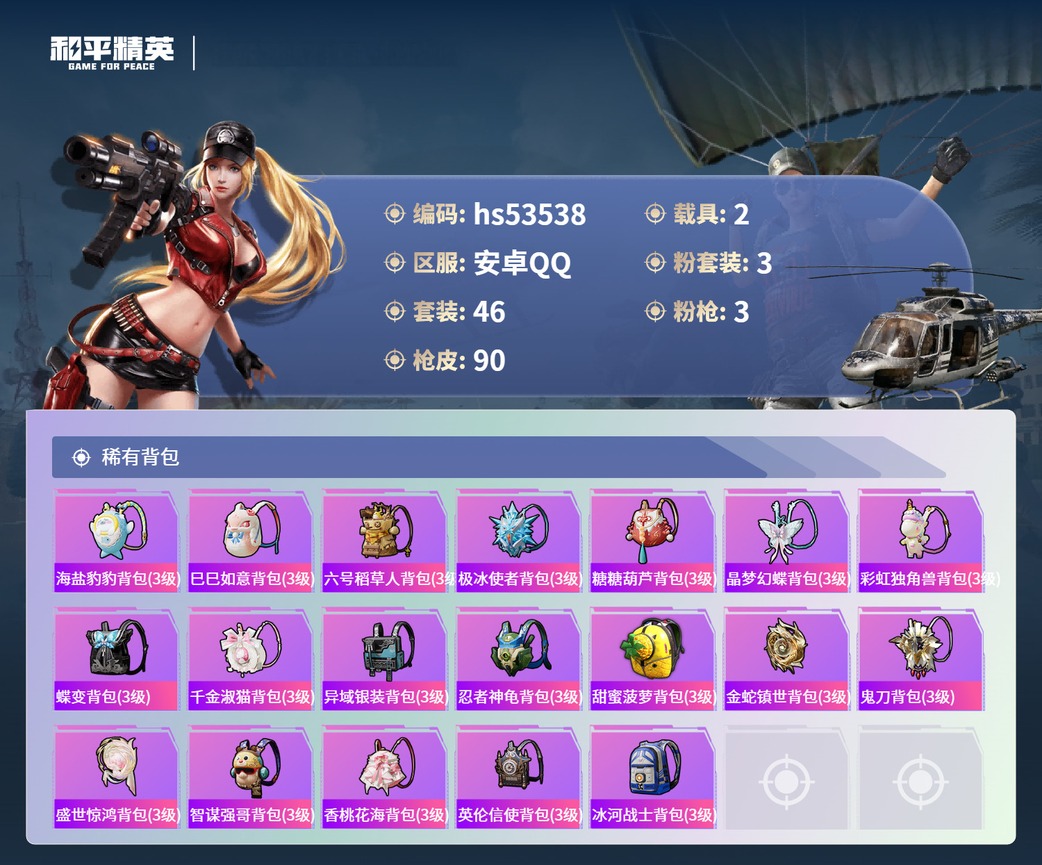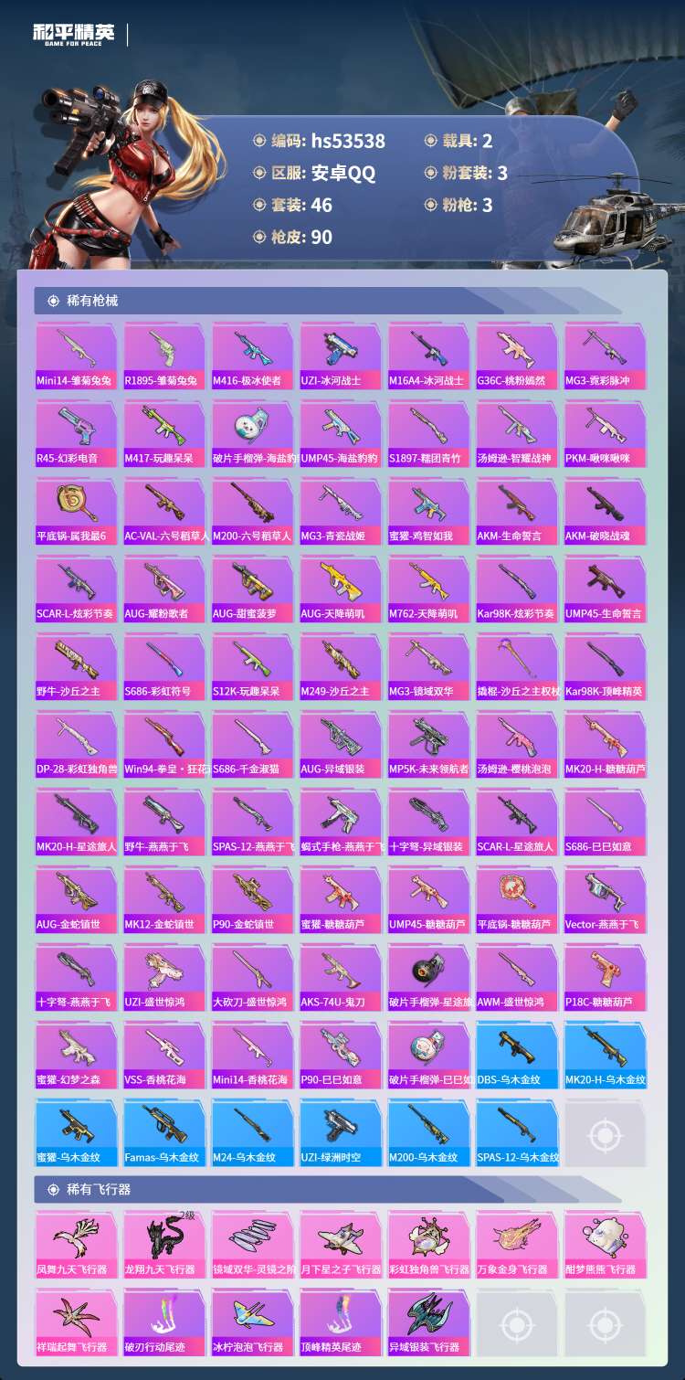 hs53538 安卓手Q-3王牌印记-1红装-3粉装-3特效枪-2载具-30117热力值-46套装-