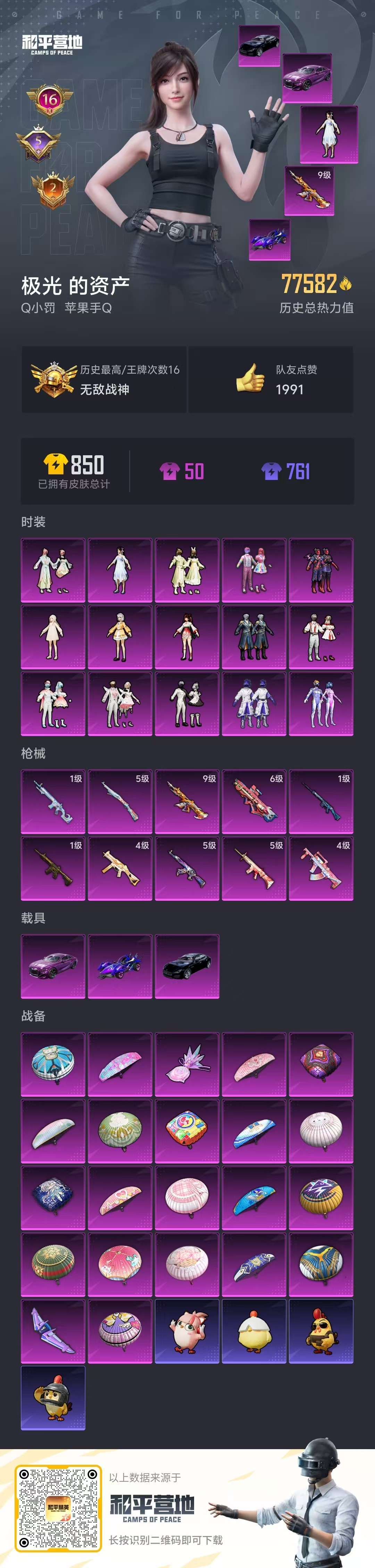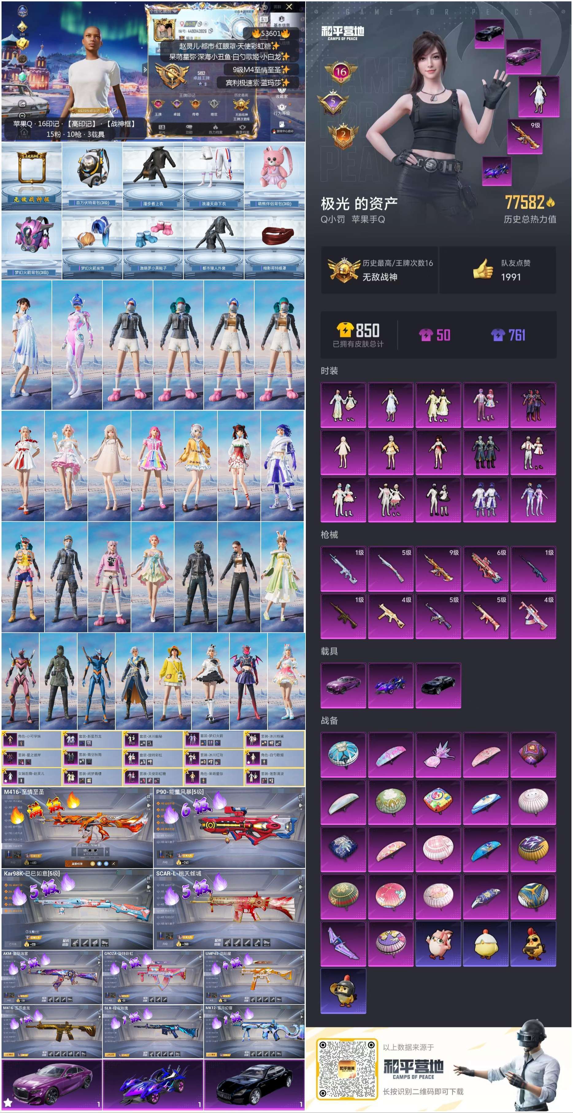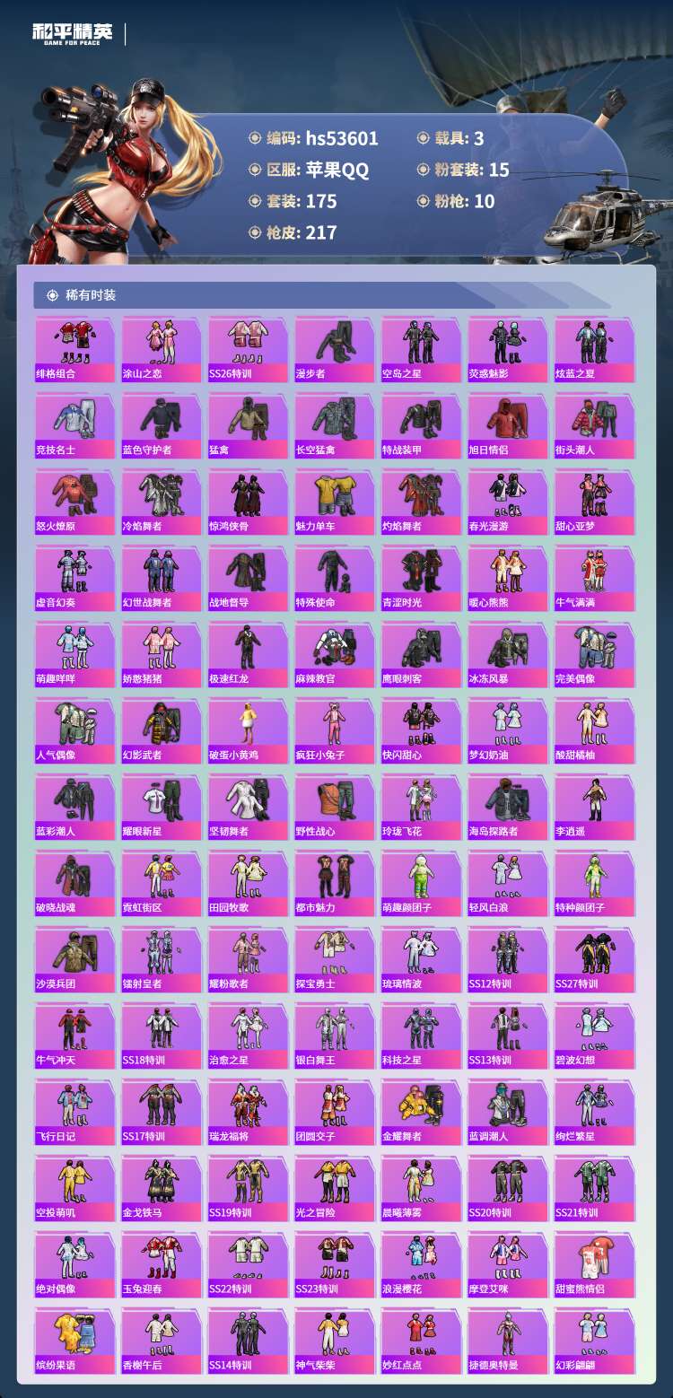 hs53601 苹果手Q-16王牌印记-有战神框-15粉装-10特效枪-3载具-77582热力值-1