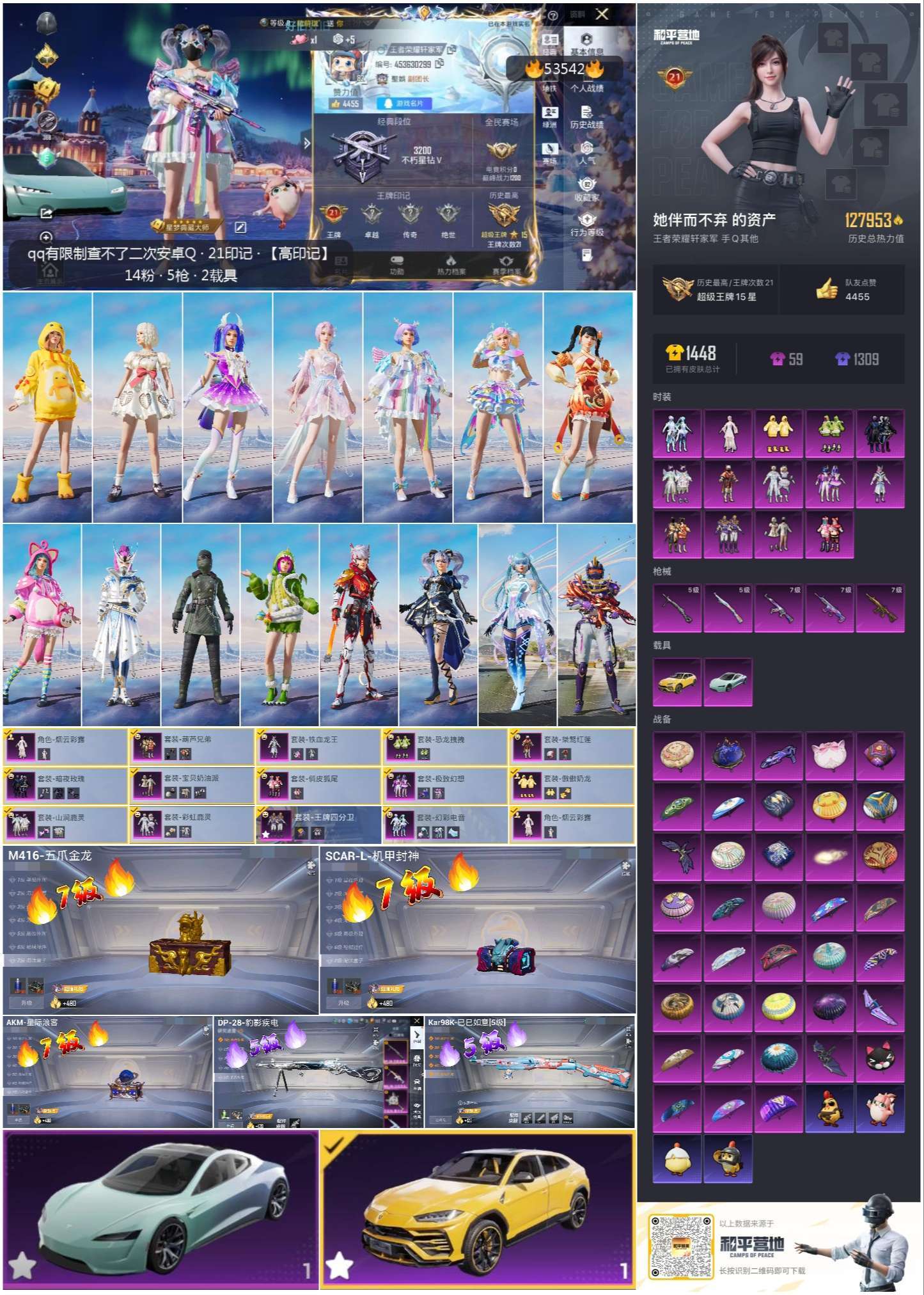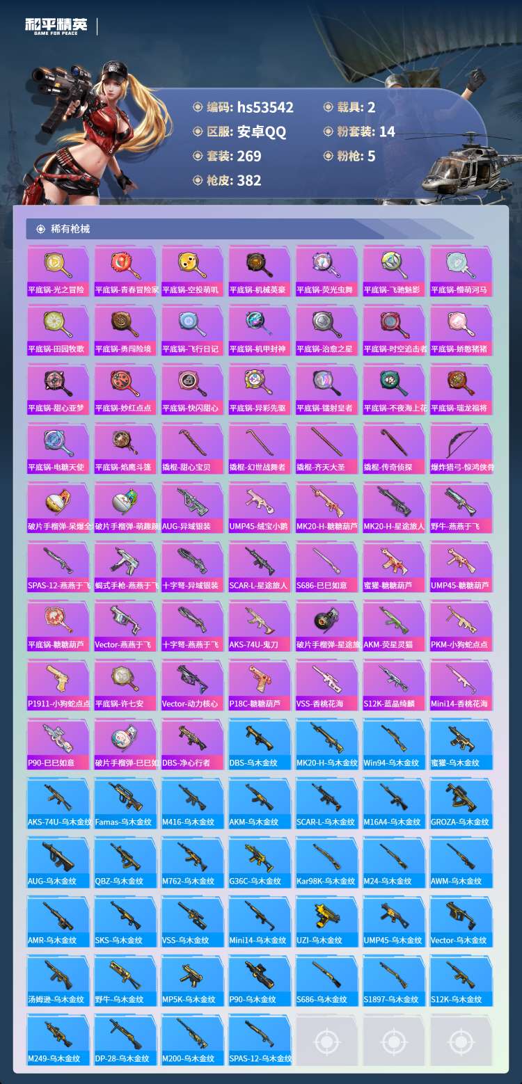 hs53542 安卓手Q-21王牌印记-14粉装-5特效枪-2载具-127953热力值-269套装-