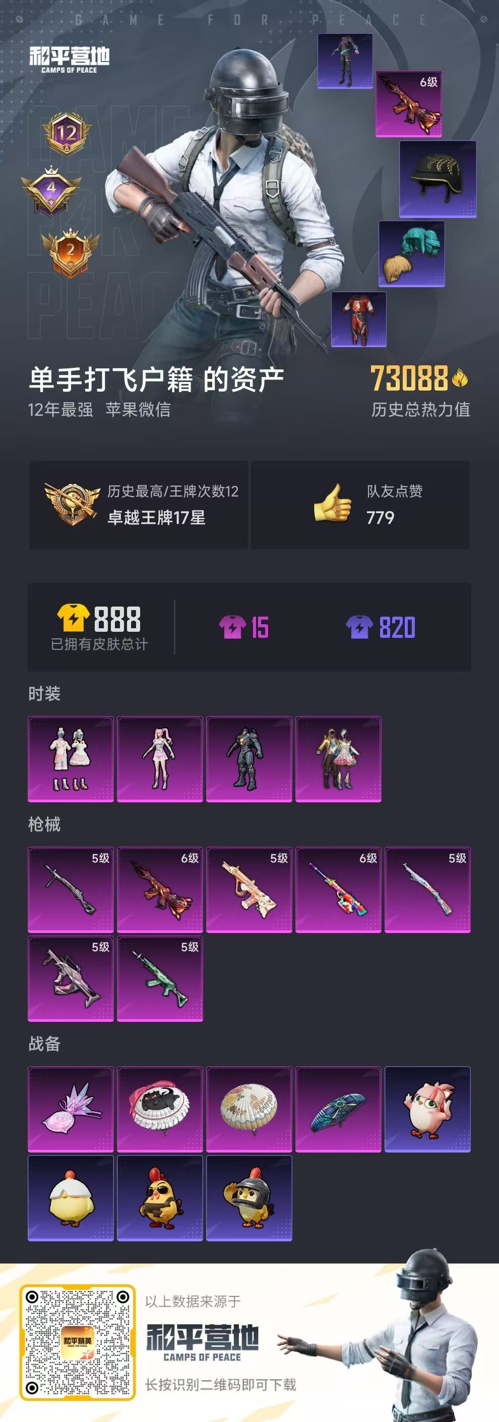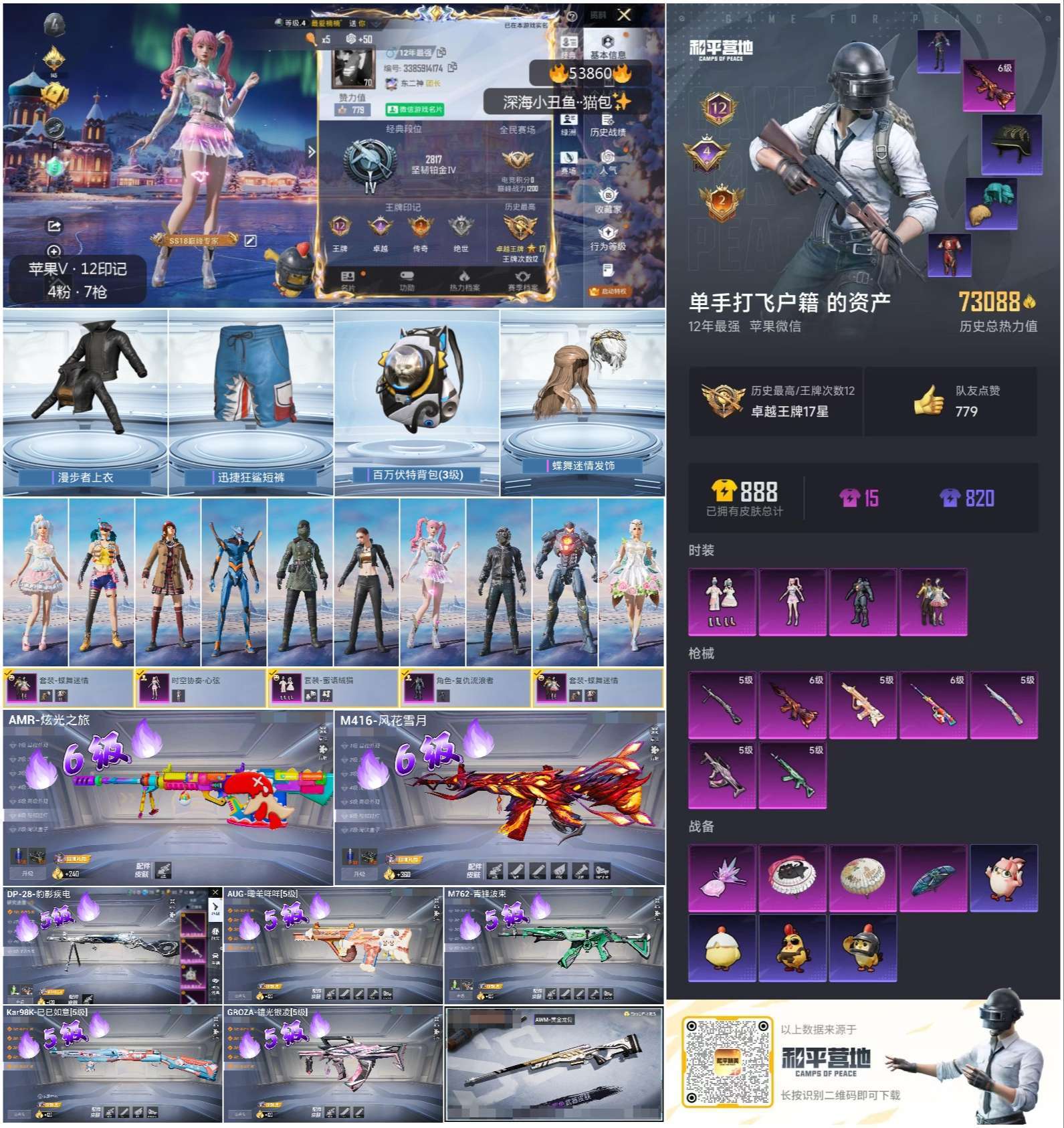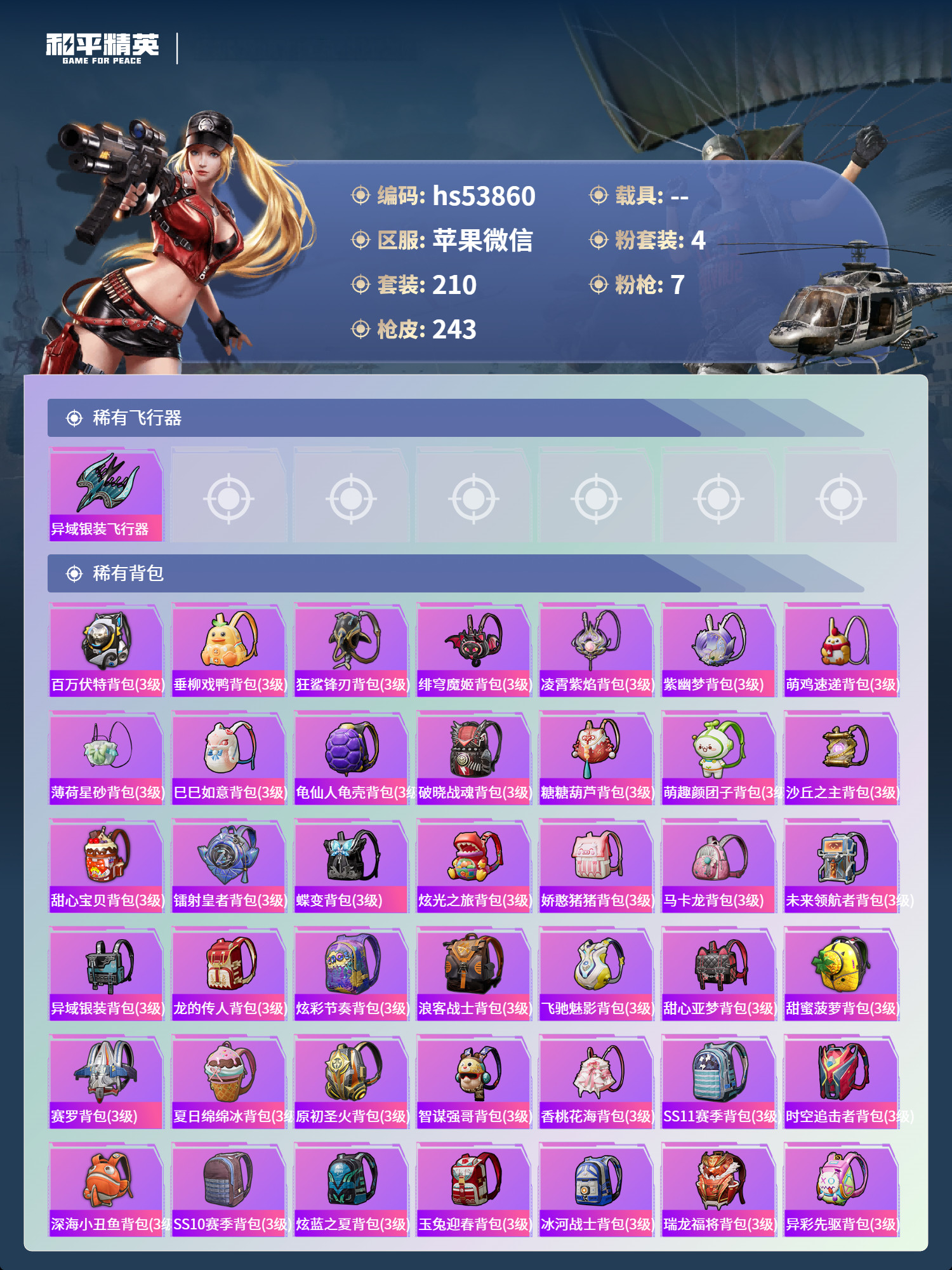 hs53860 苹果微-12王牌印记-4粉装-7特效枪-73169热力值-210套装-243枪皮-