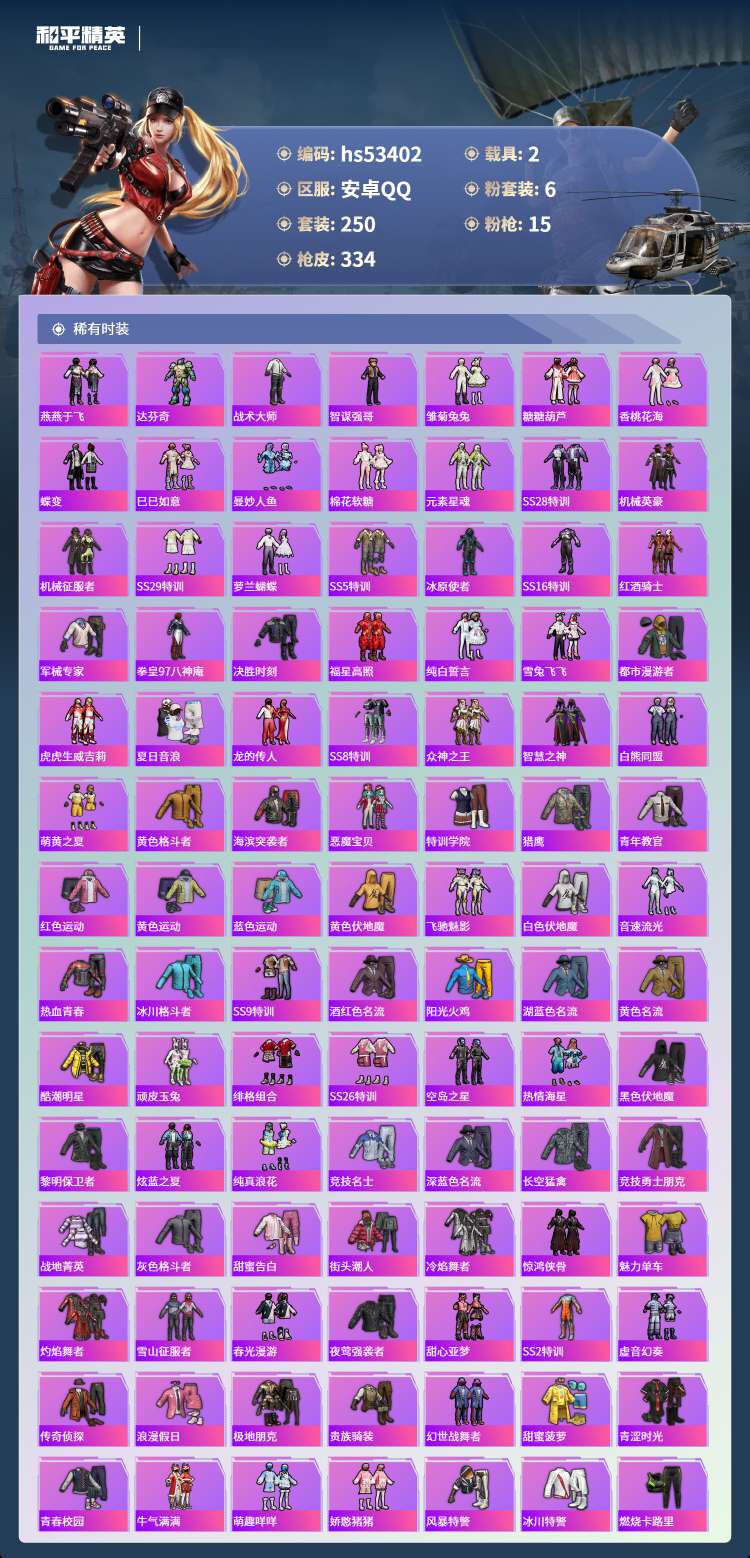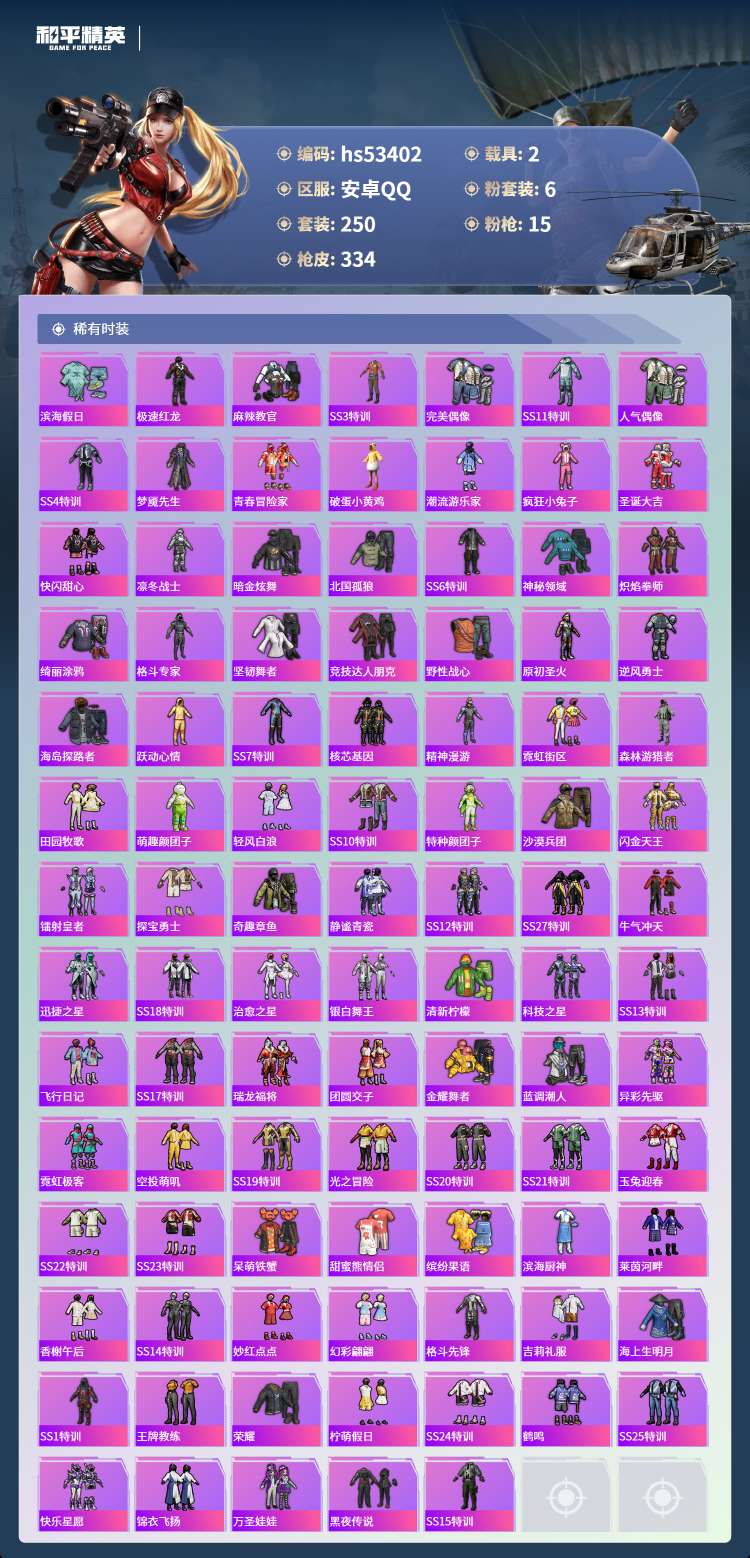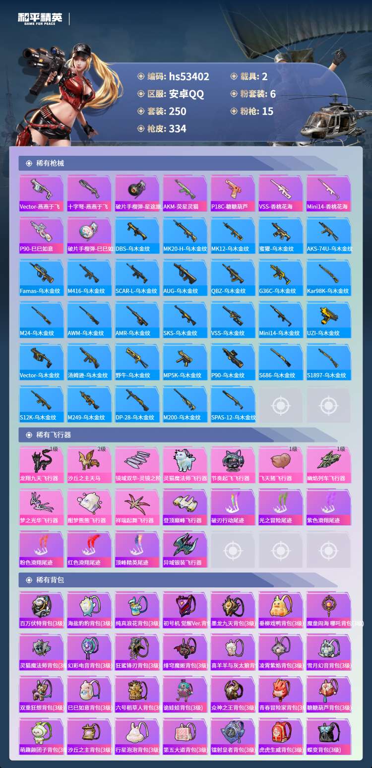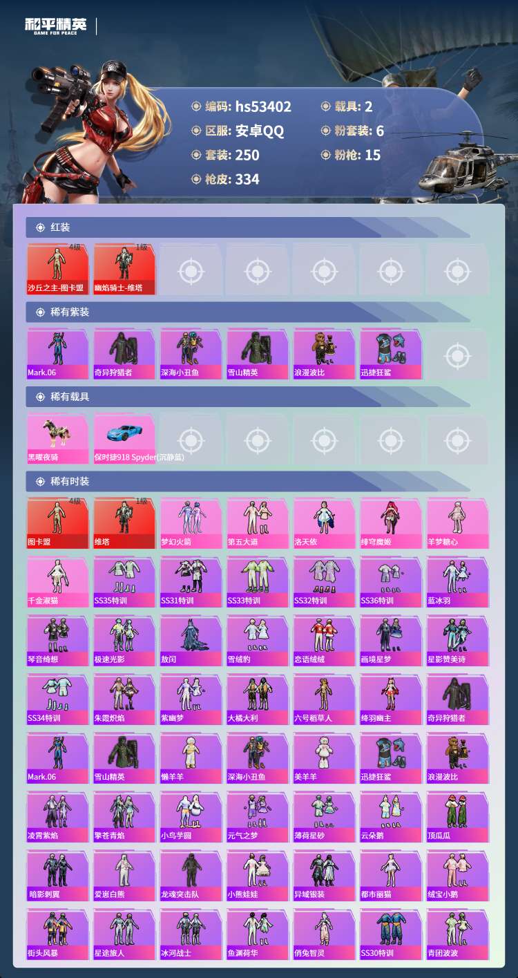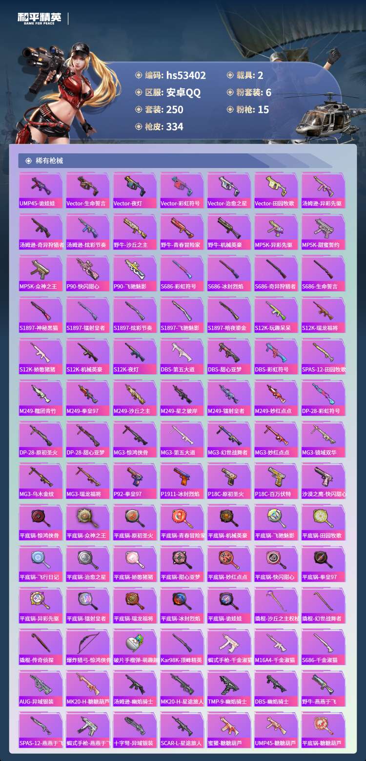 hs53402 安卓手Q-24王牌印记-2红装-6粉装-15特效枪-2载具-115997热力值-25