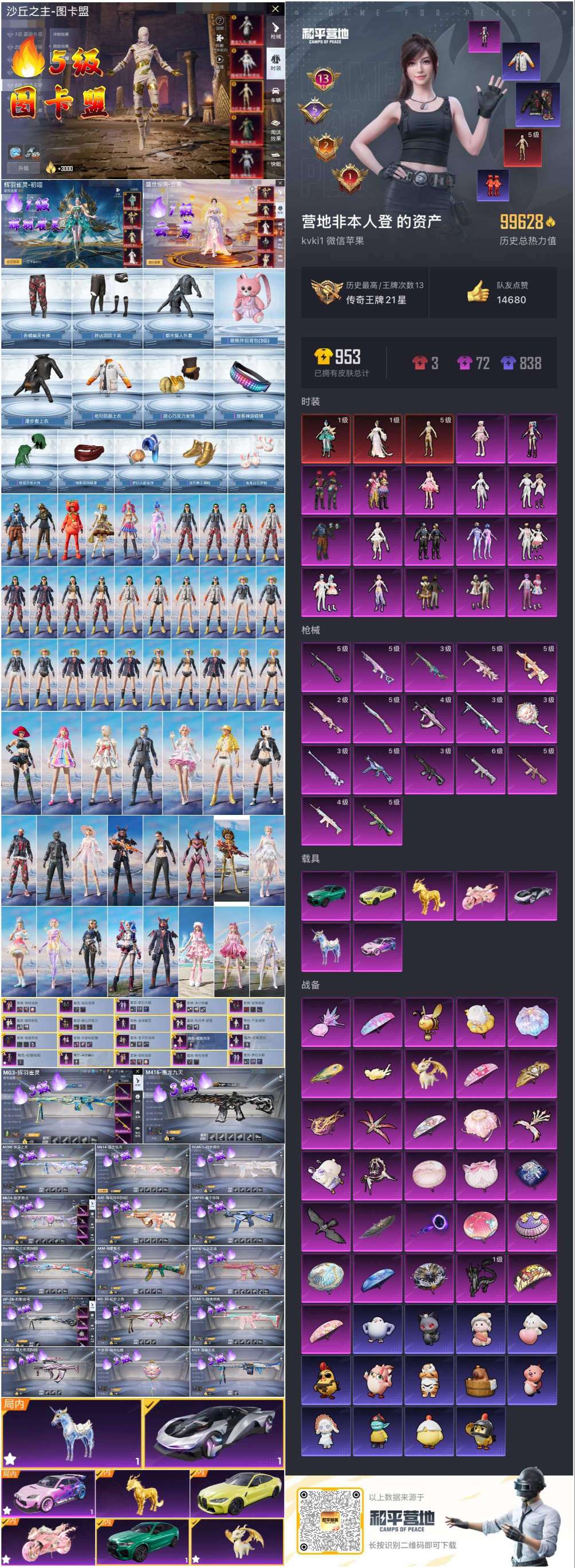 hs53889 苹果v-13王牌印记-3红装-17粉装-17特效枪-7载具-99628热力值-17